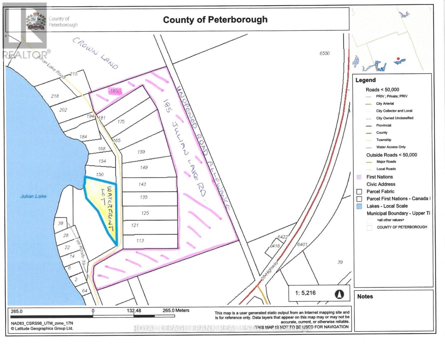 25 acre property - North Kawartha. The land and the building site is adjacent to hundreds of acres of Crown Land. There is an existing driveway leading to a cleared building site and there is hydro to the site. There is a newer, small cabin on the property. The land is irregular in shape and has two road frontages. It's located on a municipally maintained road with garbage and recycling pickup. The property features partial shared ownership of a waterfront lot on Julian Lake, shared with several other property owners. The waterfront lot is a short walk from the building site which is on the opposite side of Julian Lake Road. The waterfront lot is accessed by a footpath. There is a dock, excellent swimming, beautiful view and sunny exposure. Build on this beautiful acreage property and enjoy living in the country. (id:51158)