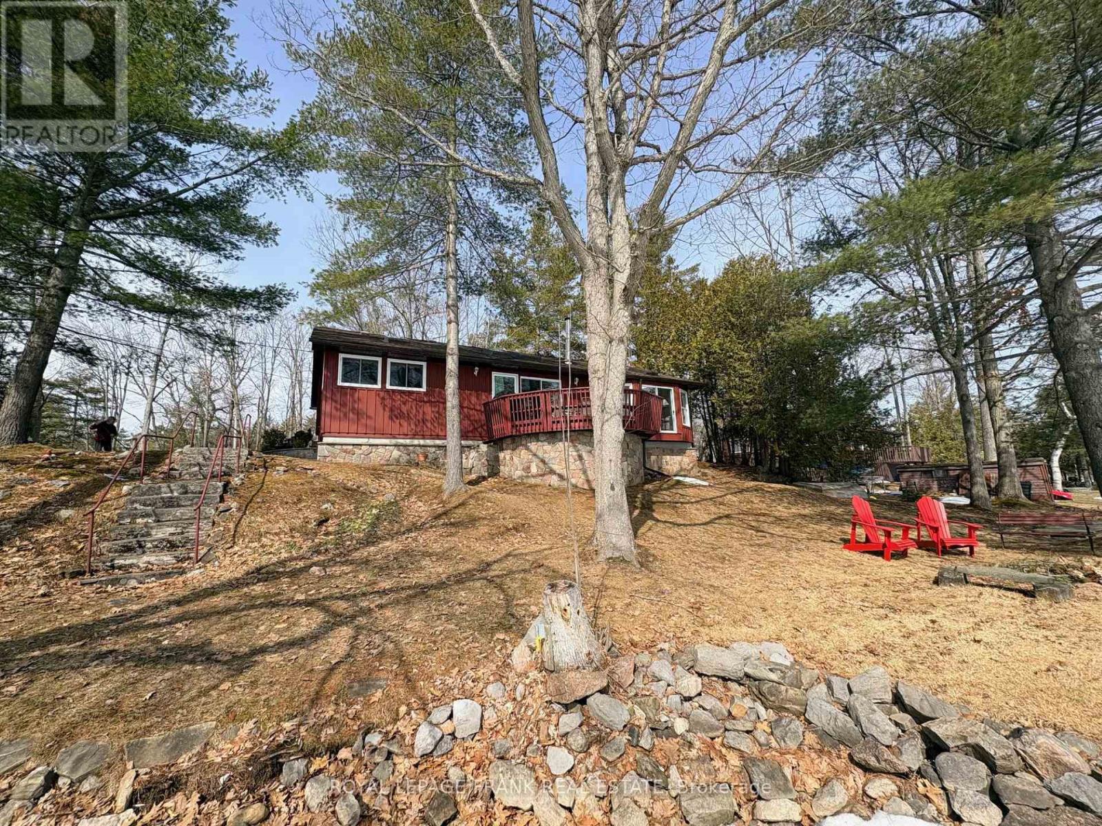 Stoney Lake. Year-round bungalow style lake house. Gorgeous open lake and island view with sunrise exposure. Good swimming frontage - level, gently sloping property with mature pine trees. This property also has frontage on a quiet back bay which is perfect for children or adults to explore. The home features 3 bedrooms, an open concept design with walkout to large lakeside deck, wood burning fireplace, 2 bathrooms, laundry - mud room, forced air heat and central air conditioning. Located on a privately maintained, year-round road - with both year-round and seasonal neighbours. Upper- Stoney location with a "Crown Land" island in sight and a short paddle away. Well maintained home. Enjoy all four seasons on beautiful Stoney Lake. (id:51158)