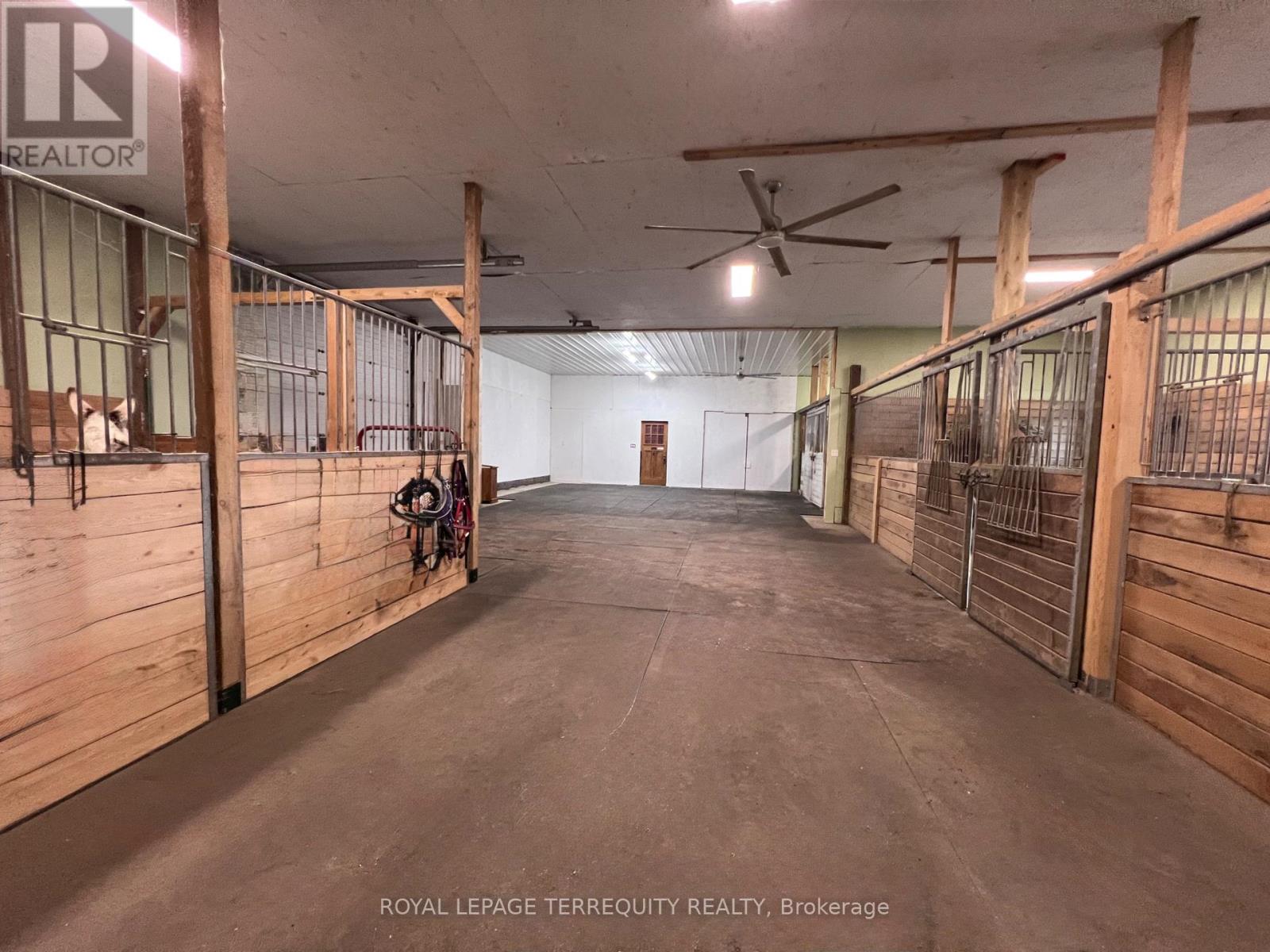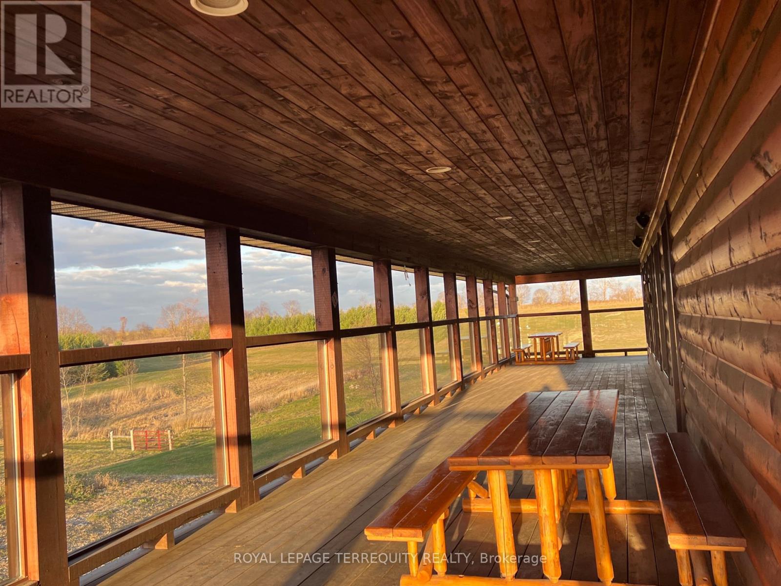 This is not your run-of-the-mill country property! Consider this exquisite 20 Acre hobby farm, custom log style home built in 2008 & tastefully remodelled in 2021-23. Your family will love the generously sized rooms & if you have horses, they too will be pampered with extra-large stalls, seamless stall matts & spacious indoor training area. 4200 sf of finished space this former golf clubhouse is currently configured with 2+ 1 bedrooms & 2 bathrooms with plenty of space to create extra rooms if you so choose. Potential multi-generational home. Originally built for commercial use, it boasts extra features not typically found in a home including 400-amp service, Generac generator attached directly to the electric panel, 2 floors each with separate heating, cooling & septic systems & a spacious wrap-around deck overlooking the breathtaking landscape. Upgrades include 5 new entrance doors, metal roof, log restoration (blasting), completely new kitchen, new bathrooms, new furnace/AC, professional landscaping, paved driveway, fencing & much more. 50x110 outbuilding with concrete pad, 200amps, with its own septic, separate well & hot/cold water. This outbuilding is currently configured with a 2600sf insulated section having 5 large stalls, tack/feed room, office, washroom with shower, and a 40x40 workshop/garage area where you have room for all your toys & projects. There is an additional 17x60 hay/storage barn. The home features an open concept living/dining room with large windows, generously sized bedrooms & fully finished walkout basement. Enjoy the spectacular sights, sounds & closeness to nature & wildlife. Minutes to Hwys. 37 & 7 & half hour to the 401. Live your best life! (id:51158)