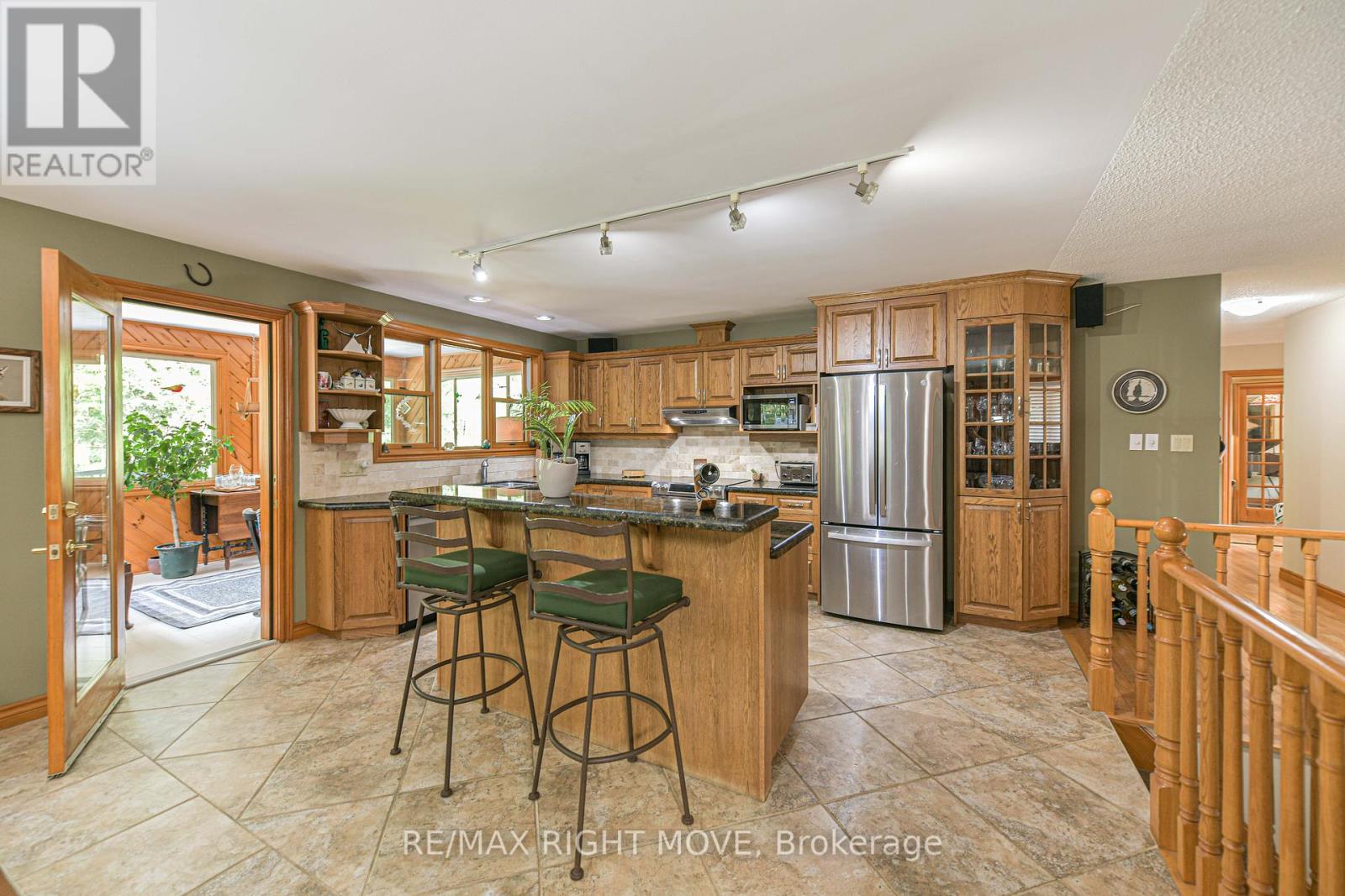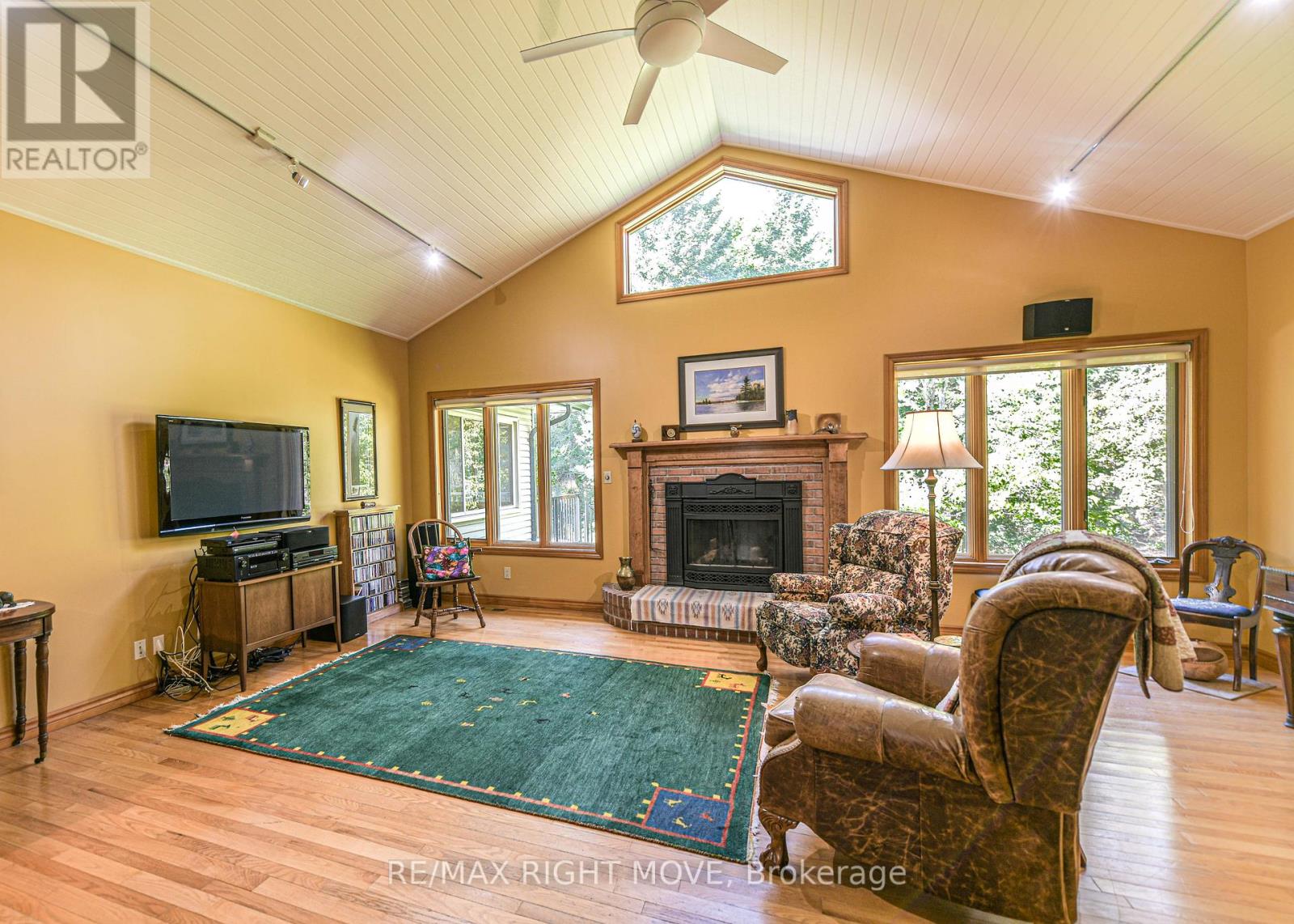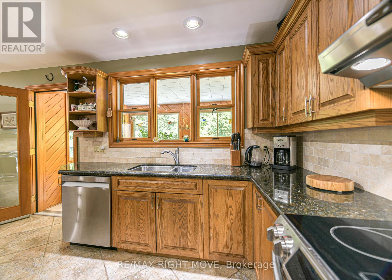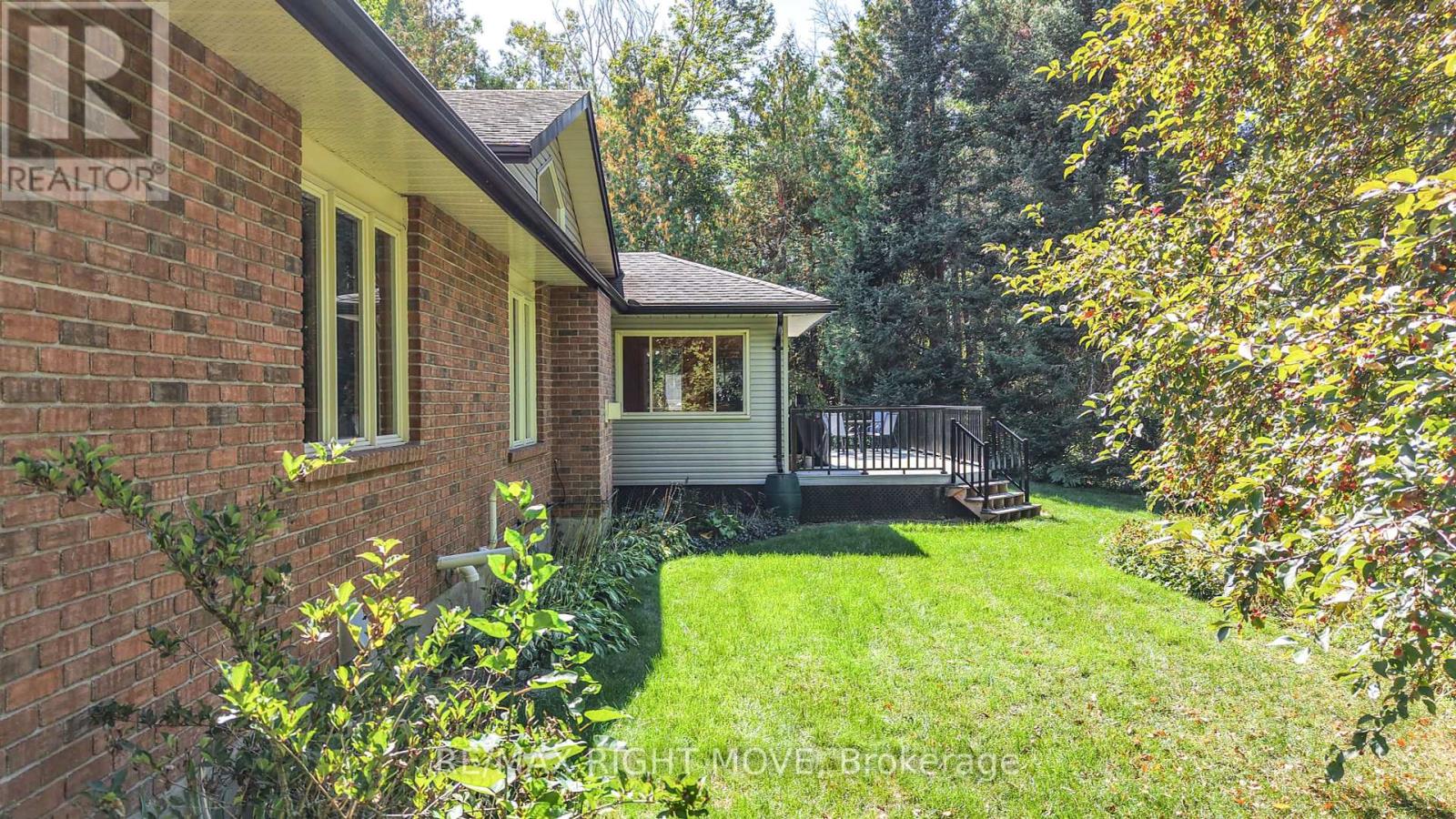 Set on just over 2 acres in the highly desirable Marchmont community, this beautifully maintained 4-bedroom, 3-bath bungalow offers the perfect blend of privacy, comfort, and convenience, just minutes from Orillia. Thoughtfully designed with vaulted ceilings and hardwood floors, the home features a custom oak kitchen with porcelain tile flooring, granite countertops, stainless steel appliances, and a spacious island. The bathrooms have all been updated and include in-floor heating for added comfort. The functional layout includes generous bedrooms, a sunroom, and a partially finished basement complete with a large rec room, workshop, and a custom moveable bar, ideal for entertaining or multigenerational living. Additional highlights include a composite deck with gas BBQ hookup, invisible pet fencing, a rebuilt shed with attached dog pen, and wide doorways for accessibility. Recent mechanical upgrades (2018) include a high-efficiency furnace, central A/C, and a tankless water heater, along with an HRV system, 200-amp panel with generator hookup, and new gutters and fascia (2023). Don't miss this exceptional opportunity to own a turn-key home in one of Severn's most sought-after rural neighbourhoods. (id:51158)