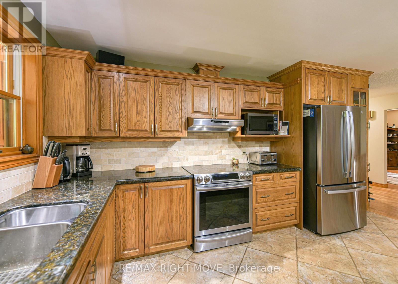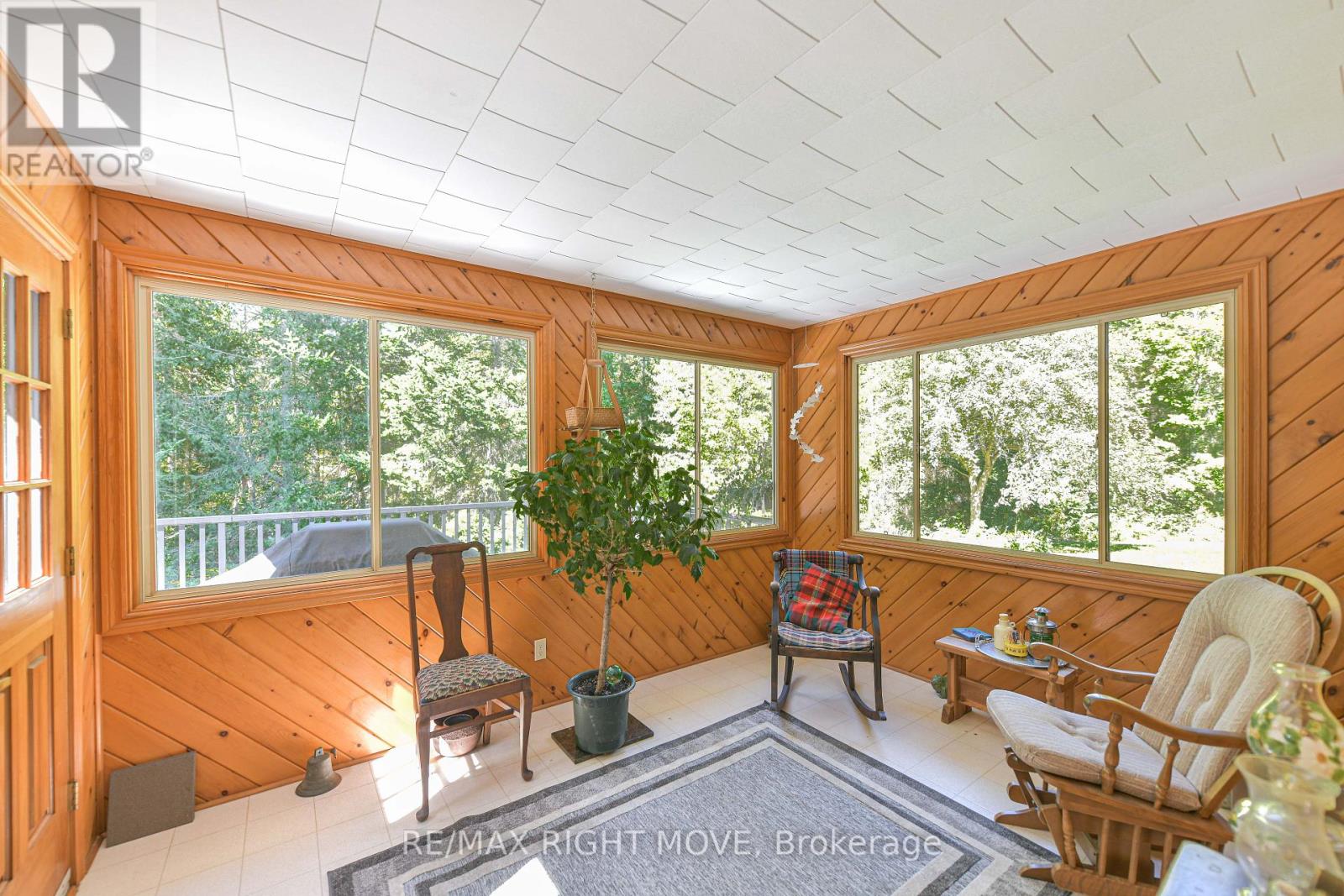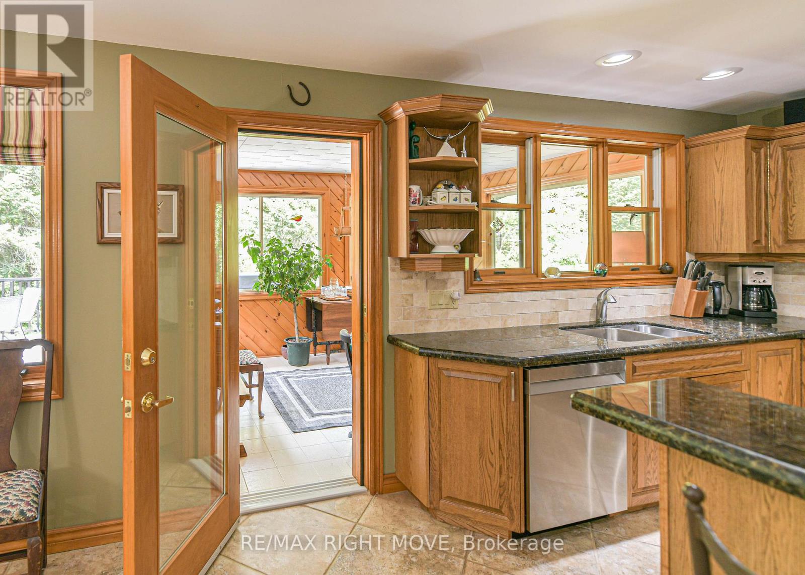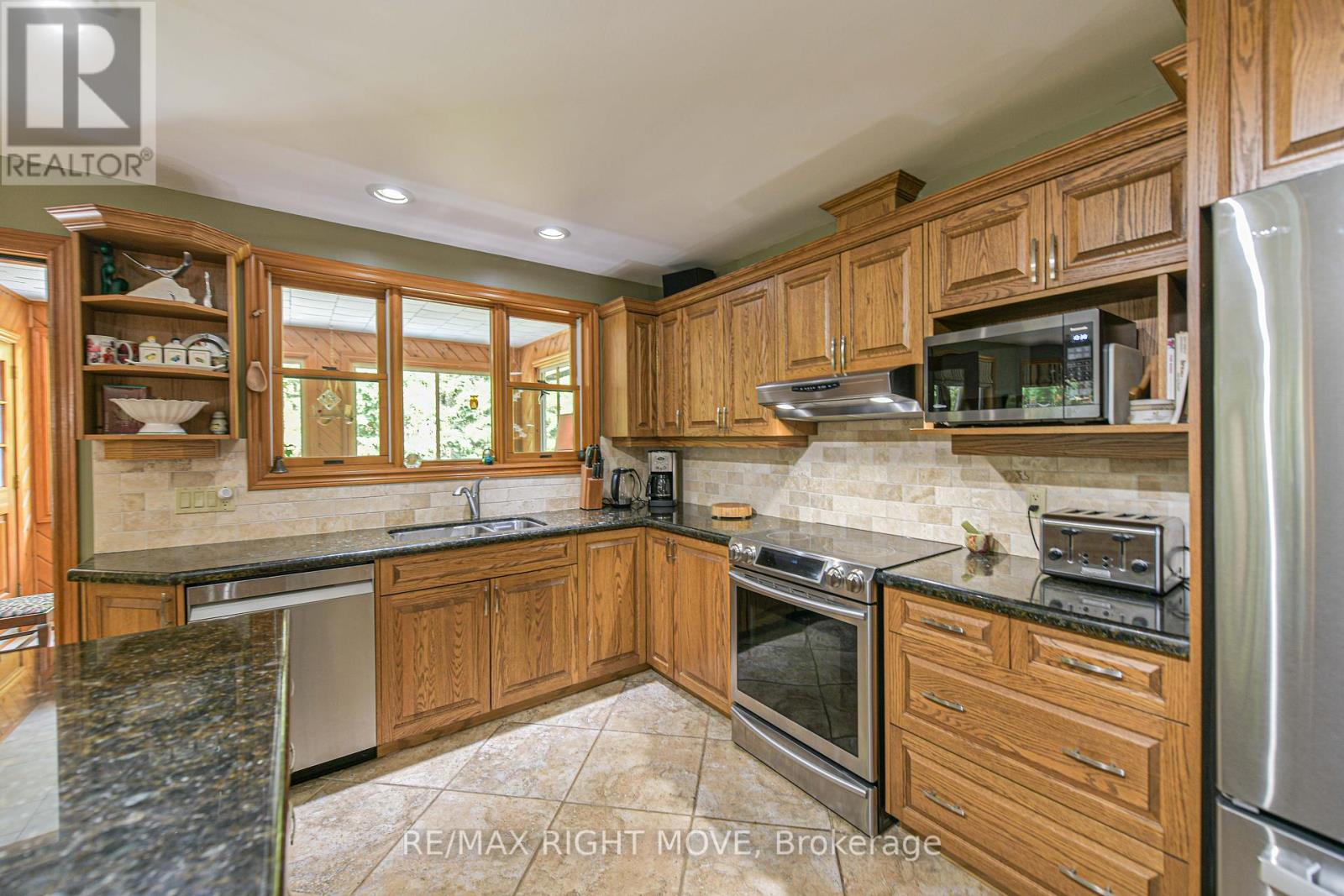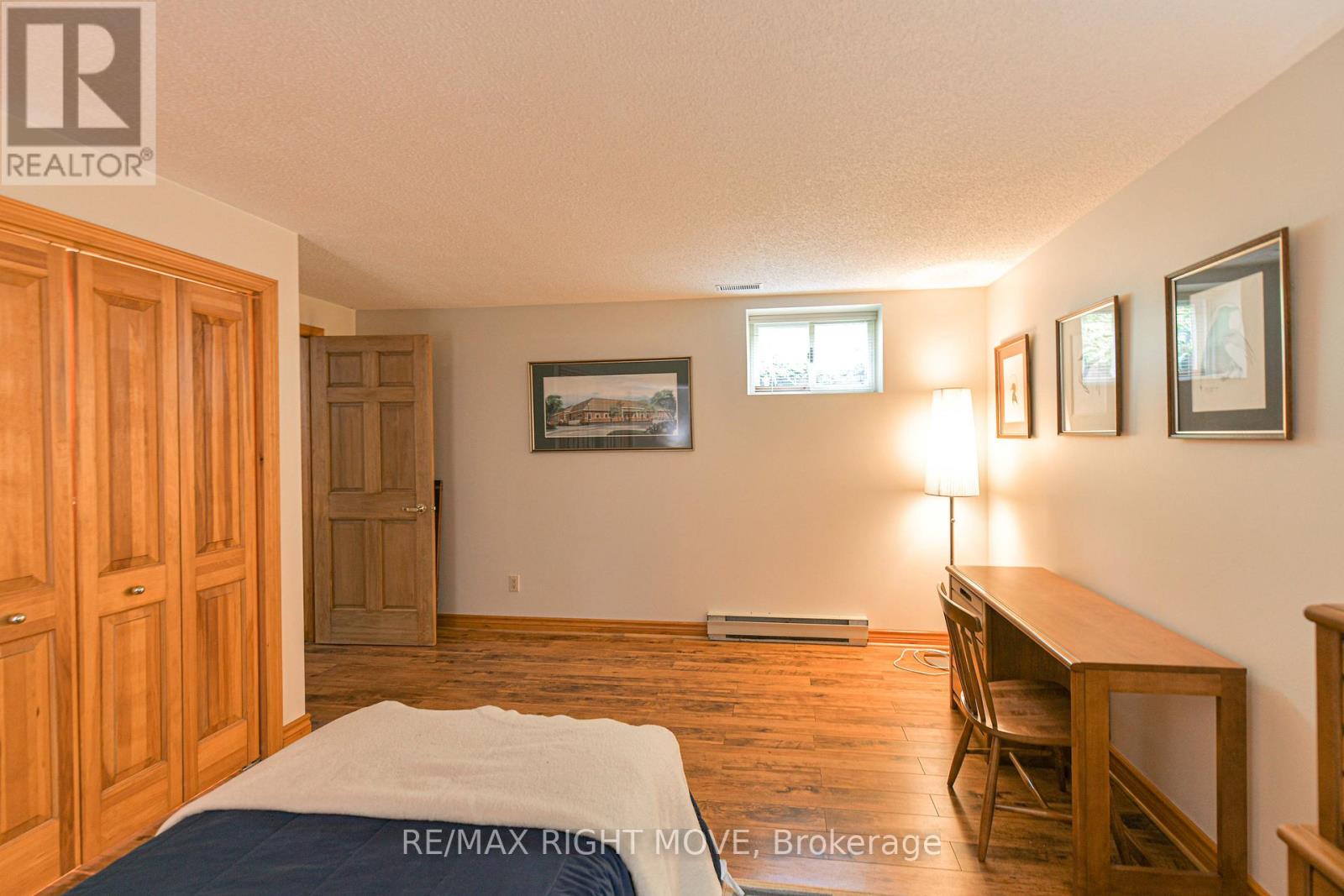 Set on just over 2 acres in the highly desirable Marchmont community, this beautifully maintained 4-bedroom, 3-bath bungalow offers the perfect blend of privacy, comfort, and convenience, just minutes from Orillia. Thoughtfully designed with vaulted ceilings and hardwood floors, the home features a custom oak kitchen with porcelain tile flooring, granite countertops, stainless steel appliances, and a spacious island. The bathrooms have all been updated and include in-floor heating for added comfort. The functional layout includes generous bedrooms, a sunroom, and a partially finished basement complete with a large rec room, workshop, and a custom moveable bar, ideal for entertaining or multigenerational living. Additional highlights include a composite deck with gas BBQ hookup, invisible pet fencing, a rebuilt shed with attached dog pen, and wide doorways for accessibility. Recent mechanical upgrades (2018) include a high-efficiency furnace, central A/C, and a tankless water heater, along with an HRV system, 200-amp panel with generator hookup, and new gutters and fascia (2023). Don't miss this exceptional opportunity to own a turn-key home in one of Severn's most sought-after rural neighbourhoods. (id:51158)