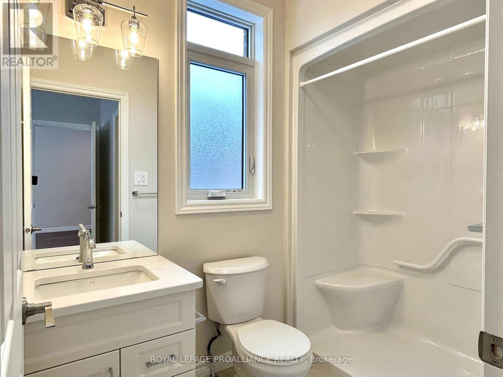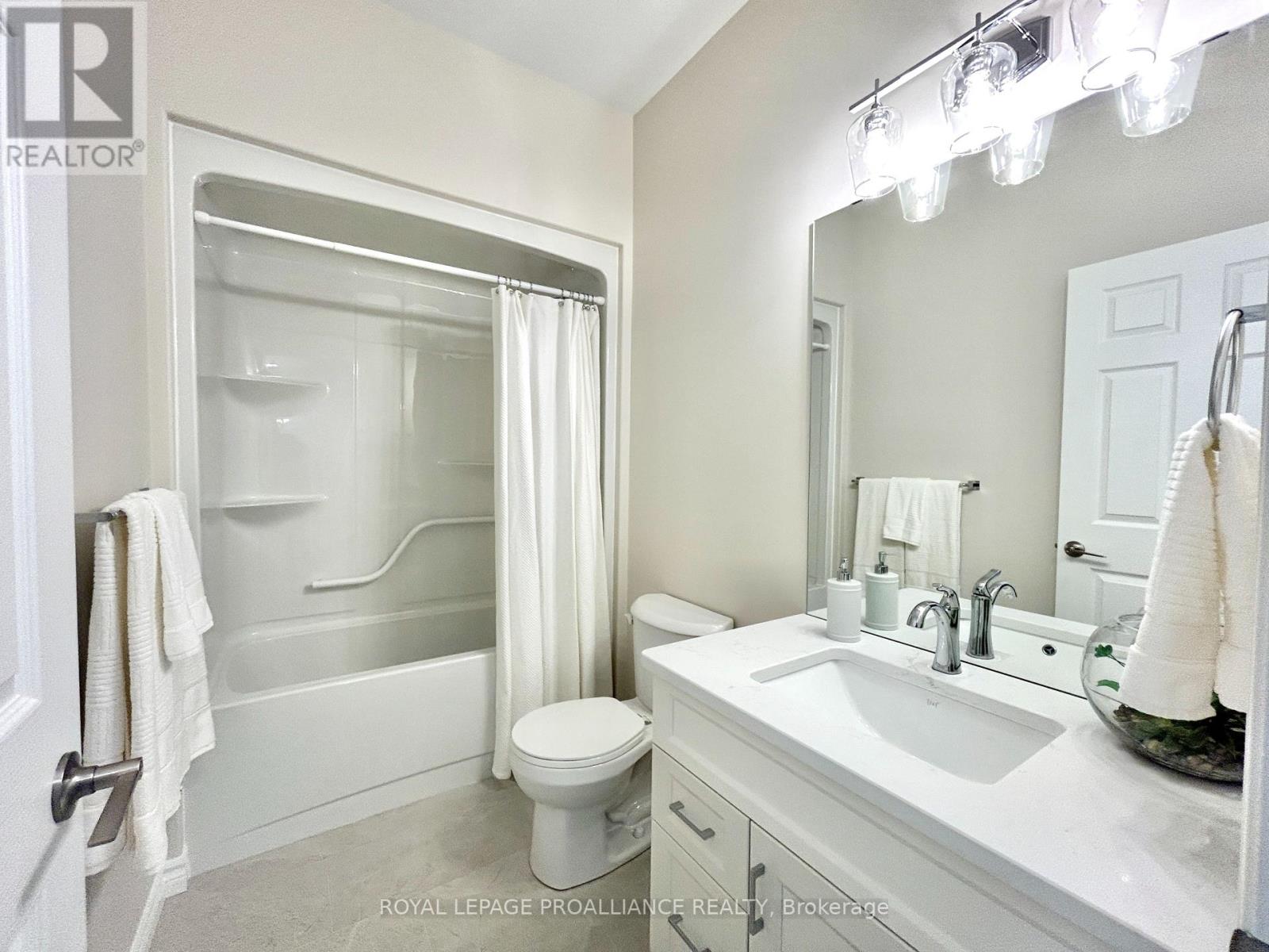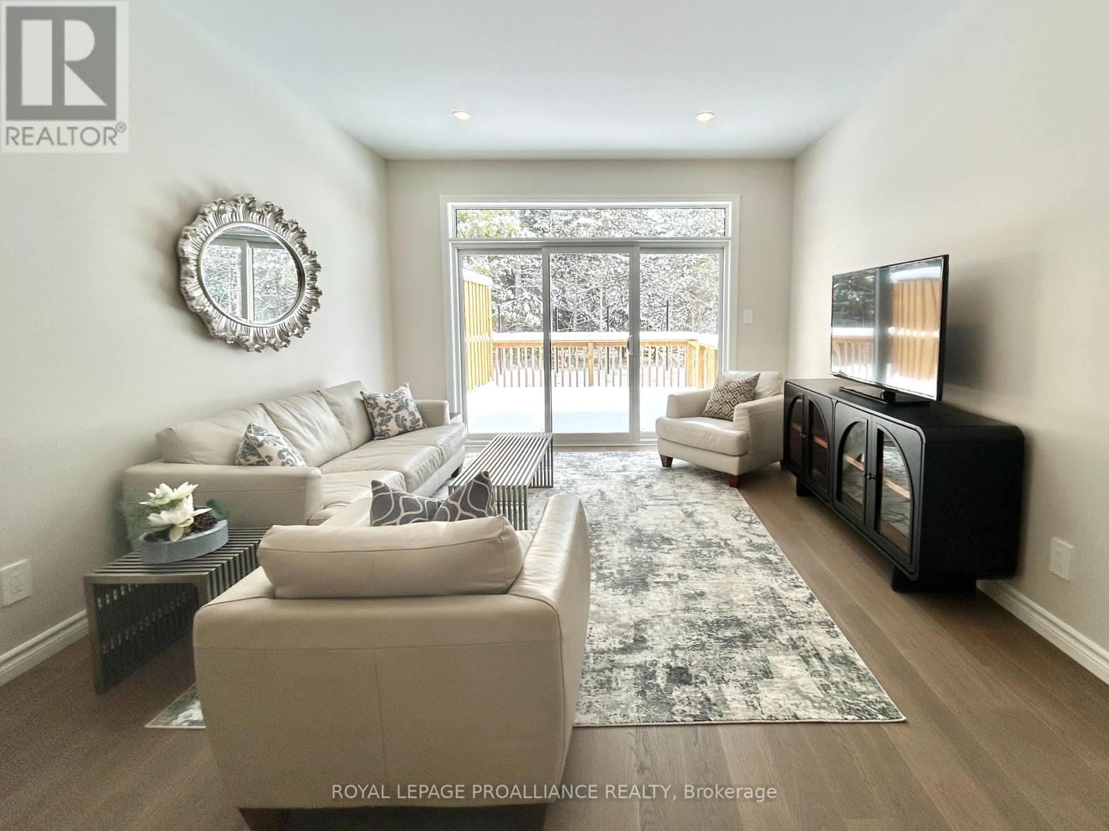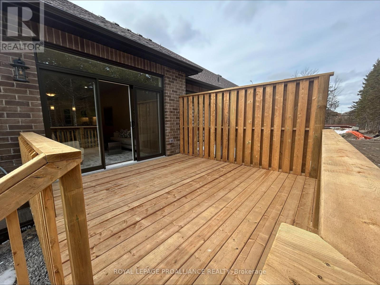 $289.50 MonthlyWelcome to Northgate Condominiums, a cozy community of townhome condominium units conveniently located just North of the 401 in Belleville, minutes from the Quinte Mall. This beautiful brand new end unit bungalow townhome features two bedrooms, two bathrooms and an attached two car garage with inside entry. The main floor is completed with 9ft ceilings and includes a well appointed kitchen with quartz countertops and corner pantry. The great room located just off the kitchen, looks out the 12' X 12' pressure treated wood deck. The bright primary bedroom includes a walk in closet as well as a 3-piece en-suite bathroom. The main floor is completed with an additional bedroom, main bathroom and a convenient laundry closet. This home also includes a full unspoiled basement with basement bathroom rough in. (id:51158)