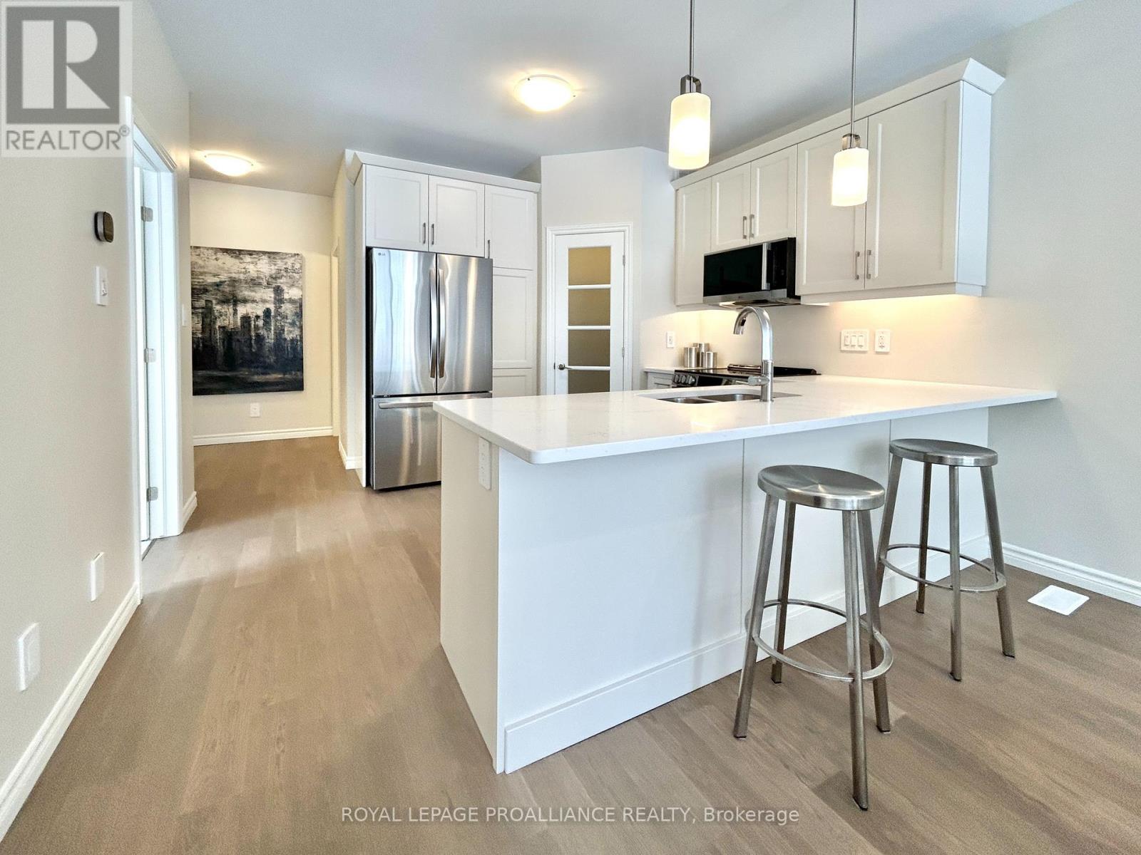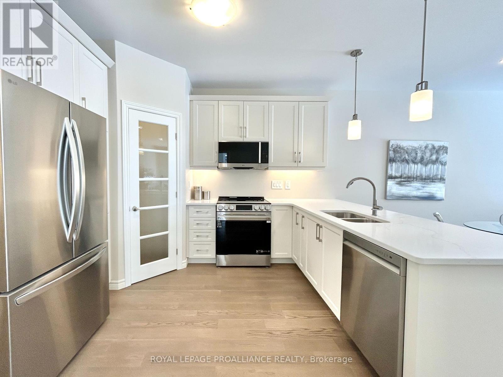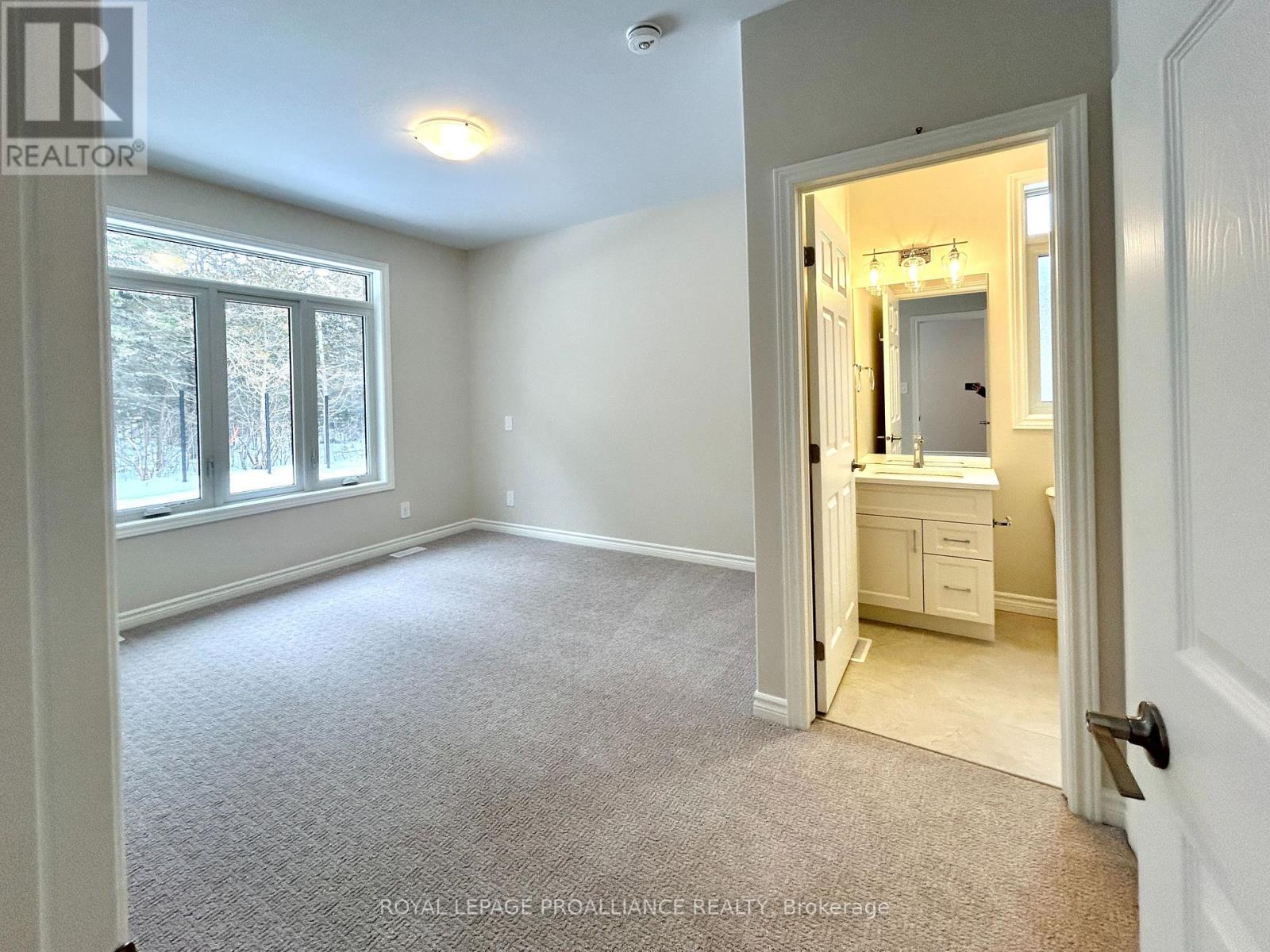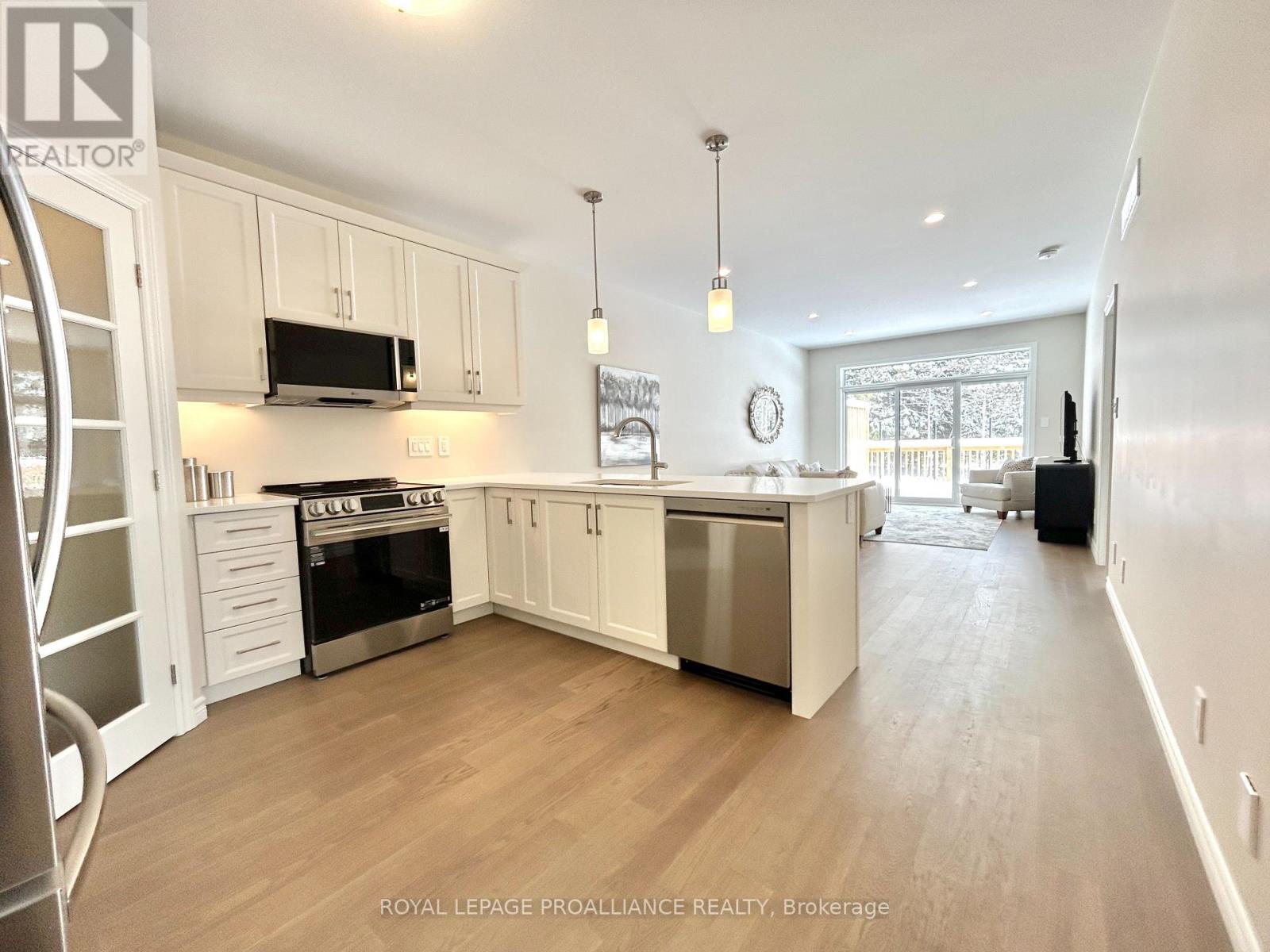 $289.50 MonthlyWelcome to Northgate Condominiums, a cozy community of townhome condominium units conveniently located just North of the 401 in Belleville, minutes from the Quinte Mall. This beautiful brand new end unit bungalow townhome features two bedrooms, two bathrooms and an attached two car garage with inside entry. The main floor is completed with 9ft ceilings and includes a well appointed kitchen with quartz countertops and corner pantry. The great room located just off the kitchen, looks out the 12' X 12' pressure treated wood deck. The bright primary bedroom includes a walk in closet as well as a 3-piece en-suite bathroom. The main floor is completed with an additional bedroom, main bathroom and a convenient laundry closet. This home also includes a full unspoiled basement with basement bathroom rough in. (id:51158)