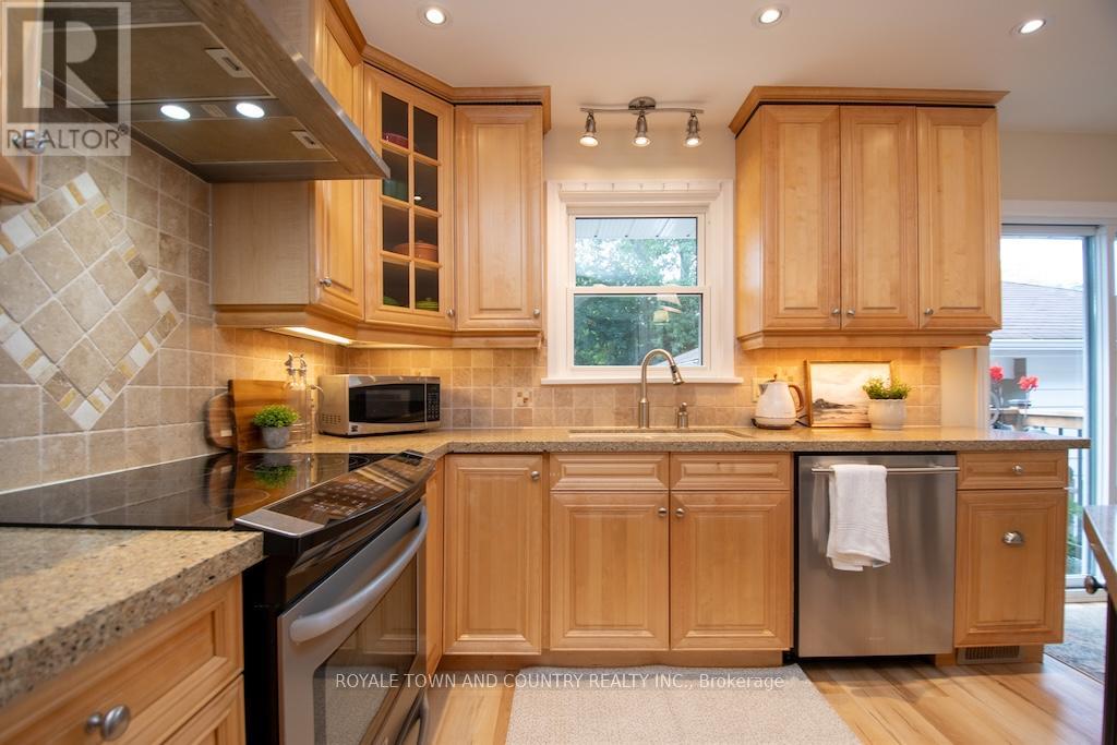 Welcome! This beautifully maintained custom brick bungalow offering timeless charm and modern comforts. 3-bedroom, 2-bath home is situated on a large, private, mature lot in one of the areas most desirable neighbourhoods, close to schools, the hospital, farmers market, mall, restaurants, and other amenities.The bright, open layout features a custom kitchen with Silestone quartz countertops, birch cabinetry, stainless steel appliances, centre island, and breakfast bar. Formal living and dining rooms include hardwood floors and a cozy gas fireplace. The main bath has been updated with a walk-in shower, jet tub, and heated floors .. the soaker tub is the focal point - what a wonderful setting to relax. The spacious primary bedroom offers a walk-in closet (there's even laundry hook up if you wanted to have a separate space from the lower level!) Walk out to a beautifully landscaped, fenced backyard with perennial gardens, mature trees, a 30' x 12' deck, and covered porch from the garage that is perfect for relaxing or entertaining with a little music (speaker set up outside as well) wine and company of course! .The separate side entrance leads to a finished lower level with in-law suite potential, featuring a rec. room with second gas fireplace, third bedroom, 3-piece bath, laundry, and ample storage space. Or perhaps working from home is in your future - already set up with comfort and dressed in style. Additional updates include windows, furnace, flooring, sliding door, deck, and gas BBQ hookup, pot lights, 1.5-car garage with workbench and storage plus paved driveway parking for up to five+ vehicles. Move-in ready and full of character. (id:51158)