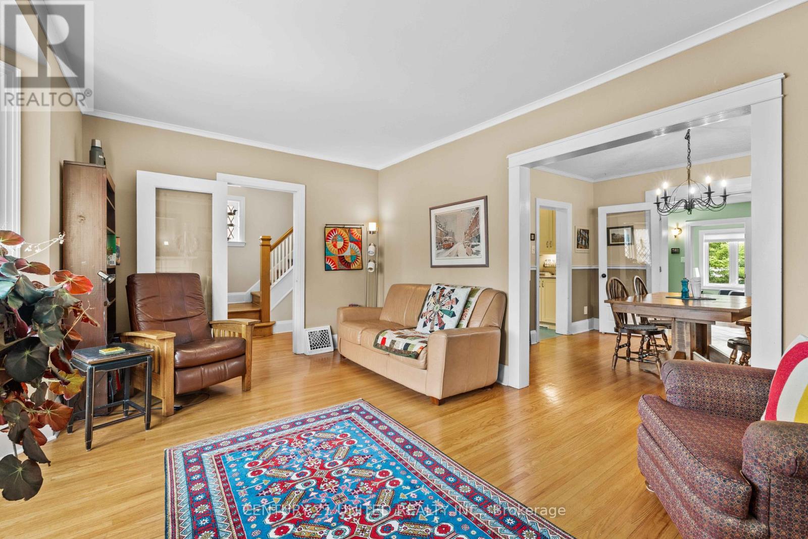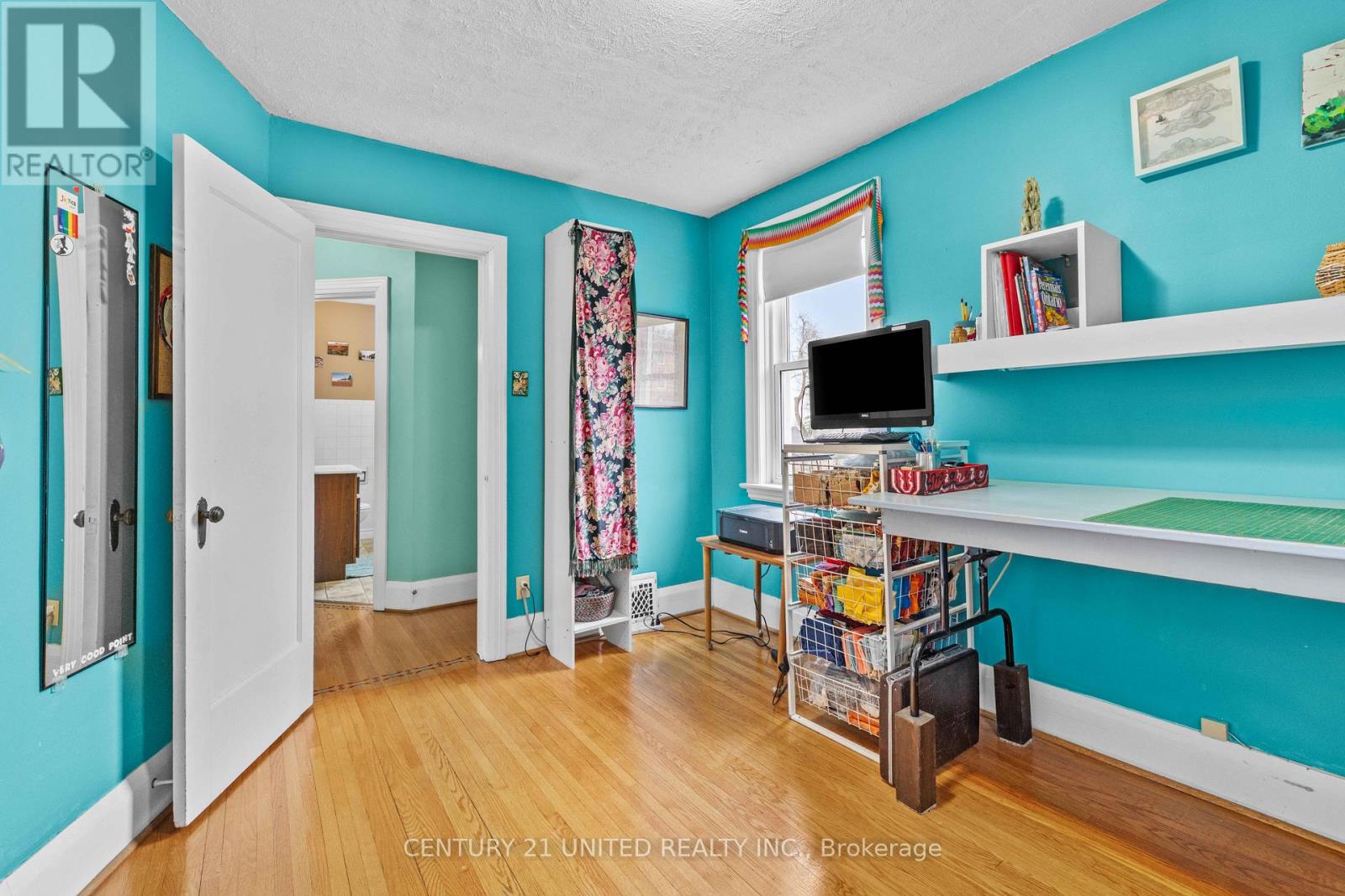 Introducing 19 Anne St, a solid brick 2 storey home nestled nicely on the corner of Anne St and Albertus Ave with a large landscaped rear yard. This is a 3+1 bedroom, 2.5 bath family home full of character and charm. It features leaded windows, hardwood floors, interior french doors, natural gas fireplace and a very unique opportunity to work from home in the dedicated, private area with a bright office, 3 piece bath, large welcoming separate entrance and triple wide side by side parking. This home offers a nice flow from the dining room to the living room to the 2nd floor with 3 bedrooms and bath. The lower level has a rec room, laundry/bath and a large bright bedroom. A tour inside is needed in order to fully appreciate the uniqueness of this neat, clean and tidy home where pride of ownership is very evident. Heat pump, natural gas furnace, AC and more. Book a showing and see for yourself. (id:51158)