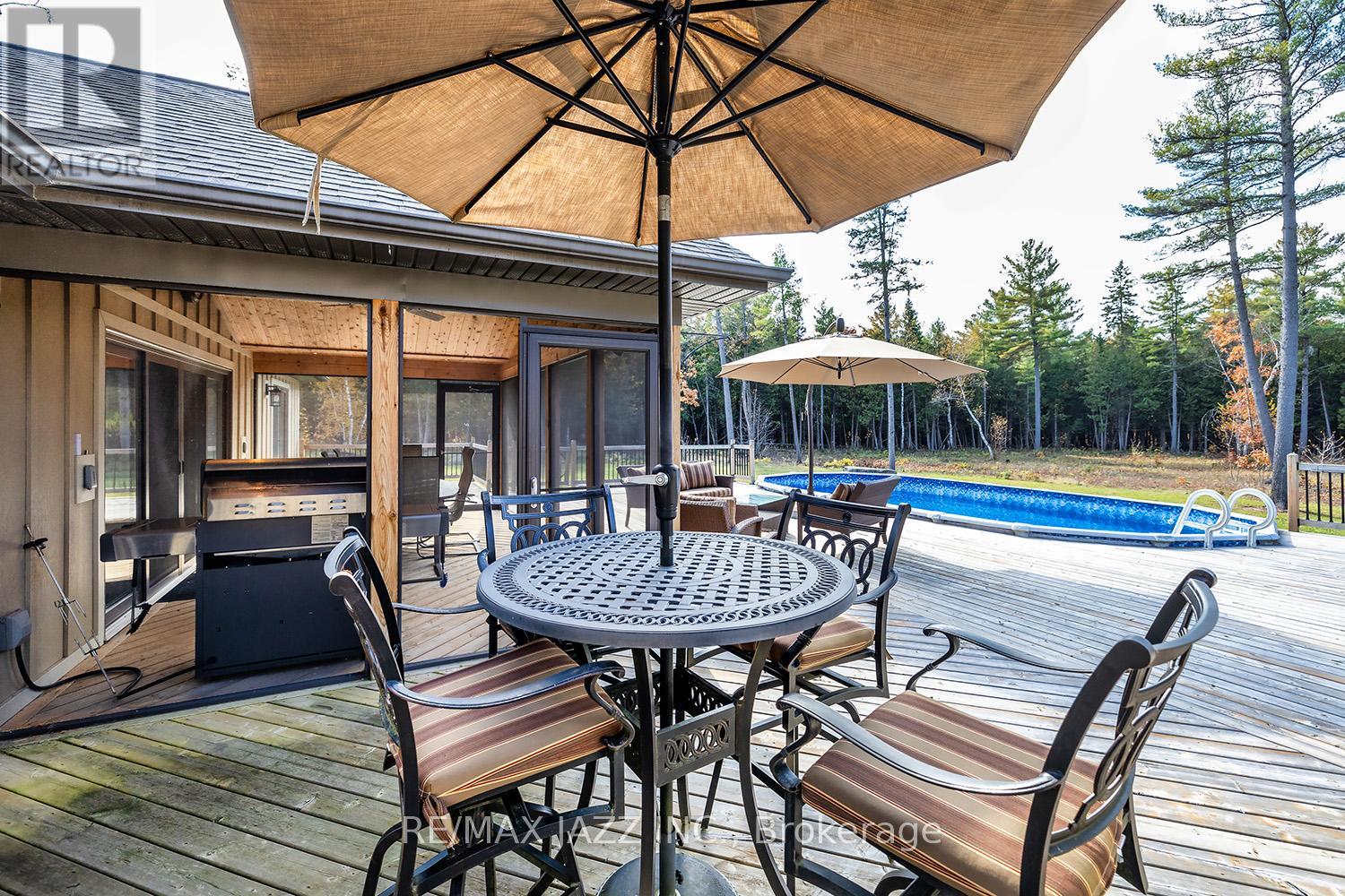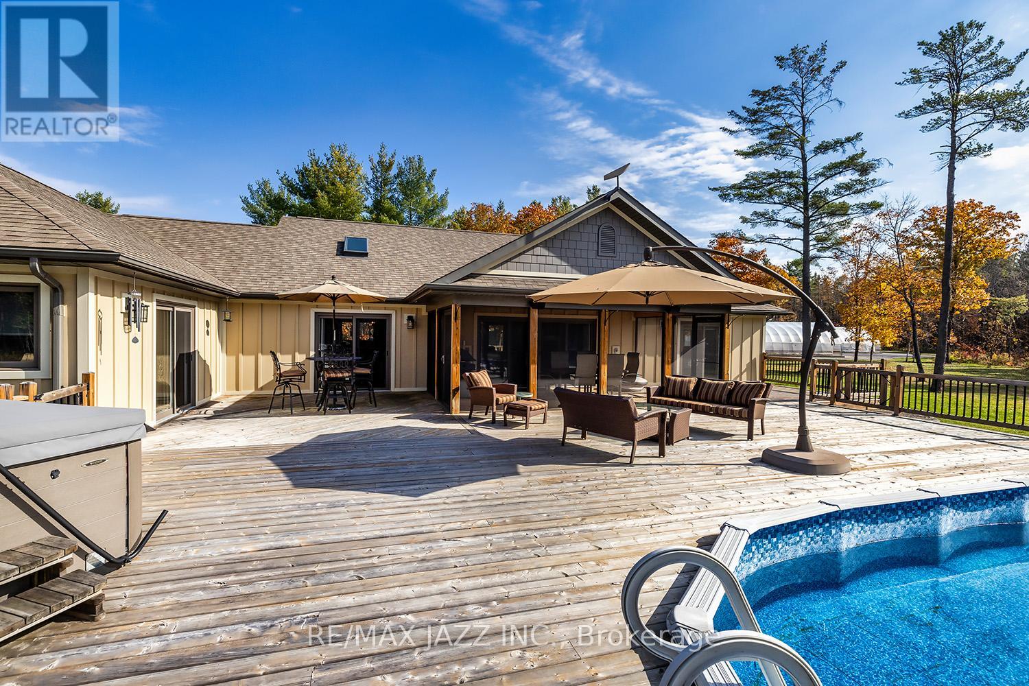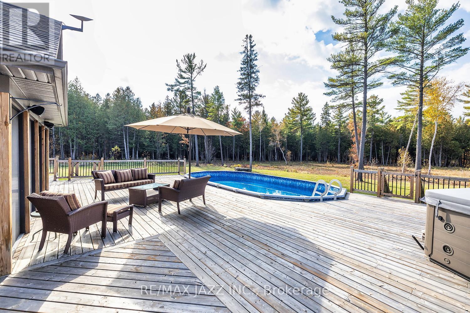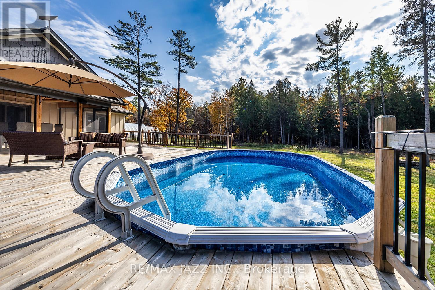 Quiet country living awaits in this beautiful home nestled amongst soaring trees on 33 Incredible Acres. This custom-built home features an open concept layout design, vaulted ceilings, stunning gourmet kitchen with stainless steel appliances including a bar fridge .Primary bedroom features a opulent 5-piece ensuite bathroom, walkout and closet organizers. Entertain family and friends in the hydro pool hot tub and large above-ground pool. *mud room, spacious gym area, and durable epoxy flooring, Built to last with James Hardie board and cultured stone faade, R32 insulated walls, R60 insulated ceilings, all windows and doors are color-matched to complement the exterior design. Huge workshop measuring 30 x 50 with a heated mezzanine at the back, plus a heated storage warehouse above. Enclosed rear screened porch that's bug-proof and has a direct BBQ hookup.*T (id:51158)