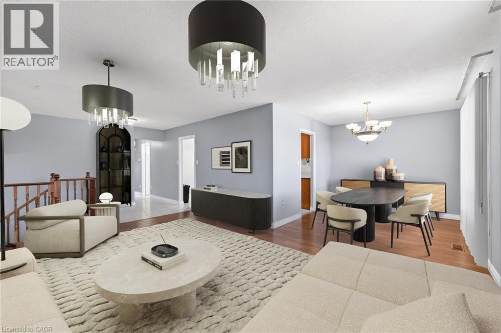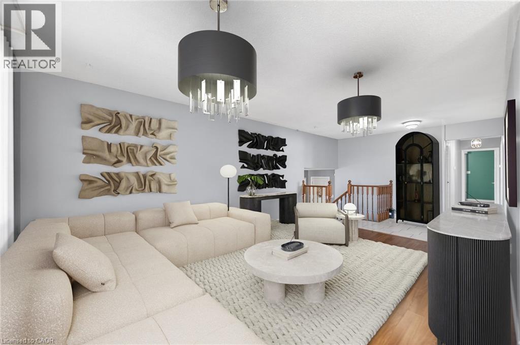 Welcome to this spacious side-split home in the heart of Stoney Creek offering over 2,500 sq ft of finished living space and a layout that provides flexibility for families, entertaining, or multi-generational living. Ideally located with direct rear gate access to Ferris Park and no rear neighbours, this property offers both privacy and convenience.Step through the insulated front porch into a bright and functional main level featuring an open-concept living and dining area with laminate flooring. The kitchen is equipped with stainless steel appliances and a cozy dinette space. Two bedrooms on the main floor both with carpet flooring, along with a 4-piece bathroom. The spacious primary bedroom includes a walk-in closet and patio doors leading to a raised wood deck overlooking the backyard and park.The fully finished lower level expands the living space with a good sized rec room complete with a gas fireplace, vinyl flooring, and patio doors that walk out to the backyard. Two additional bedrooms with newer vinyl flooring, a 4-piece bathroom, and a laundry room with washer and dryer complete the level. With a separate basement walk-up, this space offers excellent potential for an in-law suite or rental setup. Enjoy outdoor living with a large concrete patio, a three-season sunroom with gas line for a future fireplace, and beautifully landscaped front and rear yards. The fully fenced backyard provides direct gated access to the park and plenty of room for entertaining. Additional highlights include a double car garage, a four-car driveway, roof in good condition (10 years old), furnace and A/C roughly 12 years old, and updated sliding doors. Immediate possession available. Conveniently located close to shopping, schools, parks, and all major amenities. (id:51158)
