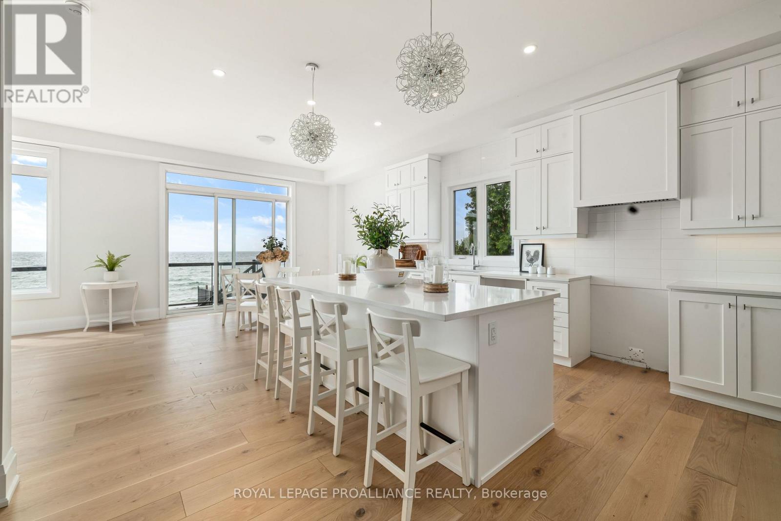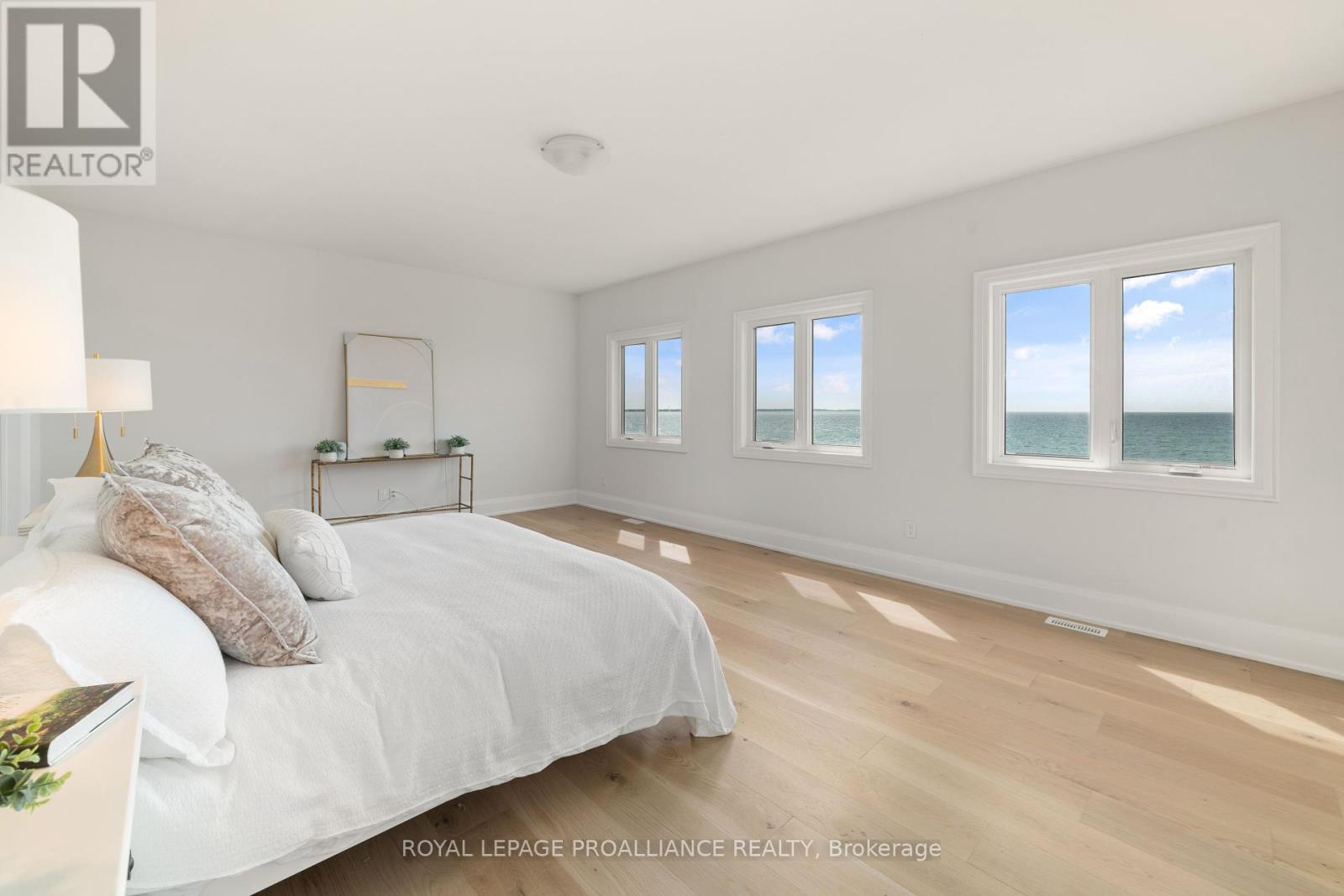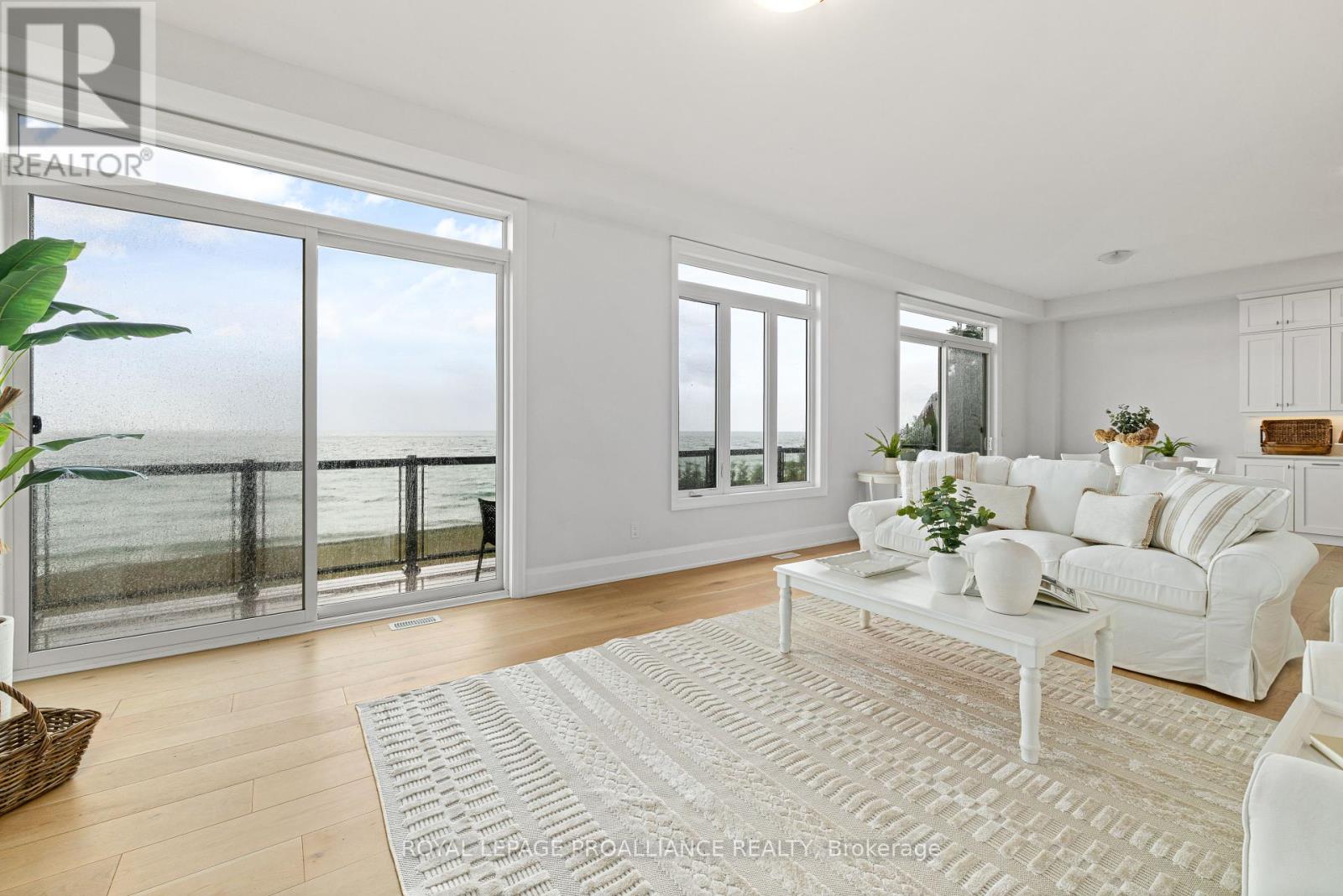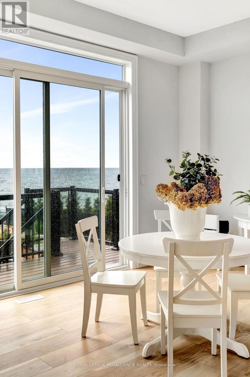 Welcome to this beautiful piece of paradise on the water. Perfect location in the heart of Wellington with city services. Spectacular expansive views of Lake Ontario and the popular Sandbanks Dunes. Offering contemporary Hampton- style waterfront home. One year new under Tarion warranty, 3260 sqft. 10-Foot ceilings on main, 9-foot ceilings on the upper level, and 8-foot interior doors. Shaker kitchen, soft closed drawers, undercounter lights, grand sized centre island with quartz counters, butlers pantry with wet bar and walk in pantry for ample storage. Lovely 8-inch white oak engineered flooring throughout. Upgrades include staircase, tall baseboards and trim, interior and exterior pot lights and a cozy gas fireplace. The home features 4 generous sized bedrooms all with access to private or semiprivate ensuite. The master bath is not to be overlooked, featuring double vanity, walk in shower and a stunning bateau style freestanding tub. Bathrooms all come equipped with Moen and Toto plumbing fixtures and large counter to ceiling mirrors. The unfinished walkout basement leaves room for your imagination. Large windows flooding the home with natural light. 200 AMP service and more. With this prime location you will have easy access to all the charm Wellington has to offer. Including wineries, breweries, eateries, a 9-hole golf course, shops, the popular millennium trail, and of course Wellington Beach! Prince Edward County is waiting for you to call home. (id:51158)