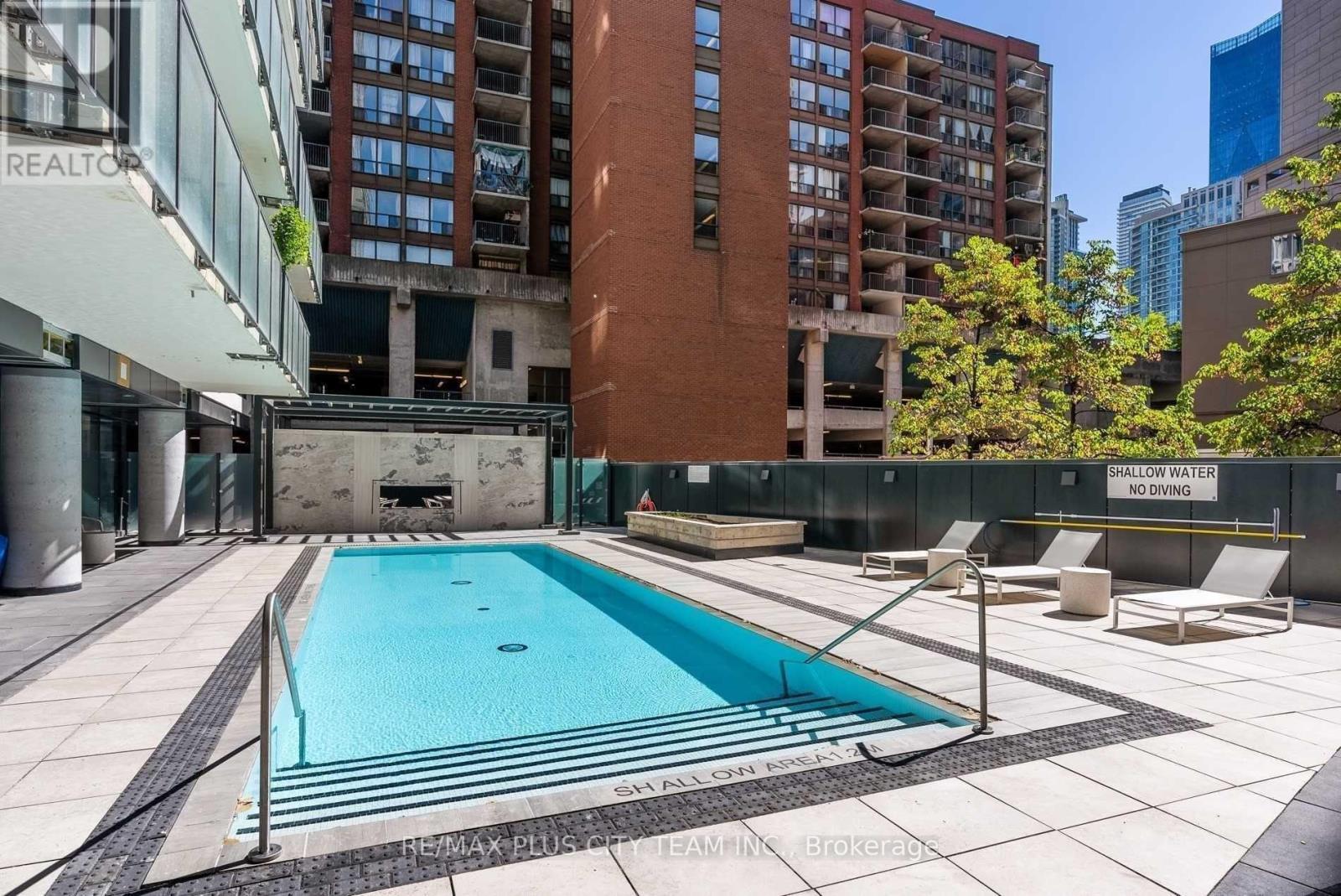 Enjoy luxury living in one of Toronto's most desirable neighbourhoods with this bright and well-designed 1-bedroom plus den suite. The unit features a functional open-concept layout with no wasted space, highlighted by floor-to-ceiling windows that fill the space with natural light. The modern kitchen is equipped with stainless steel appliances, sleek cabinetry, and quality finishes throughout, offering both style and practicality. Residents enjoy access to fantastic building amenities, including a beautiful outdoor pool, a multi-level fitness centre, a stylish party room, and 24-hour security for peace of mind. Located just a short walk from St. Lawrence Market, the Distillery District, Lake Ontario, the Financial District, Scotiabank Arena, the Eaton Centre, and a wide array of shops, restaurants, and transit options, this location truly offers the best of downtown living. (id:51158)