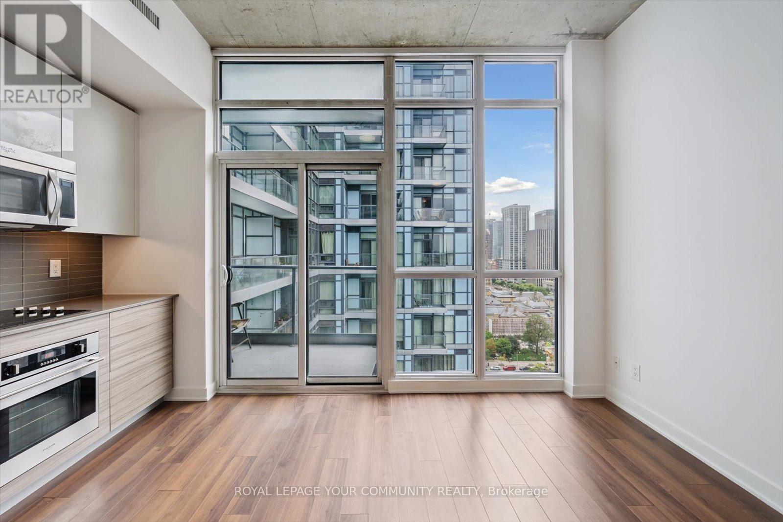 Located beautifully in the vibrant heart of the city at University and Dundas, this stunning 1-bedroom, 1-bath. Floor-to-ceiling windows flood the space with natural light, creating an inviting and airy atmosphere. Residents enjoy exclusive access to premium amenities including a fully equipped gym, elegant party room, rooftop patio with breathtaking views, and 24/7 concierge service. Perfectly situated for those seeking the dynamic city lifestyle with convenience and style. With the best of Torontos dining, shopping, entertainment and OCAD University just outside your door, this is downtown living at its finest. (id:51158)
