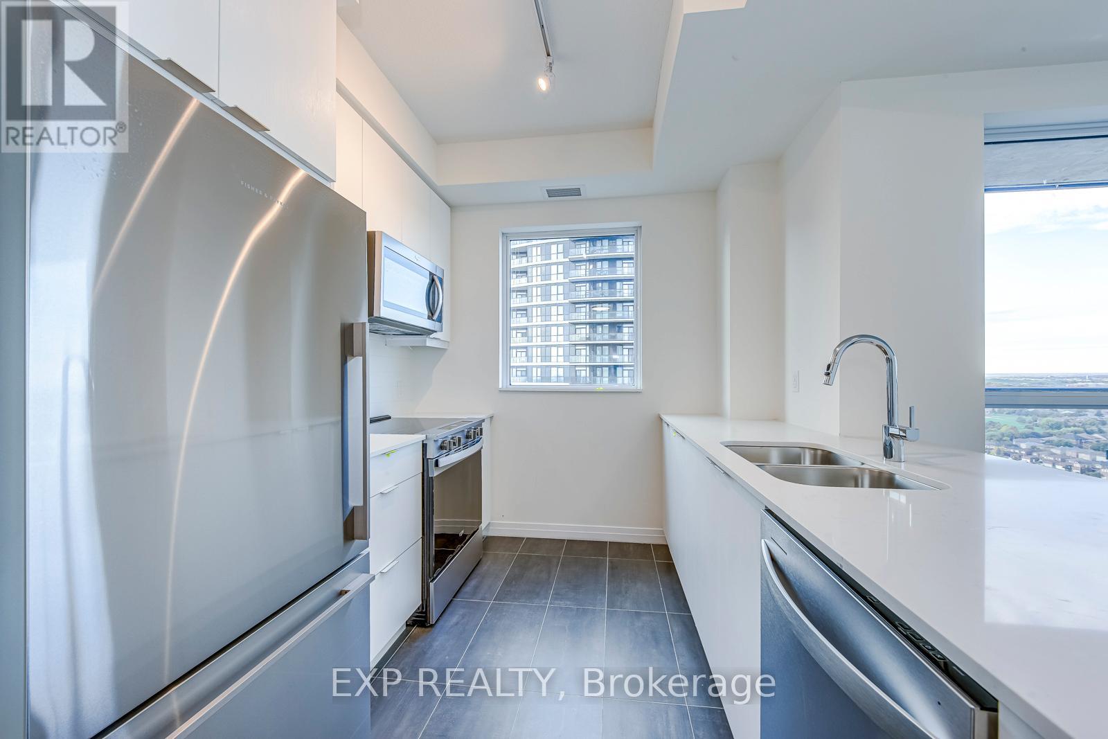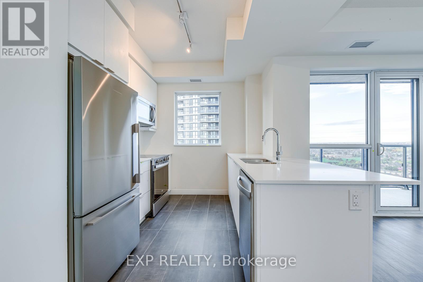 Welcome to Gemma Condos Brand New, Never Lived In! Experience modern urban living in this spacious 2-bedroom plus large den corner suite, perfectly situated in the heart of Mississauga. Facing west and north, the unit offers panoramic views of the city skyline all filled with abundant natural sunlight throughout the day. Enjoy a bright open-concept layout with floor-to-ceiling windows and a modern kitchen featuring quartz countertops, stainless steel appliances, and sleek cabinetry. The den is large enough to serve as a formal dining area, or home office. The primary bedroom includes a walk-in closet and a private ensuite bathroom. Additional features include in-suite laundry, a private balcony, and one underground parking space plus a locker. Ideally located minutes from Square One and many major shopping centers, Heartland Town Centre, hospitals, schools, parks, and just steps to public transit, the future LRT, with easy access to Highways 401, 403, and 407. Don't miss this rare opportunity to live in a sun-filled corner suite in one of Mississauga's most sought-after new communities! (id:51158)