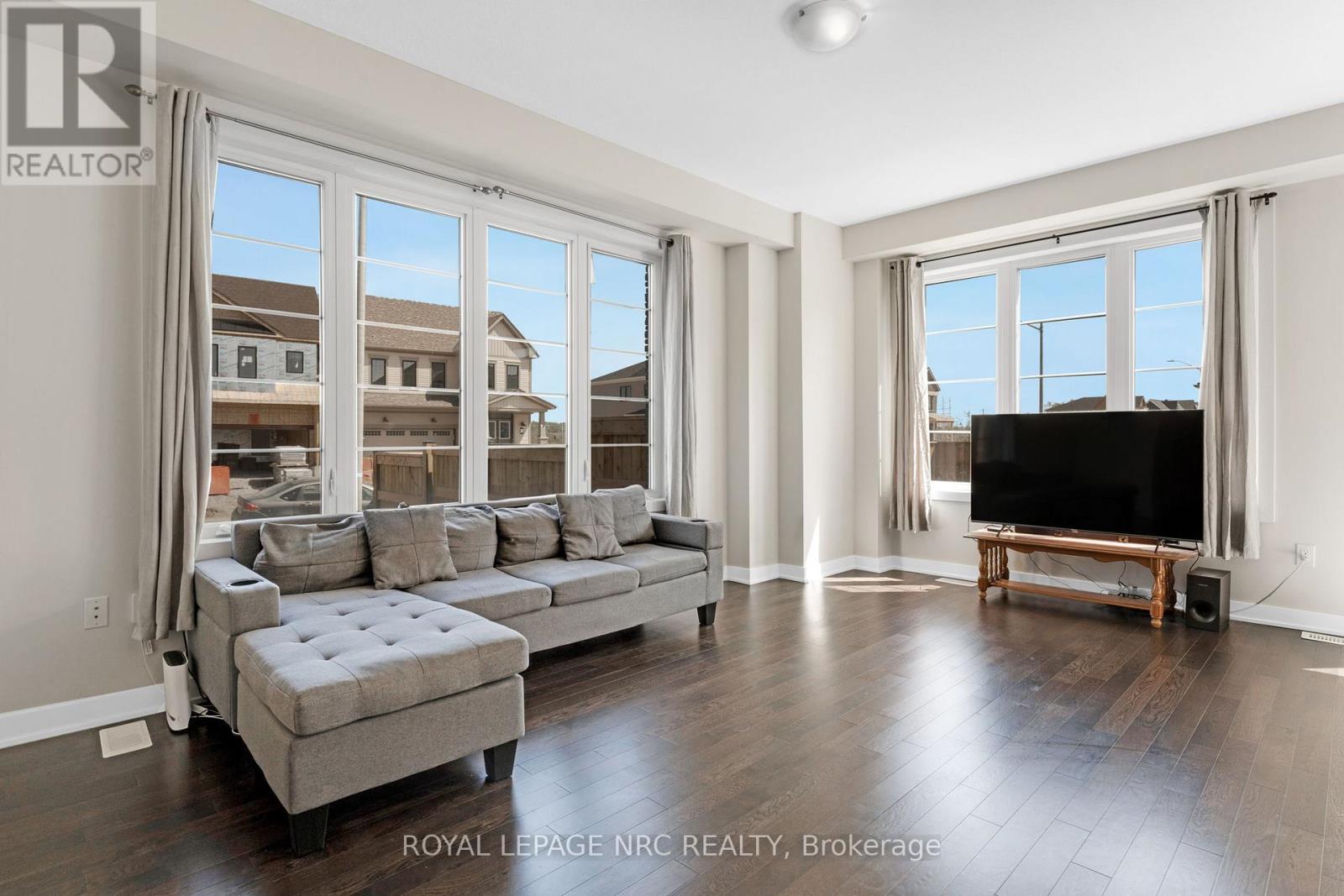 Stunning Executive Two-Storey Home on Premium Corner Lot in Empire Canals!Welcome to this beautifully crafted, nearly-new executive home located in the sought-after Empire Canals community in Dain City. Perfectly situated just a 5-minute walk to the Welland Canal and The Cove Park, this property offers the ideal blend of modern living and natural surroundings.Set on a premium corner lot, this home is just under 2 years old and showcases high-end finishes throughout including rich hardwood floors, oak staircase, and oversized windows that flood the space with natural light.The open-concept main floor is ideal for both family life and entertaining, featuring a spacious living and dining area, plus a stylish kitchen with a large island and plenty of cabinetry.Upstairs, youll find a generous primary suite complete with a walk-in closet and private ensuite bath. The second floor also offers two additional spacious bedrooms, a convenient second-floor laundry, and a modern 4-piece main bath.The unfinished basement includes a bathroom rough-in and is ready for your personal touch whether you envision a rec room, gym, or in-law suite.This home is move-in ready and located close to walking trails, schools, shopping, hospitals, and just a short drive to Highway 406, making commuting a breeze. (id:51158)
