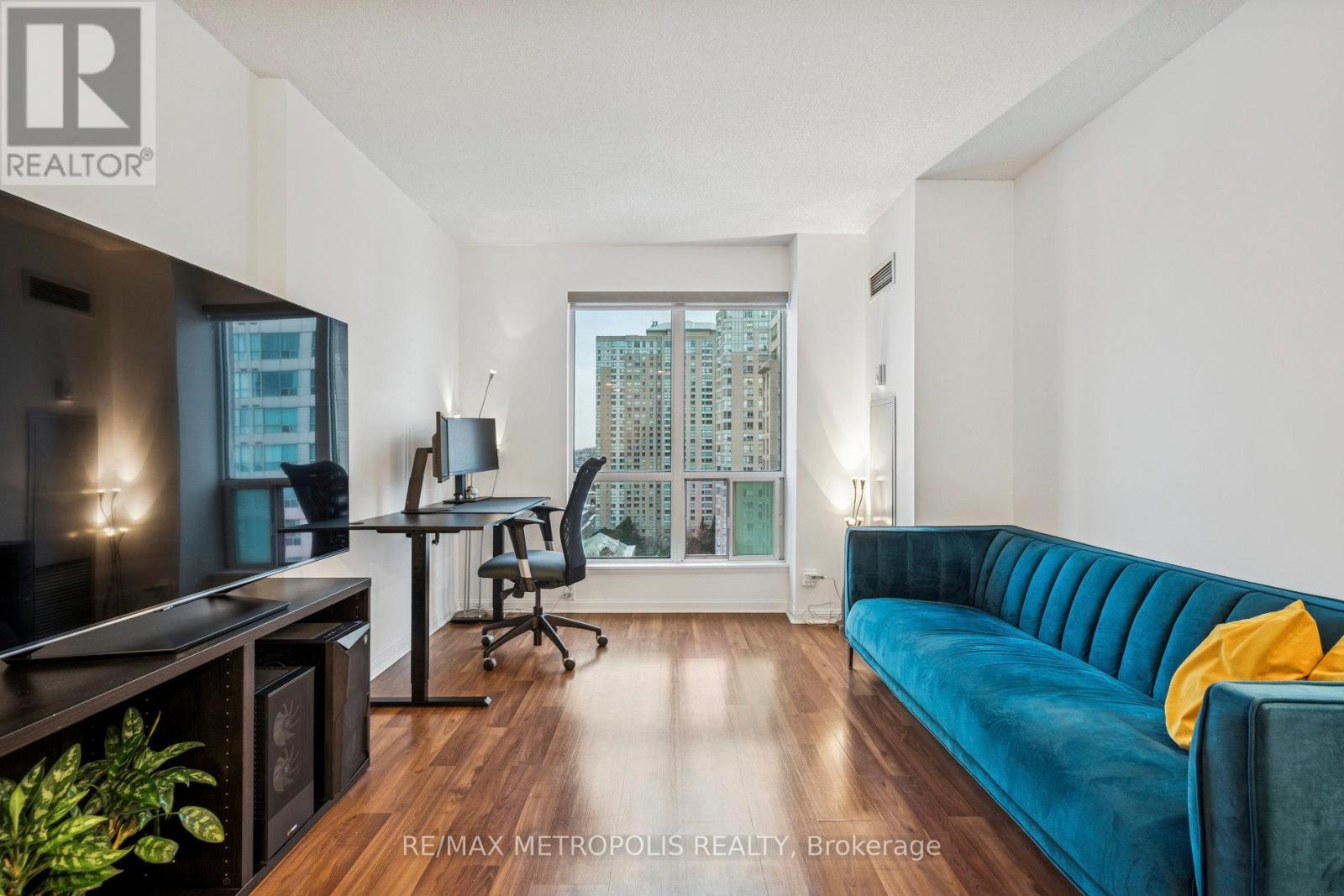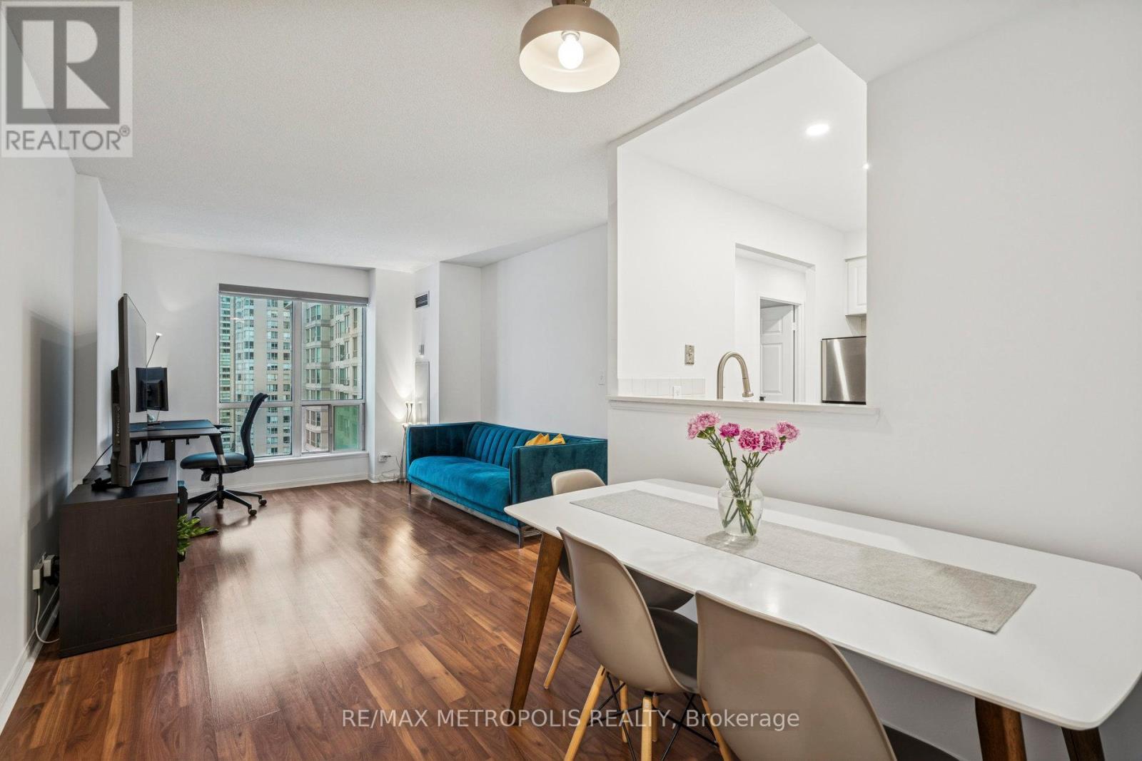 $909.25 MonthlyExperience urban elegance in this exceptional corner residence, flooded with natural light and enhanced by fresh paint, new pot lights, and refreshed bath and kitchen cabinetry with luxurious stone countertops. The expansive windows offer dramatic city views, while an open, airy layout invites effortless entertaining and serene daily living. Thoughtful design details throughout create a refined, contemporary ambiance that feels both welcoming and elevated. The meticulous upkeep of the building, along with all-inclusive maintenance and prestigious amenities, ensures a worry-free lifestyle in one of Scarborough's most coveted addresses. Prime Scarborough location provides unmatched convenience with easy access to Scarborough Town Centre, a vibrant array of dining options, Hwy 401, TTC, GO, LRT, parks, and abundant nearby schools and recreation. This residence stands as a rare blend of sleek sophistication, luminous space, and superior comfort-a true testament to modern urban living. (id:51158)