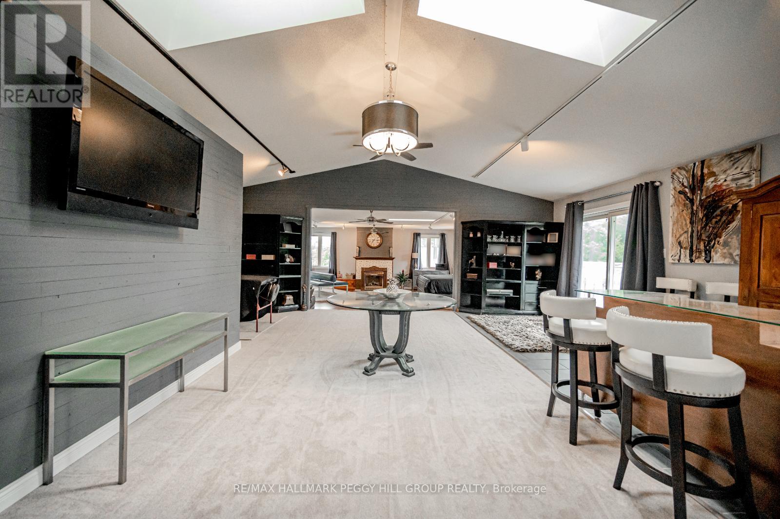 MULTI-GENERATIONAL ESTATE ON 1.3 ACRES WITH OVER 8,400 SQ FT, SEPARATE LIVING QUARTERS & RESORT-STYLE AMENITIES! This exceptional property, located just outside the charming community of Stroud, offers serene country living and city convenience. This property features over 8,400 sq. ft. of finished living space, including a fully finished main house, a pool house, and separate studio space, each complete with its own kitchen. The main house features a warm and elegant interior with 5 bedrooms, 4 bathrooms, updated flooring, and a desirable layout with multiple walkouts, perfect for entertaining. The kitchen boasts butcher block counters, white cabinets, and stainless steel appliances. The second floor primary suite impresses with a private entertainment area, sitting area with a fireplace, private balcony, office area, and ensuite with walk-in closet and in-suite laundry. The lower level is highlighted by a traditional wooden wet bar and spacious recreation room. Ideal for extended family, the pool house features exotic tigerwood flooring, skylights, a wall of windows overlooking the pool, a spacious living room with vaulted ceilings and a wet bar, a full kitchen, 2 bedrooms, and 2 bathrooms. The pool house also has a 690 sq. ft. basement with plenty of storage and its own gas HVAC and HWT. The bonus studio space welcomes your creativity and offers an open-concept design. Enjoy an in-ground pool, expansive stamped concrete patio, multiple decks, and plenty of green space for family events and activities. Additional amenities include a paved area for a basketball court and an ice rink, exterior lighting, a sprinkler system, and 2 storage sheds. The property has 800 Amp service and a side gate offering access to drive to the backyard, which is the perfect spot to park the boats or toys. This multi-residential #HomeToStay is perfect for those seeking privacy and endless entertainment possibilities. (id:51158)