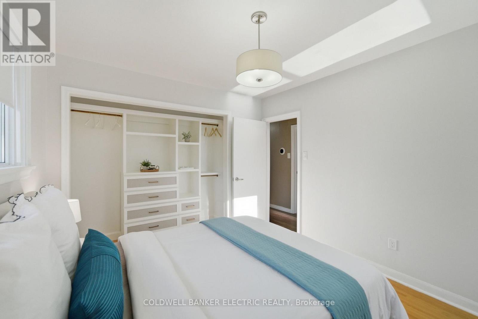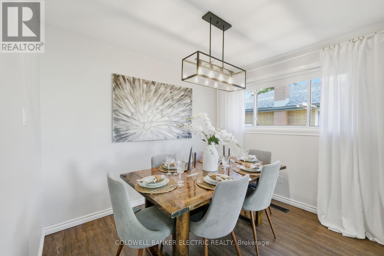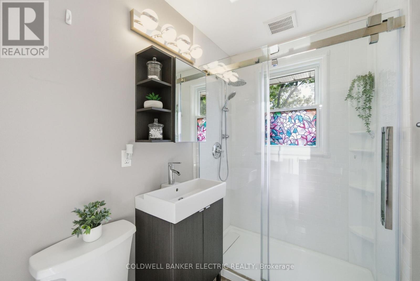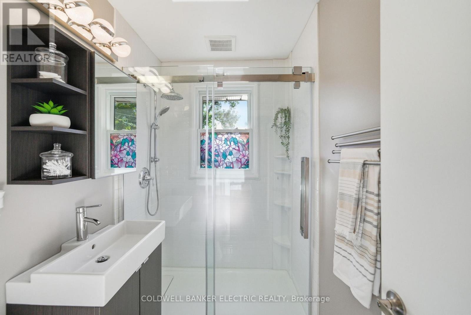 Step inside and be greeted by a stunning renovated kitchen featuring a massive island with breakfast bar, granite countertops, modern light fixtures, and an abundance of cabinetry-- good luck filling them all! The open-concept layout seamlessly connects the bright dining area and cozy living room, complete with custom-built bookshelves that add both charm and character.The main floor bathroom has been tastefully updated with a sleek modern vanity and fixtures. You'll love the updated flooring and beautiful neutral paint palette that carries throughout the main floor and into both bedrooms, creating a warm and cohesive flow.Downstairs, the finished lower level offers even more space featuring a generously sized additional bedroom, a 3-piece bathroom, a large rec room, laundry room, cold cellar, and plenty of storage. With its separate entrance, this level offers excellent in-law potential for the future.Step outside to your own backyard retreat a 33' x 15' detached garage with a large barn-style door opening to a covered porch area, perfect for a poolside bar or change room. Overlooking the 32' x 15' heated inground pool with stamped concrete surround, this backyard is designed for entertaining and relaxation. The back of the garage includes a workshop space that every hobbyist will appreciate.Situated on a quiet, tree-lined street within walking distance to schools, parks, and amenities, this home truly has it all. With its modern upgrades, functional layout, and inviting outdoor space, you can't help but want to call this your next home. EXTRAS: Inground Pool (2017) Pool Heater (2022) Central Air (2019) Furnace (2025) Hot Water Tank (2025) Custom Built-Ins (2024) (id:51158)