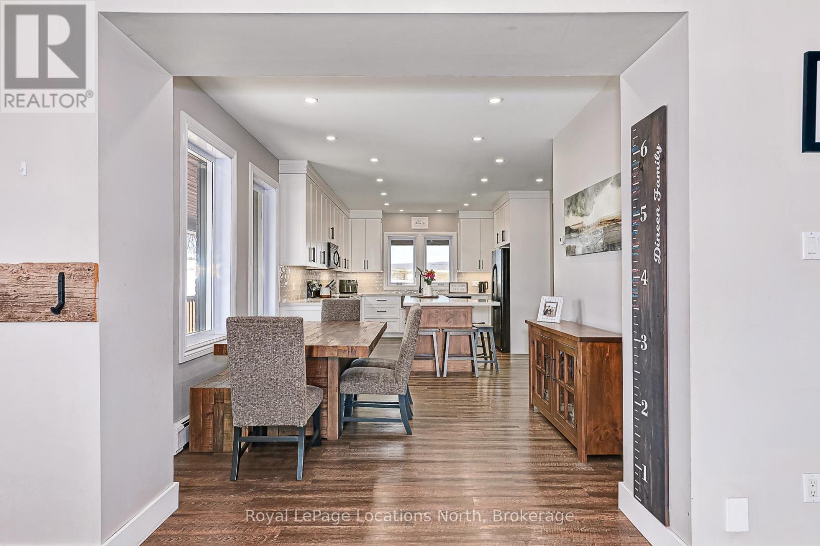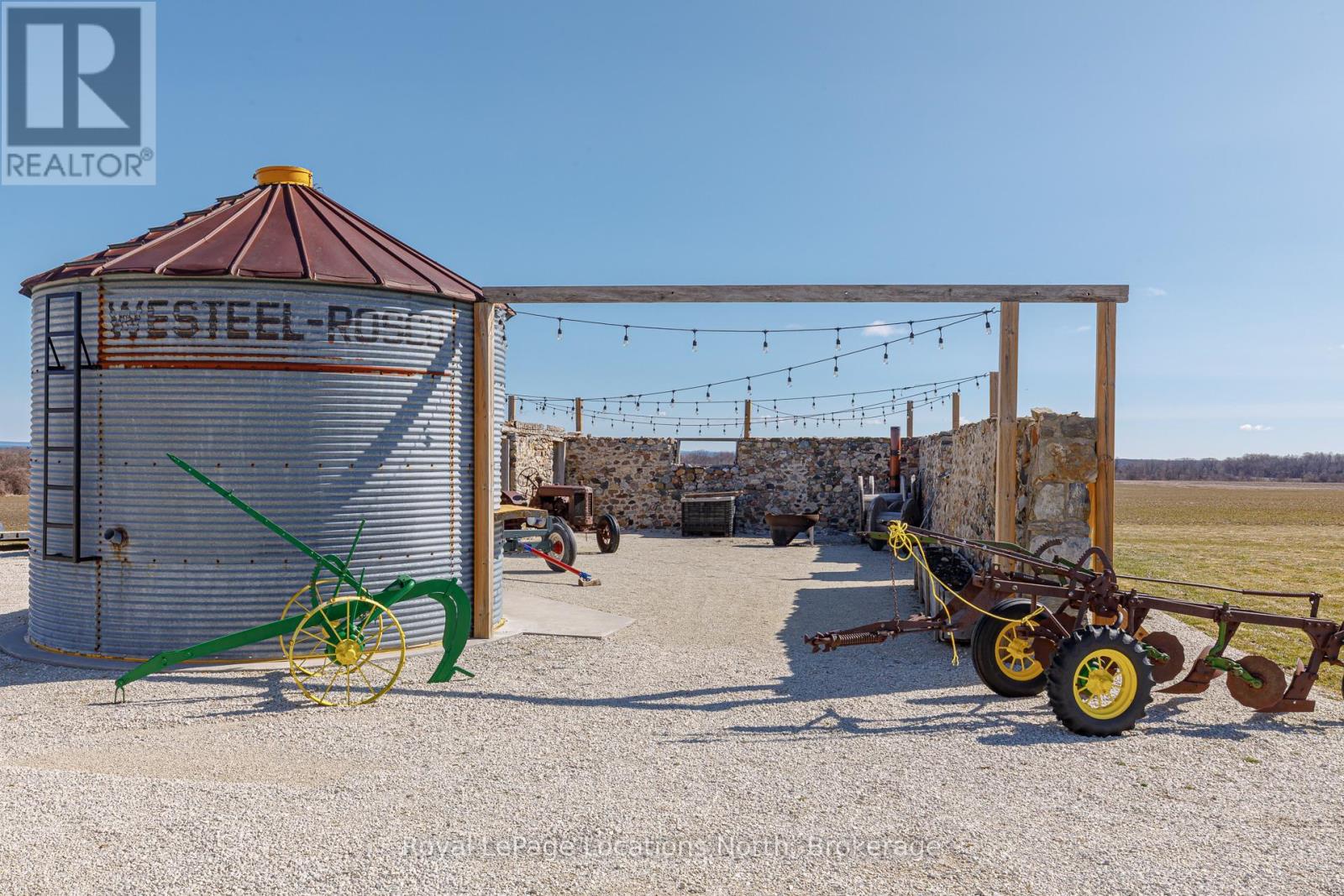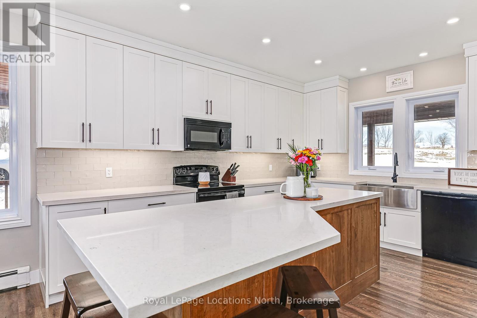Discover the charm of country living with this 4 Bedroom, 3.5 bath, 3.5 storey renovated farmhouse with 3000 square feet of stylish open concept living space. Nestled on 2.68 acres this property offers a blend of modern comforts and rustic appeal. Walk-out from the living room to a large deck and patio area and soak in views of the Bay and refreshing pool. The gorgeous Batteaux Creek custom kitchen (2021) features a huge island with a quartz countertop, ideal for family gatherings or entertaining! Experience the ultimate retreat in the massive primary bedroom, complete with a 6 piece ensuite bath (2016) and walk-in closet. Step out onto the private balcony and take in the breathtaking views of Georgian Bay! The finished bonus room in the attic is perfect for a kid's playroom, music or art studio. The freshly painted family room on the lower level features a cozy wood stove and includes a walk-out to the expansive rear yard. Full bath and sauna complete the lower living space. The 7 foot high unfinished basement area is ideal for storage. Enjoy a morning coffee on the charming wrap around veranda. Steel roof on house and garage, windows and exterior doors all replaced in 2018. The 26 x 26 detached, double car garage has an attached 14 x 23 propane-heated workshop area. The quality built 2018, 40 x 112 outbuilding consists of a 32 x 40 shop with a 16 foot ceiling and is roughed-in for in-floor heating. 14 x 16 foot insulated overhead and slider doors. Impressive 40 x 80 cold storage area complete with a storage mezzanine. Primary underground service, 50kva transformer, 200 amp service to the shop area and central metering. From hobbies to business ventures, the uses for this building are endless! The original barn foundation is transformed into an outdoor party area complete with a silo converted bar! This is a very unique and special property located just minutes to Collingwood, Blue Mountain, private ski clubs and golf courses with a stunning million dollar view! (id:51158)