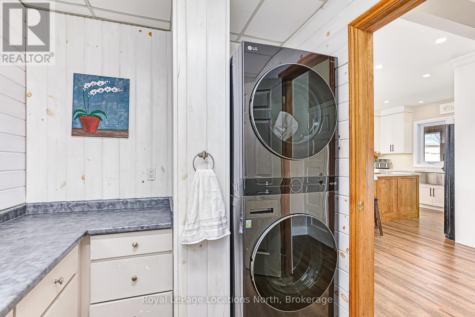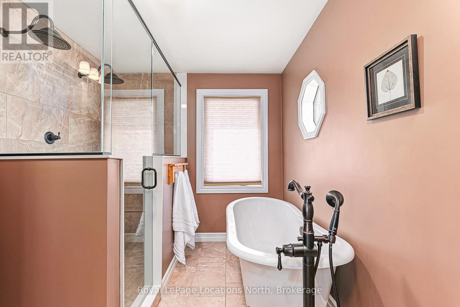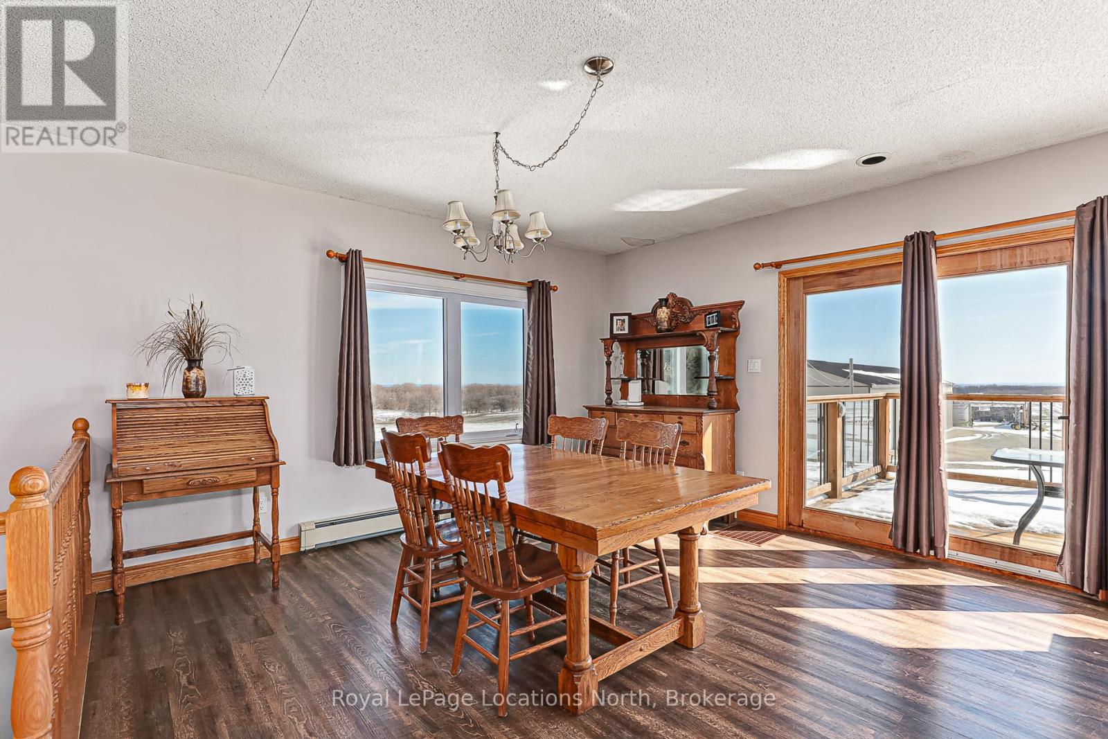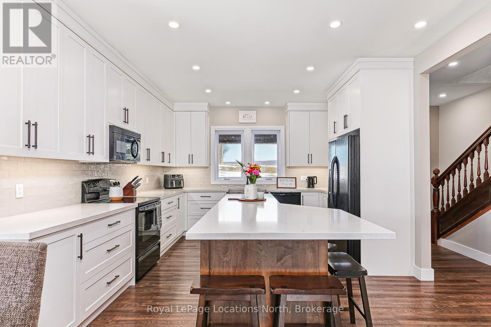 Discover the charm of country living with this 4 Bedroom, 3.5 bath, 3.5 storey renovated farmhouse with 3000 square feet of stylish open concept living space. Nestled on 2.68 acres this property offers a blend of modern comforts and rustic appeal. Walk-out from the living room to a large deck and patio area and soak in views of the Bay and refreshing pool. The gorgeous Batteaux Creek custom kitchen (2021) features a huge island with a quartz countertop, ideal for family gatherings or entertaining! Experience the ultimate retreat in the massive primary bedroom, complete with a 6 piece ensuite bath (2016) and walk-in closet. Step out onto the private balcony and take in the breathtaking views of Georgian Bay! The finished bonus room in the attic is perfect for a kid's playroom, music or art studio. The freshly painted family room on the lower level features a cozy wood stove and includes a walk-out to the expansive rear yard. Full bath and sauna complete the lower living space. The 7 foot high unfinished basement area is ideal for storage. Enjoy a morning coffee on the charming wrap around veranda. Steel roof on house and garage, windows and exterior doors all replaced in 2018. The 26 x 26 detached, double car garage has an attached 14 x 23 propane-heated workshop area. The quality built 2018, 40 x 112 outbuilding consists of a 32 x 40 shop with a 16 foot ceiling and is roughed-in for in-floor heating. 14 x 16 foot insulated overhead and slider doors. Impressive 40 x 80 cold storage area complete with a storage mezzanine. Primary underground service, 50kva transformer, 200 amp service to the shop area and central metering. From hobbies to business ventures, the uses for this building are endless! The original barn foundation is transformed into an outdoor party area complete with a silo converted bar! This is a very unique and special property located just minutes to Collingwood, Blue Mountain, private ski clubs and golf courses with a stunning million dollar view! (id:51158)