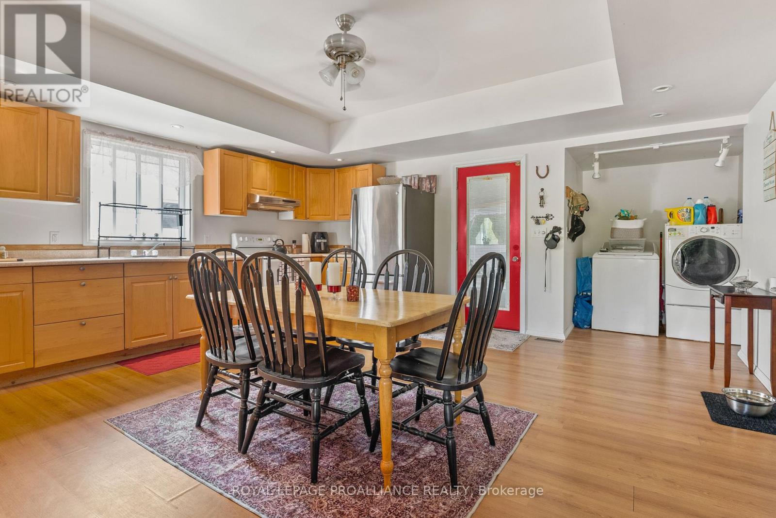 Located on Crookston Road, this 2-bedroom back-split offers the best of rural living with convenient access to Belleville, Madoc, Tweed, and Marmora. Set on just over an acre, the property provides privacy, space, and a quiet country setting. The home features a bright and spacious kitchen, a generous living room with walkout to the front porch, and a well-designed upper level with two comfortable bedrooms and a 3-piece bathroom, complete with an accessible shower. The lower level offers a clean, unfinished space, ideal for storage or future development.A durable steel roof ensures long-lasting peace of mind. Outdoor living is highlighted by covered patios at both the front and back of the home, providing shade in the summer and shelter during a gentle rain, perfect for enjoying the tranquility of country life. A detached 2-car garage offers ample room for parking, workshop use, or recreational space, with a covered rear veranda ideal for wood storage, lawn equipment, or ATVs. The location is a dream for outdoor enthusiasts: the OFSC trail runs just steps from the property, providing direct access for snowmobiling, ATVing,or leisurely walks, while Moira Lake is only minutes to the north for boating, fishing, and water sports. This property combines comfort, functionality, and an ideal location for those seeking a balance of quiet rural living with easy access to nearby towns and amenities. (id:51158)