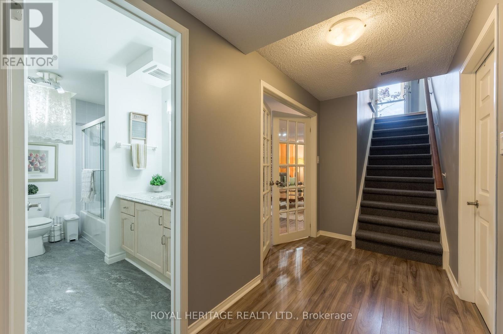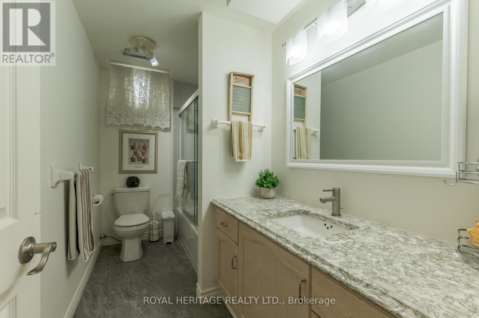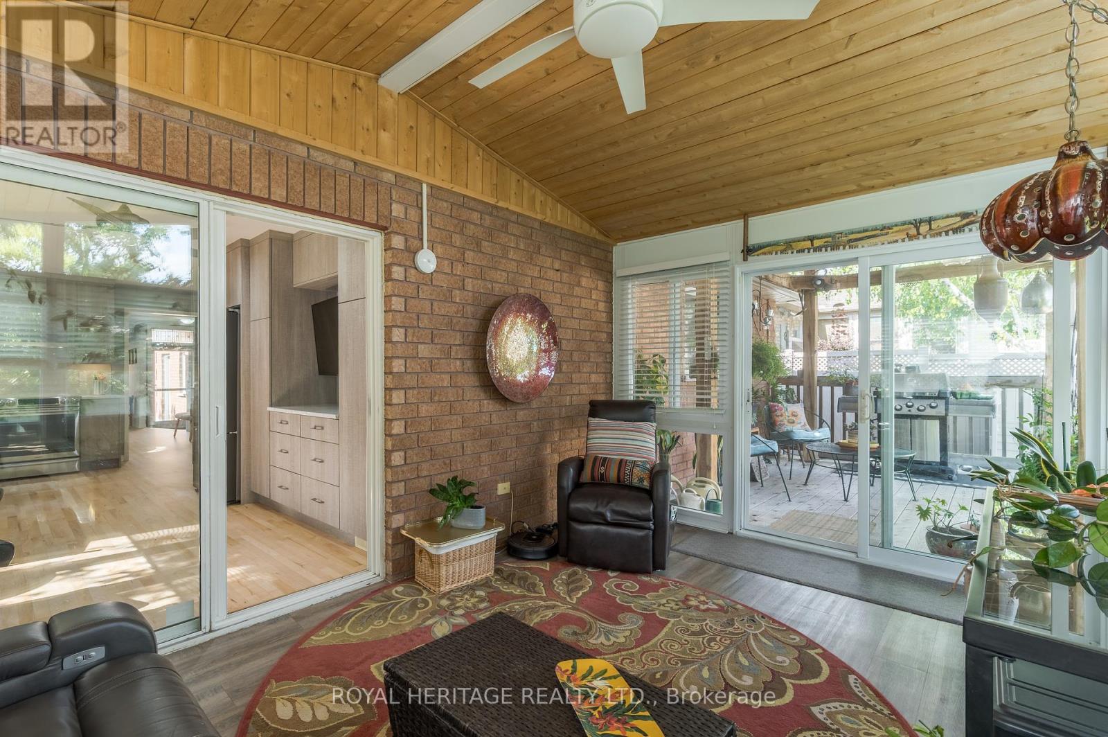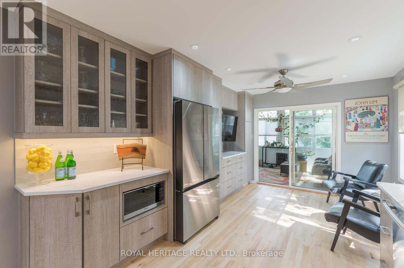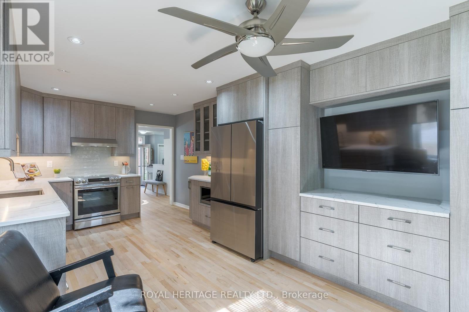 A well-maintained brick bungalow set on a professionally landscaped corner lot in Peterborough's sought-after west end. Offering three bedrooms, a 3-piece bath with a large walk-in shower, and main-floor laundry, this home is perfect for those seeking the ease and convenience of one-level living. The open-concept living and dining area showcases hardwood floors and an abundance of natural light. Beautifully appointed, the modern and stylish eat-in kitchen features high-end quartz countertops, soft-close floor-to-ceiling cabinetry, wood-dovetail full-extension drawers, undermounted lighting, and stainless-steel appliances (2019). As a bonus, the sunroom offers a comfortable space to relax and unwind. The fully finished basement extends the living space with a spacious family room complete with a gas fireplace, a versatile rec room or office, a four-piece bath, and a generous storage/workshop area. The private, fully fenced backyard, enclosed with low-maintenance composite fencing, provides an inviting outdoor oasis with a covered deck, interlocking stone patio, and raised garden beds. The oversized garage includes two man doors and direct access to the home's front foyer. Major updates include: shingles (2019), triple-glaze windows (2015), front door (2019), custom window coverings (2019), furnace and AC (2019), Generac generator (2020), high-efficiency washer/dryer (2024), and landscaping (2025). Don't miss out on this turnkey property in a prime location! (id:51158)