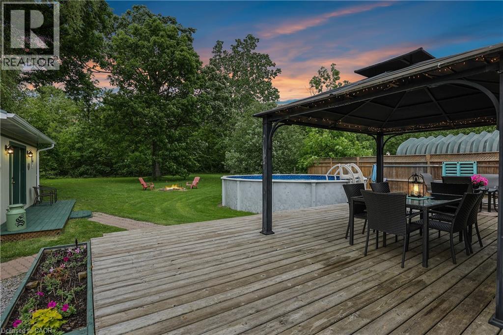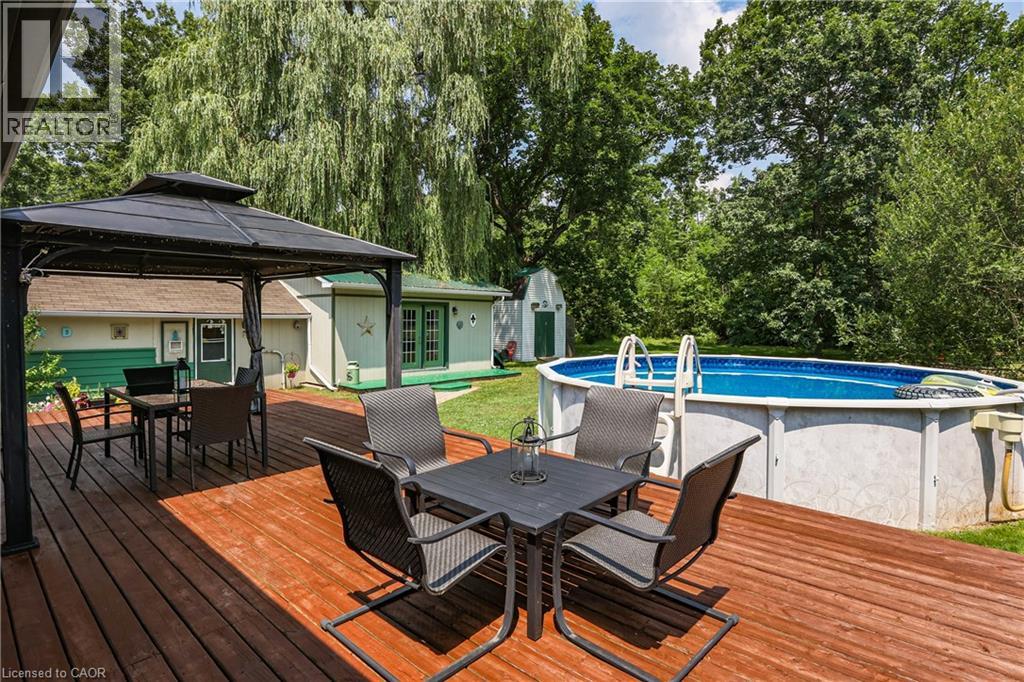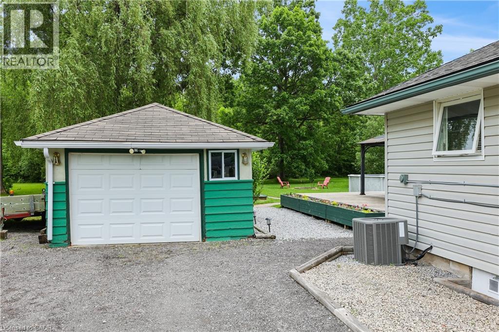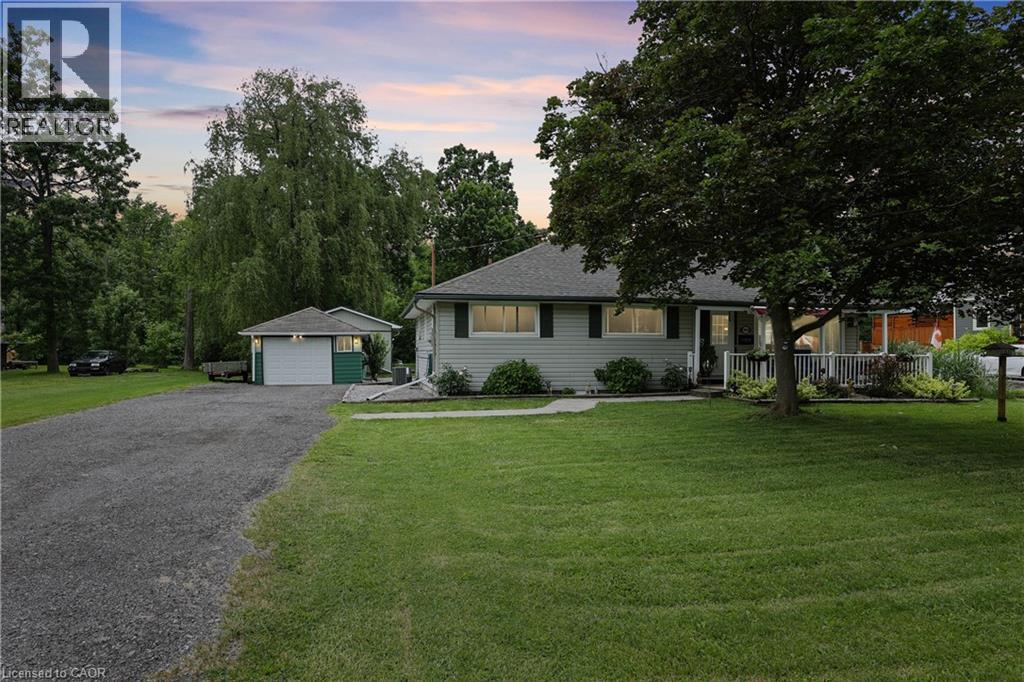 COUNTRY CHARM JUST MINUTES TO TOWN ... Tucked away on a quiet street in Fort Erie, 1954 Grayson Avenue offers peaceful country-style living on a lush OVERSIZED 80’ x 223.8’ L-SHAPED lot backing onto the Stevensville Conservation Area - with no rear neighbours and mature trees for ultimate privacy. This spacious, 1680 sq ft bungalow is full of character, and features 3 bedrooms and 2 bathrooms. Step onto the charming, covered front porch, then proceed inside to find gleaming hardwood floors, crown moulding, and an impressive corner gas fireplace anchoring the OPEN CONCEPT living/dining space. The bright kitchen offers abundant cabinetry, a gas stove, and a server window for effortless entertaining. Step through patio doors to your private backyard oasis, complete with a deck, above-ground POOL, 10’ x 12’ GAZEBO, gas BBQ hookup, storage/garden shed, and a detached garage/WORKSHOP. Bonus: a fully insulated 400 sq ft mancave with heat and A/C - perfect for a studio, games room, or year-round hangout! This home is practical, too - featuring a BRAND-NEW septic system, plenty of closets (all with lighting), 4-pc main bath, plus a separate laundry room with 2-pc bath. Located close to schools, parks, golf courses, campgrounds, the Fort Erie Leisureplex, and only minutes to Safari Niagara, Crystal Beach, or the Peace Bridge to the U.S. CLICK on MULTIMEDIA for virtual tour, drone photos, floor plans & more. (id:51158)