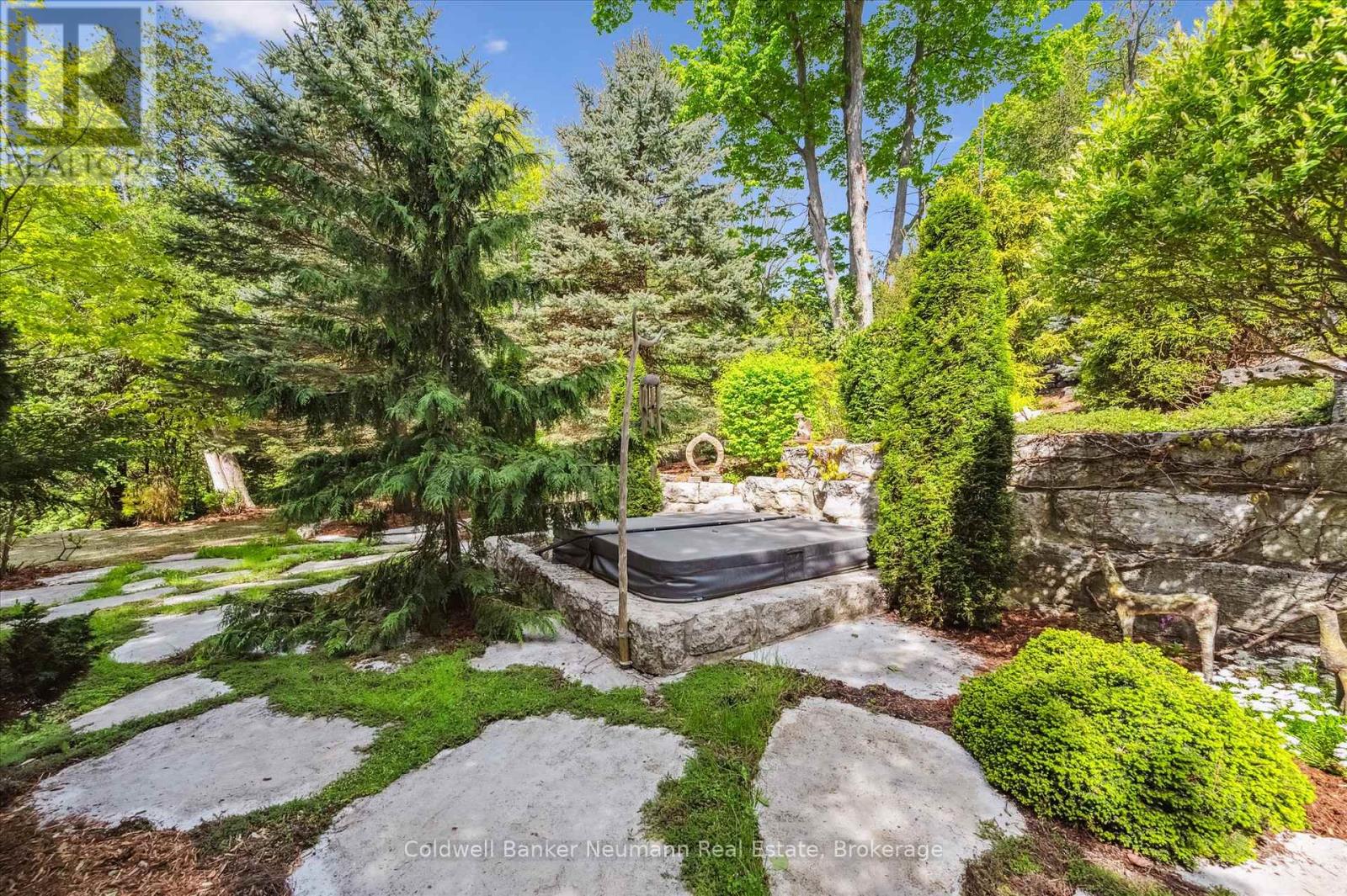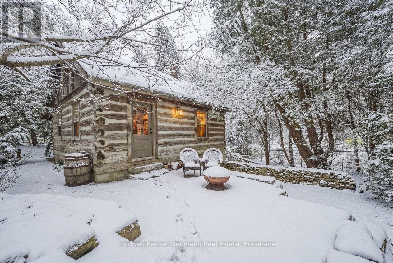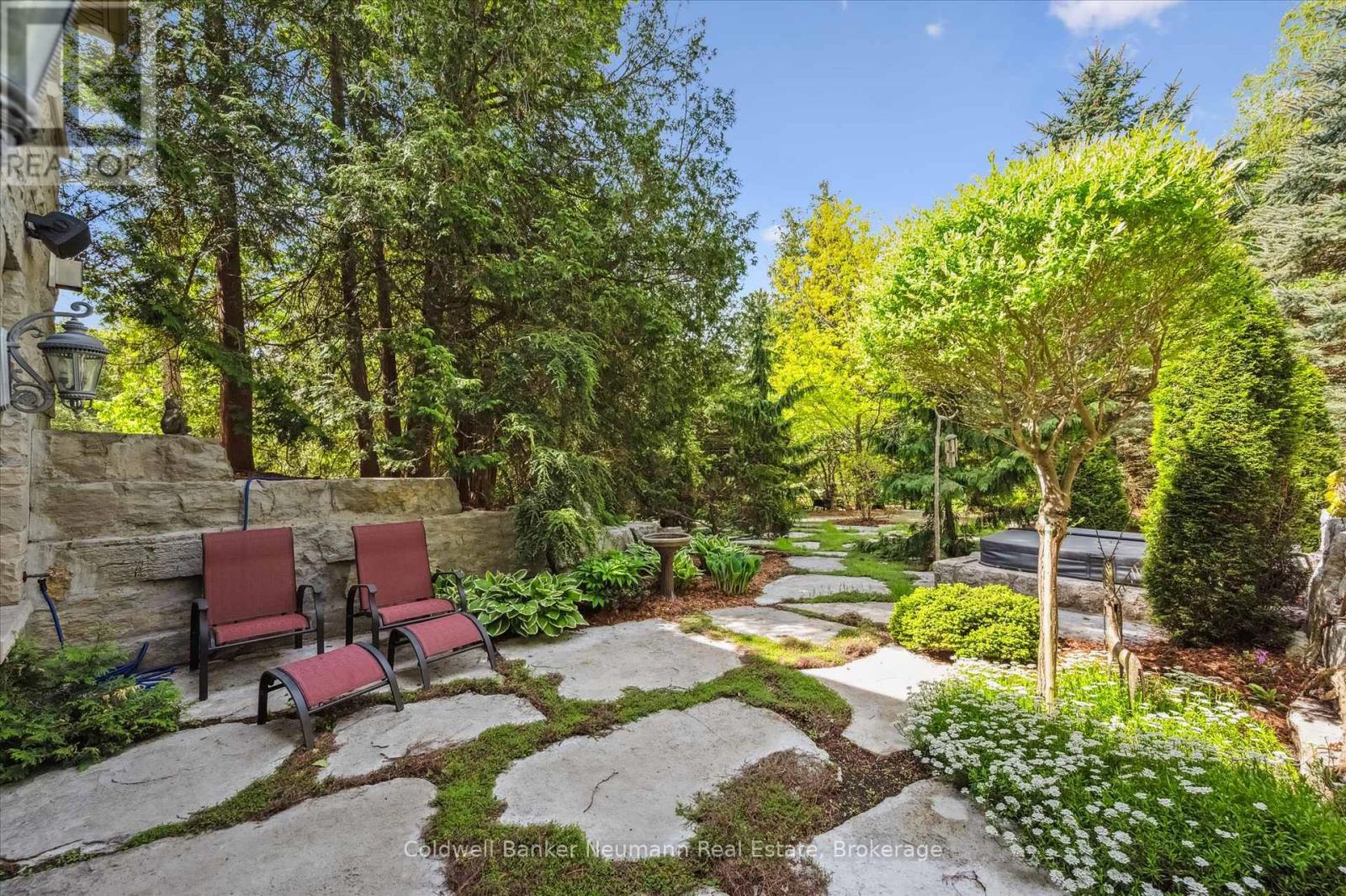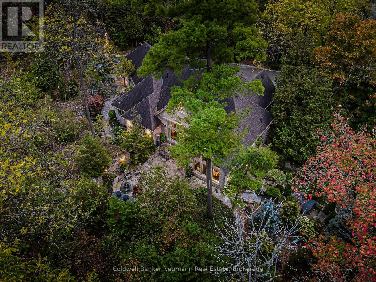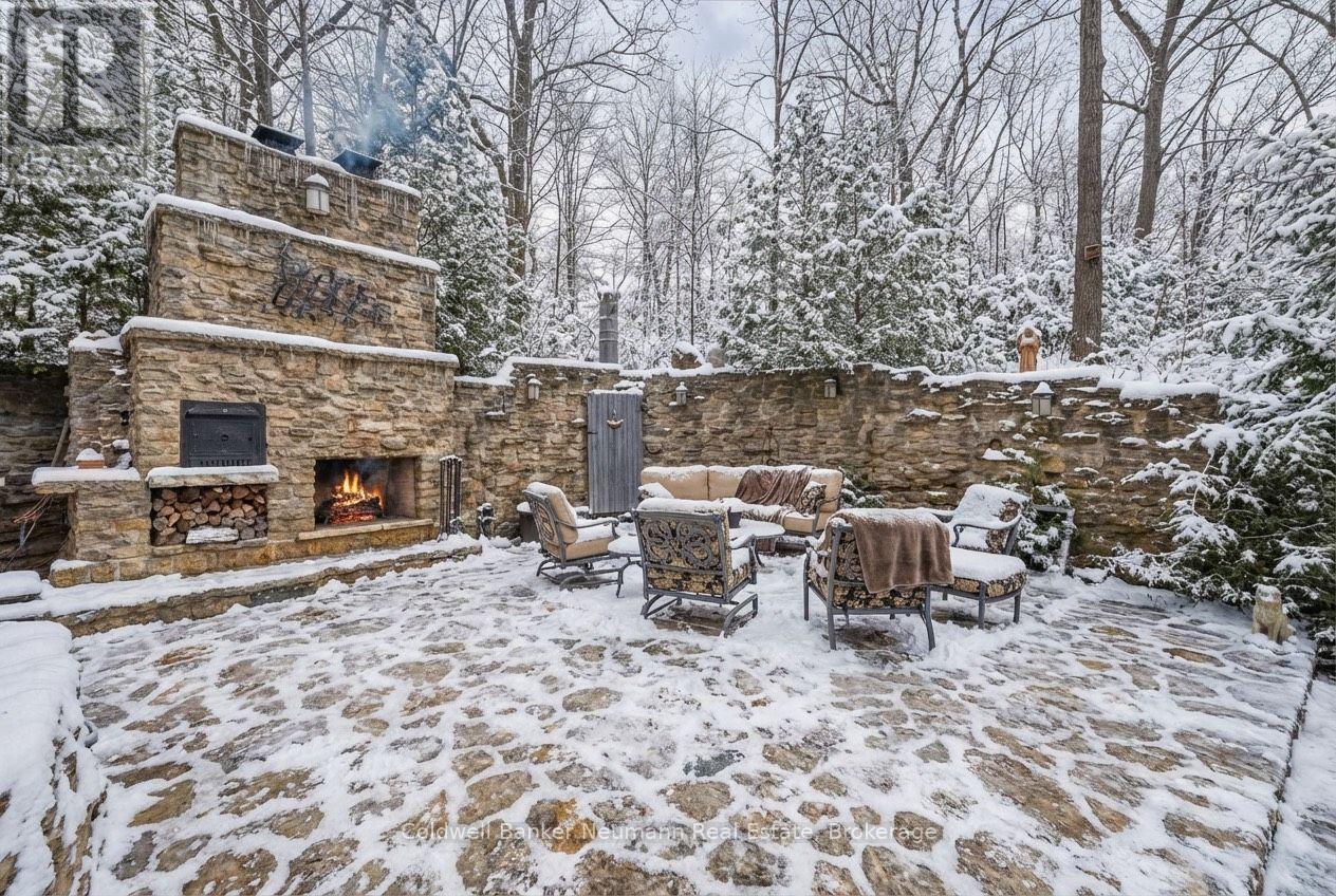 Set against the limestone escarpment on a private 1.1-acre lot at the end of a quiet road in Rockwood, this extraordinary retreat is surrounded by conservation land, offering complete privacy and a deep connection to nature. What began as untouched forest became an architectural masterpiece - the result of over three years of meticulous planning, permitting, and passion. Eighteen feet of rock were carved away to shape the foundation. A centuries-old log cabin from Ariss was carefully deconstructed and reassembled on-site, bridging history with modern innovation. Even the entrance was designed to impress - complete with its own handcrafted bridge leading to the home's grand arrival. Inside, the craftsmanship speaks for itself. Soaring cathedral ceilings, oversized windows, and panoramic forest views create an atmosphere that's both inspiring and serene. The main living area opens onto a European-style stone courtyard, while the primary suite feels like a private spa, complete with a luxurious ensuite and its own tranquil waterfall outlook. Upstairs, two additional bedrooms and a full bath offer comfort and flexibility for family or guests. The walk-out basement opens to a stunning flagstone patio complete with a hot tub - an ideal spot to unwind in total tranquility. Inside, enjoy the well-appointed entertainment level featuring a custom bar and private wine cellar, a pool table area perfect for friendly competition, a theatre room to catch the big game, a dedicated gym space for workouts, a full bathroom, and more. And then there's the historic 550 sq. ft. log cabin - beautifully restored and ready to serve as a guest house, creative studio, or personal sanctuary. Outfitted with a wet bar, gas fireplace, full bathroom, and ample storage, it's a destination all its own. A triple-car garage with lift provides ample room for vehicles, hobbies, and adventure gear, blending practicality with luxury. Schedule a private showing today to experience 198 Pasmore. (id:51158)