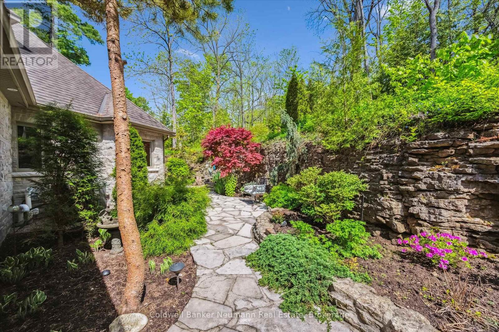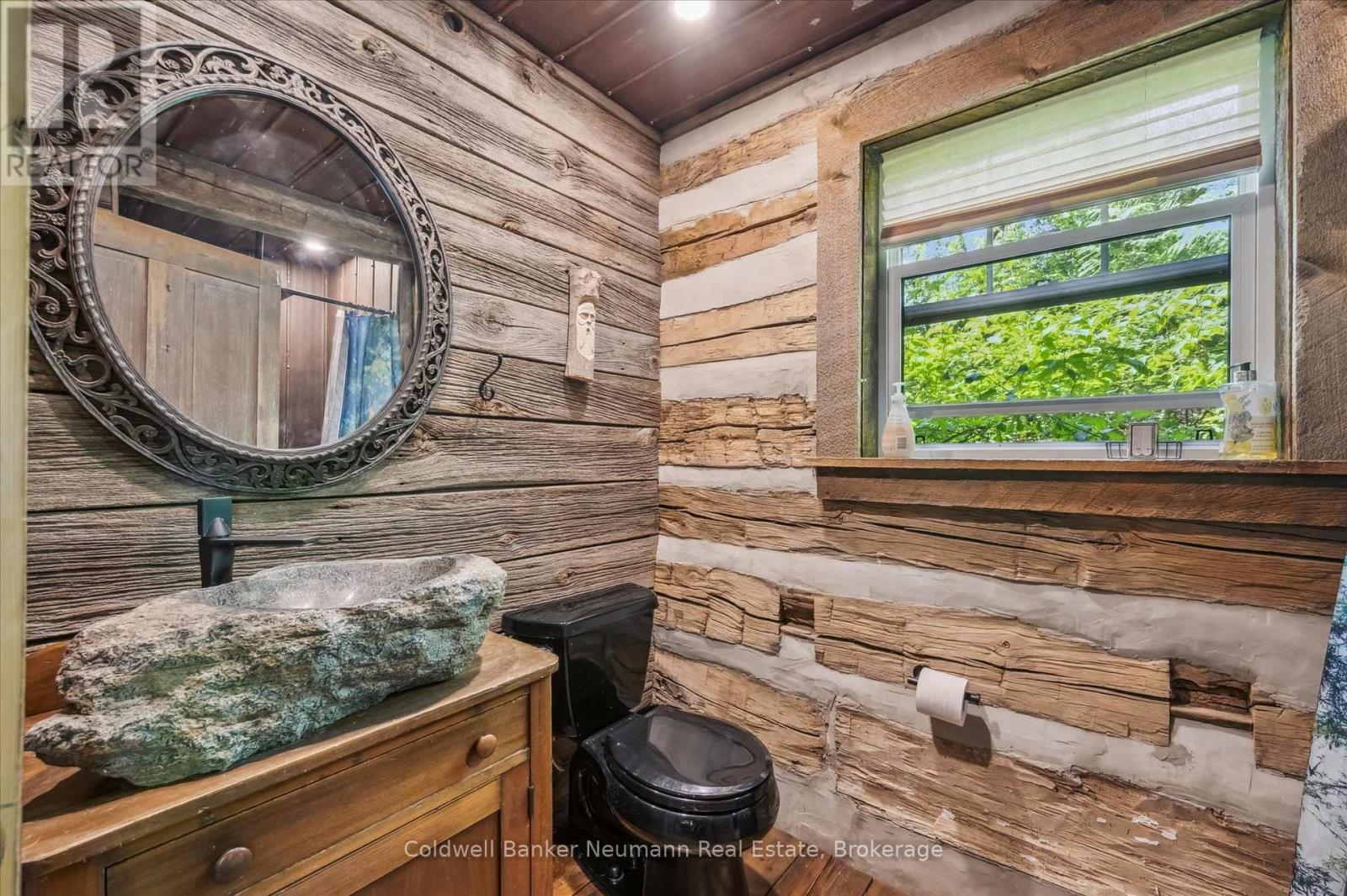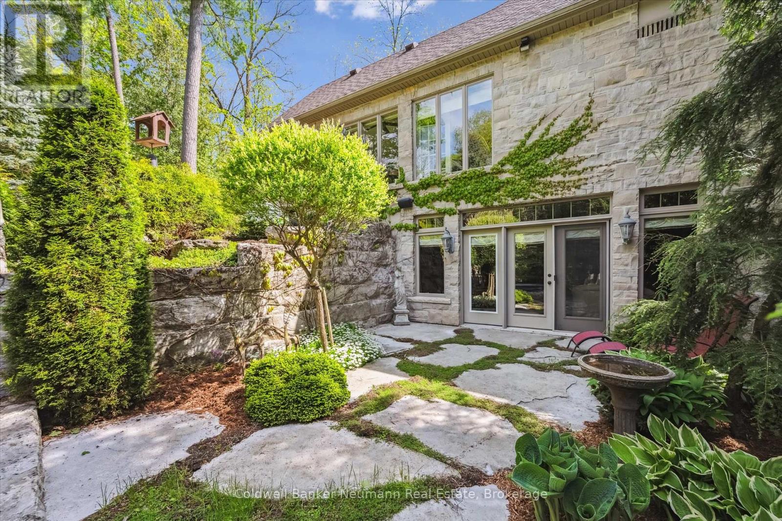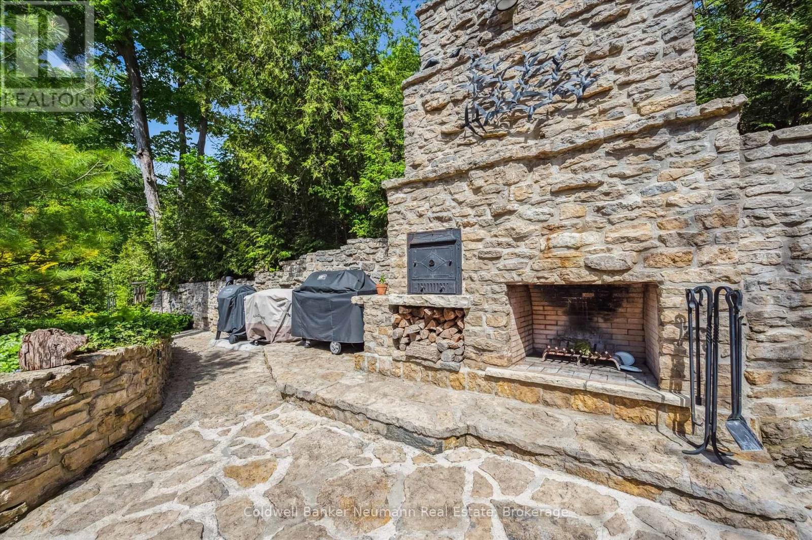 Set against the limestone escarpment on a private 1.1-acre lot at the end of a quiet road in Rockwood, this extraordinary retreat is surrounded by conservation land, offering complete privacy and a deep connection to nature. What began as untouched forest became an architectural masterpiece - the result of over three years of meticulous planning, permitting, and passion. Eighteen feet of rock were carved away to shape the foundation. A centuries-old log cabin from Ariss was carefully deconstructed and reassembled on-site, bridging history with modern innovation. Even the entrance was designed to impress - complete with its own handcrafted bridge leading to the home's grand arrival. Inside, the craftsmanship speaks for itself. Soaring cathedral ceilings, oversized windows, and panoramic forest views create an atmosphere that's both inspiring and serene. The main living area opens onto a European-style stone courtyard, while the primary suite feels like a private spa, complete with a luxurious ensuite and its own tranquil waterfall outlook. Upstairs, two additional bedrooms and a full bath offer comfort and flexibility for family or guests. The walk-out basement opens to a stunning flagstone patio complete with a hot tub - an ideal spot to unwind in total tranquility. Inside, enjoy the well-appointed entertainment level featuring a custom bar and private wine cellar, a pool table area perfect for friendly competition, a theatre room to catch the big game, a dedicated gym space for workouts, a full bathroom, and more. And then there's the historic 550 sq. ft. log cabin - beautifully restored and ready to serve as a guest house, creative studio, or personal sanctuary. Outfitted with a wet bar, gas fireplace, full bathroom, and ample storage, it's a destination all its own. A triple-car garage with lift provides ample room for vehicles, hobbies, and adventure gear, blending practicality with luxury. Schedule a private showing today to experience 198 Pasmore. (id:51158)
