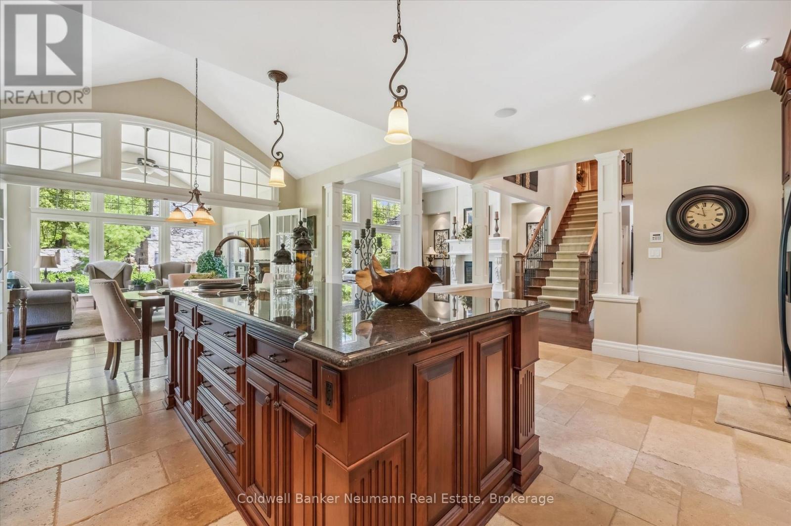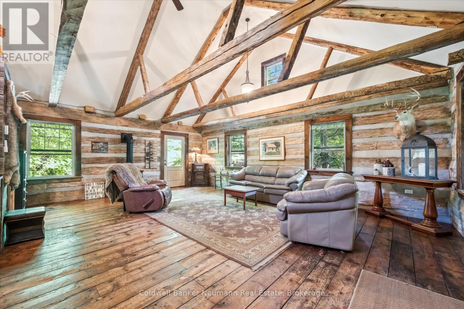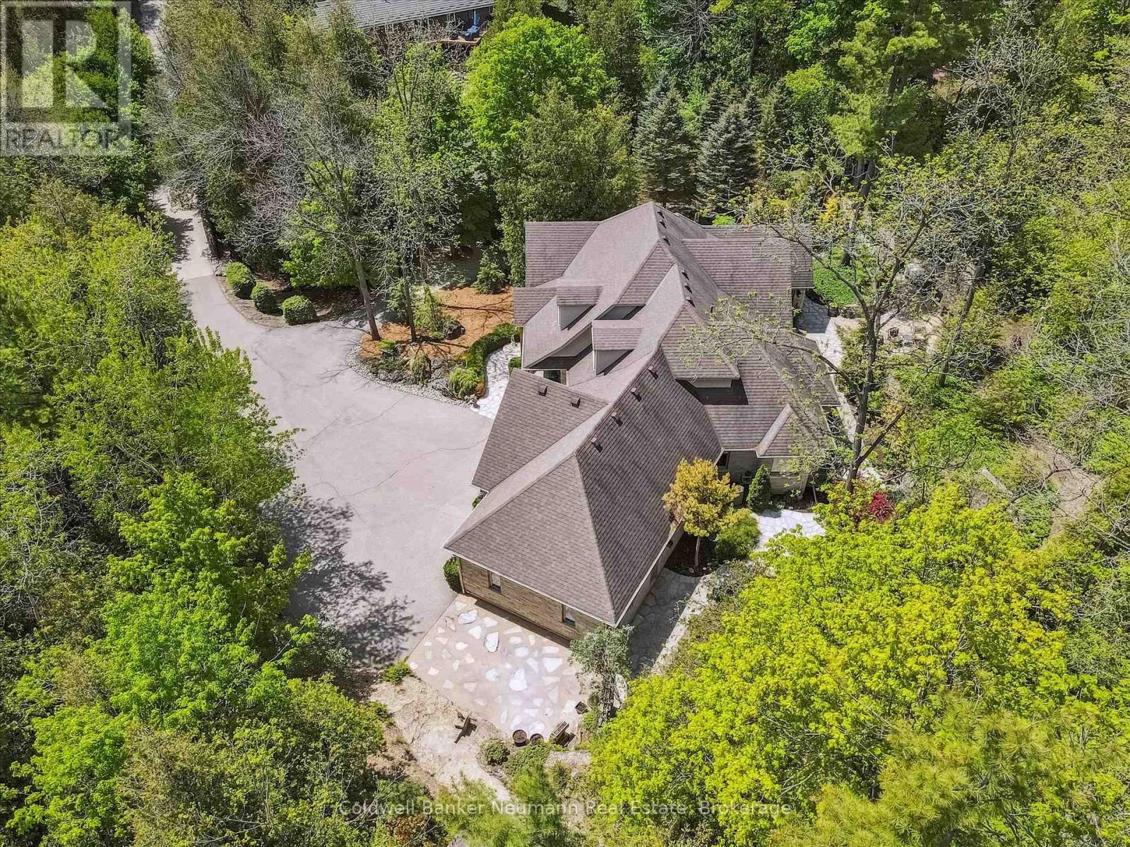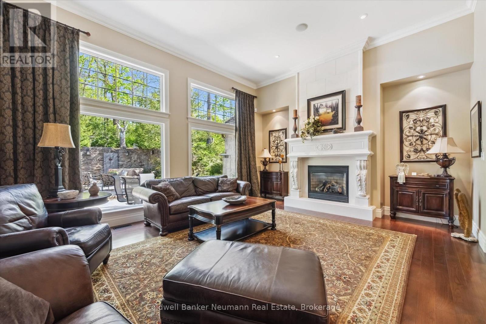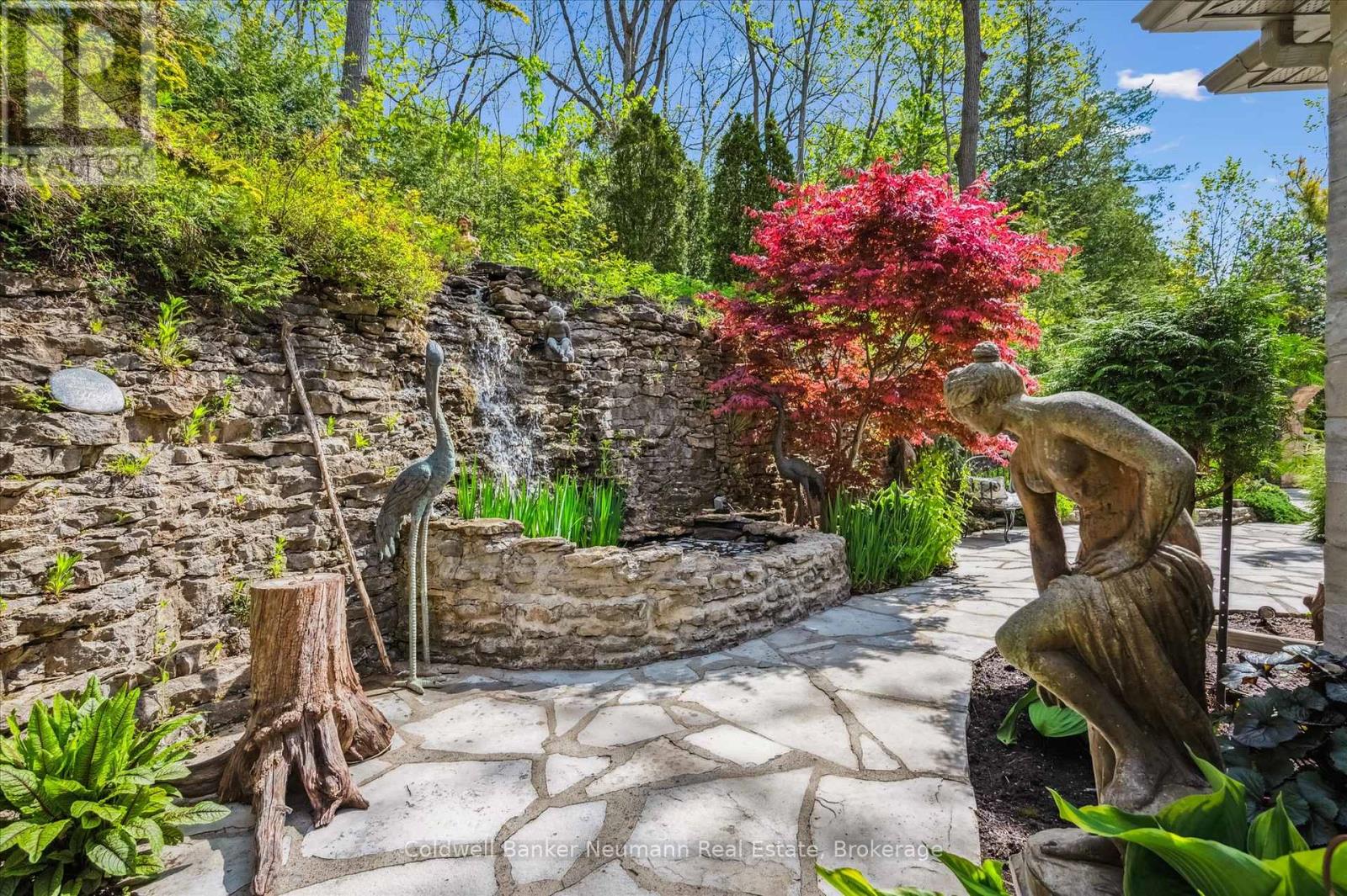 Set against the limestone escarpment on a private 1.1-acre lot at the end of a quiet road in Rockwood, this extraordinary retreat is surrounded by conservation land, offering complete privacy and a deep connection to nature. What began as untouched forest became an architectural masterpiece - the result of over three years of meticulous planning, permitting, and passion. Eighteen feet of rock were carved away to shape the foundation. A centuries-old log cabin from Ariss was carefully deconstructed and reassembled on-site, bridging history with modern innovation. Even the entrance was designed to impress - complete with its own handcrafted bridge leading to the home's grand arrival. Inside, the craftsmanship speaks for itself. Soaring cathedral ceilings, oversized windows, and panoramic forest views create an atmosphere that's both inspiring and serene. The main living area opens onto a European-style stone courtyard, while the primary suite feels like a private spa, complete with a luxurious ensuite and its own tranquil waterfall outlook. Upstairs, two additional bedrooms and a full bath offer comfort and flexibility for family or guests. The walk-out basement opens to a stunning flagstone patio complete with a hot tub - an ideal spot to unwind in total tranquility. Inside, enjoy the well-appointed entertainment level featuring a custom bar and private wine cellar, a pool table area perfect for friendly competition, a theatre room to catch the big game, a dedicated gym space for workouts, a full bathroom, and more. And then there's the historic 550 sq. ft. log cabin - beautifully restored and ready to serve as a guest house, creative studio, or personal sanctuary. Outfitted with a wet bar, gas fireplace, full bathroom, and ample storage, it's a destination all its own. A triple-car garage with lift provides ample room for vehicles, hobbies, and adventure gear, blending practicality with luxury. Schedule a private showing today to experience 198 Pasmore. (id:51158)
