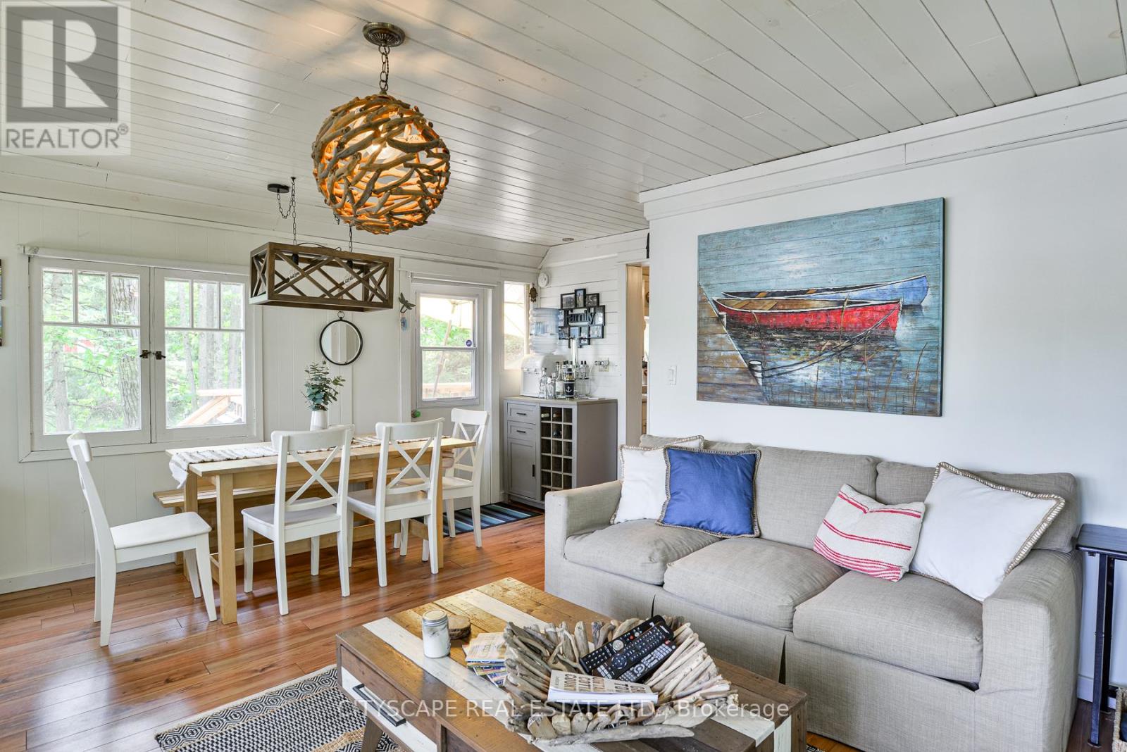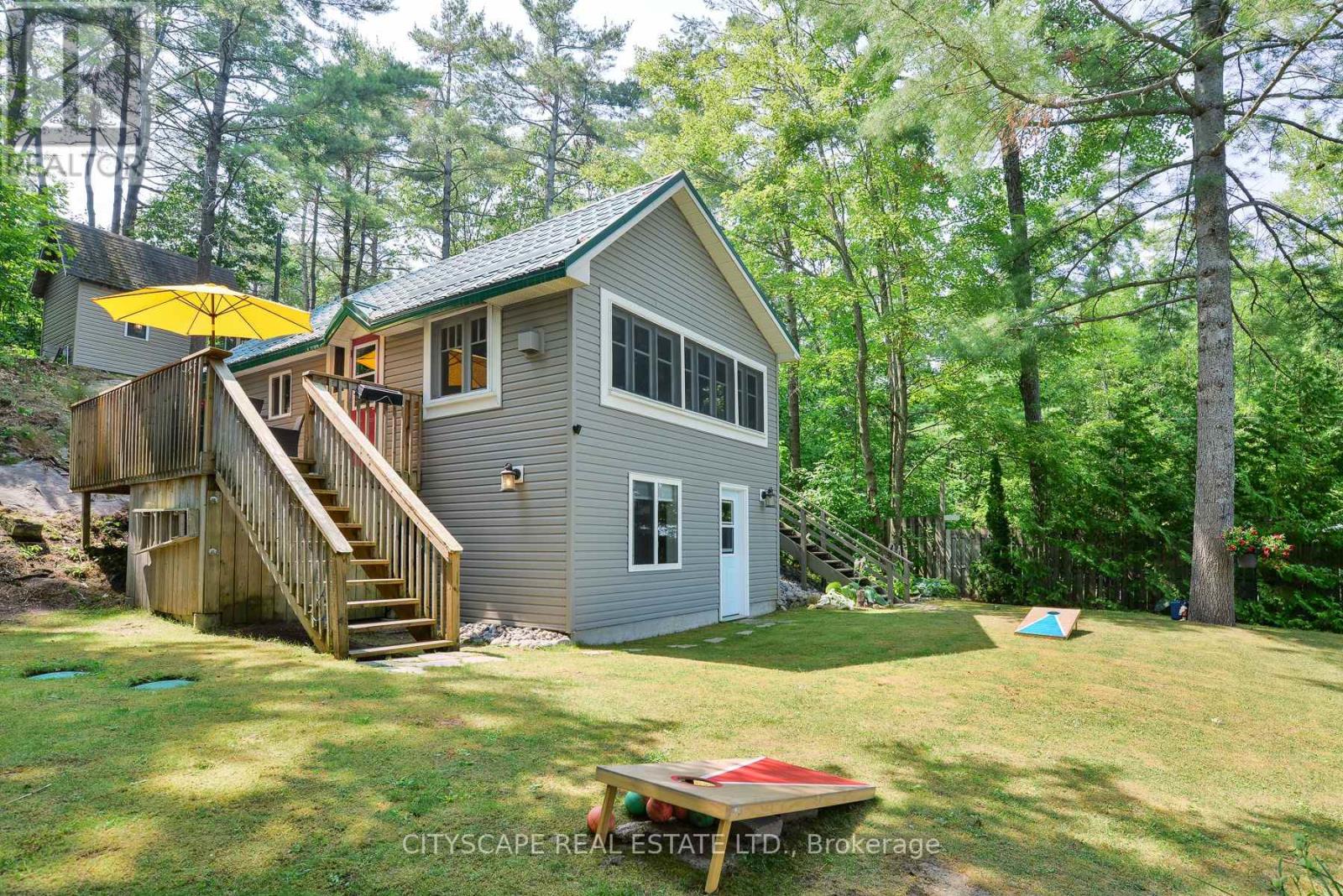 Exceptional opportunity to own a turnkey, year-round waterfront cottage in the heart of Muskokas cottage country, just minutes from the vibrant town of Gravenhurst. Situated on the highly sought-after Gull Lake, this meticulously maintained property blends modern comforts with classic charm perfect for discerning buyers seeking natural beauty, privacy, and recreational lifestyle. The sandy, shallow shoreline leads to deep water at the edge of a stationary dock, ideal for swimming and boating. The main cottage offers 3 bedrooms, a full bath with convenient laundry hook-up, and a separate walkout entrance to a spacious lower-level bedroom with room for multiple beds. A charming bunkie provides overflow guest space. Recent upgrades throughout, durable metal roof, flat low-maintenance lawn, and a shaded BBQ patio deck round out the features. Located on a municipally maintained road with year-round access and garbage/recycling service. Ideal for personal enjoyment, a four-season getaway, or as an investment property. (id:51158)