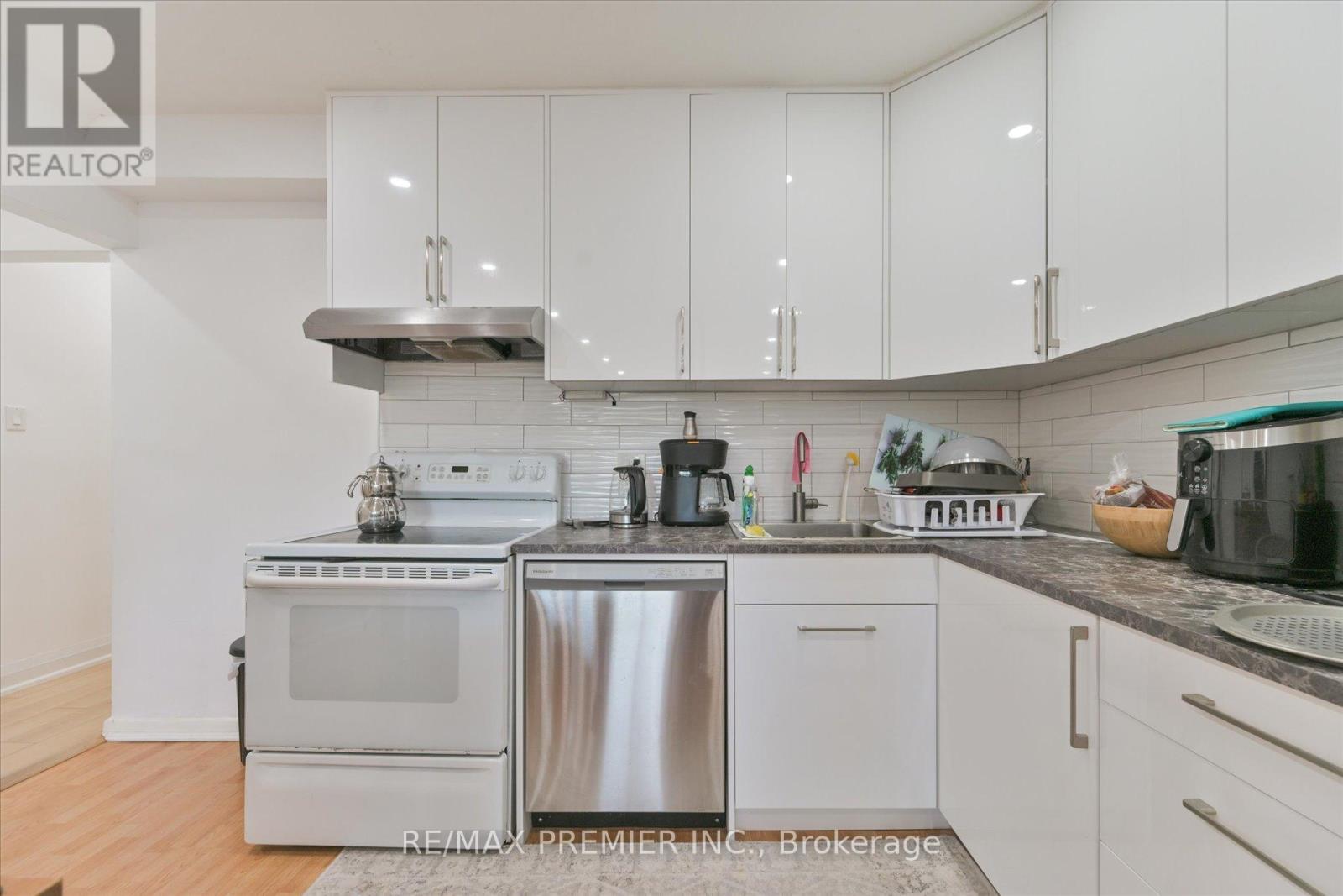 Beautifully Renovated 1-Bedroom Apartment in Prime North York Location. Welcome to this bright and spacious 1-bedroom, 1-bathroom apartment in a well-maintained low-rise building. The open-concept layout offers a large living room with pot lights and a walk-out to a private balcony, perfect for relaxing. The modern kitchen features stainless steel appliances and a cozy breakfast area. The generously sized bedroom includes ample closet spacewhile laminate floors run seamlessly throughout. Enjoy the convenience of ensuite laundry and thoughtful updates that bring both comfort and style. Situated in a quiet, family-friendly neighbourhood, you're just minutes to Hwy 401, Allen Road, Yorkdale Mall, York University parks, schools, and the TTC. No pets, no smoking. (id:51158)
