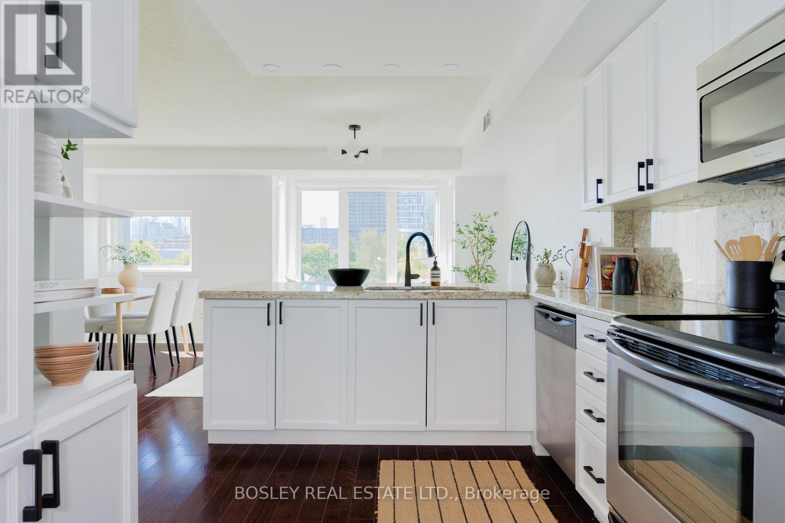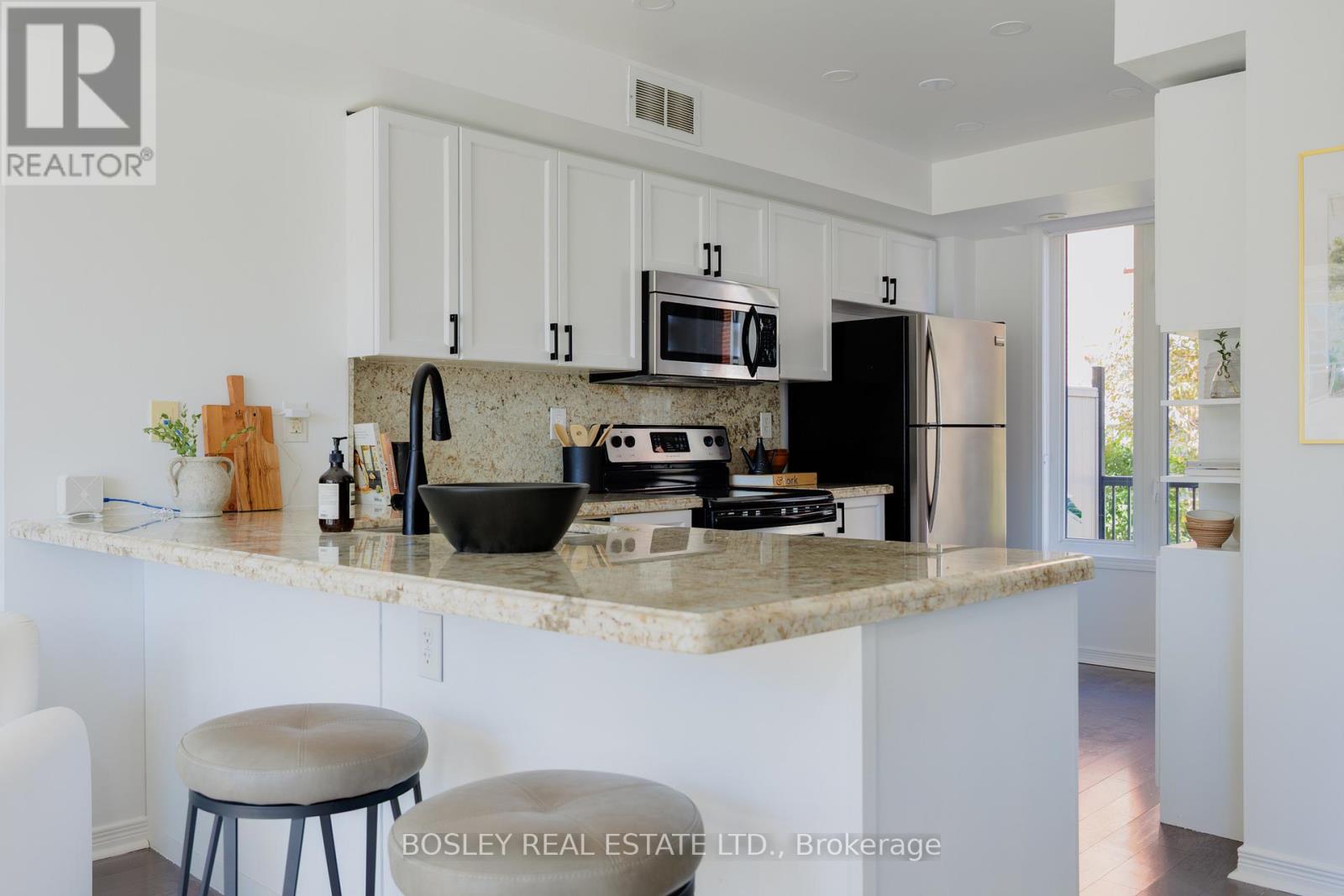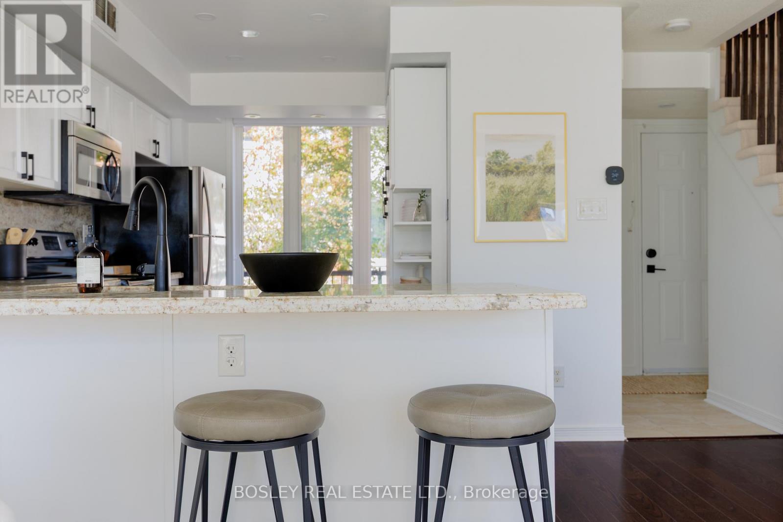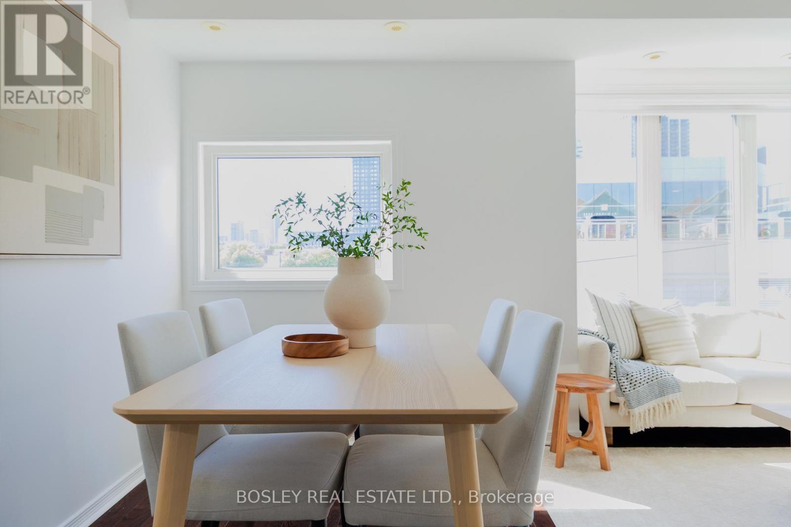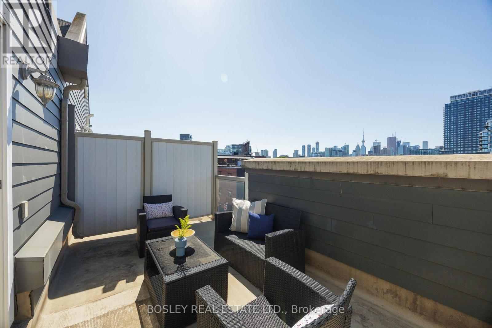 Rare Find in South Riverdale: Stunning 3-Storey Modern Townhome with City Views! Welcome to this exceptional 3-bedroom, 3-bathroom townhome nestled in a quiet, family-friendly enclave of South Riverdale. Offering an abundance of space and natural light, this 1118 square foot home features two private outdoor spaces an east-facing patio perfect for al fresco dining, and a west-facing rooftop deck with breathtaking sunset views and a panoramic view of the CN Tower and city skyline. The main floor boasts a spacious open-concept living and dining area, ideal for entertaining, with a convenient powder room. The chefs kitchen is equipped with stainless steel appliances, a breakfast bar, and plenty of storage. On the second floor, you'll find two generously sized bedrooms and an updated main bath. The third floor provides a versatile, flexible space perfect as a third bedroom, office, gym, or additional family room, with direct access to the rooftop oasis. This home is fully upgraded with custom kitchen cabinetry, granite countertops, motorized blinds in the living room, and a custom glass shower in the third-floor bath. Enjoy the convenience of a rented tankless water heater, Ecobee smart thermostat, and new carpet on the second and third floors. Included with the property are two underground parking space, and maintenance fees include water, building insurance, parking, common elements, and internet! Located just steps from the trendy shops and restaurants of Leslieville and Riverside, and only minutes from the Canary District, Distillery District, Beaches, and Danforth, you're at the center of it all! Easy access to the DVP and Gardiner Expressway, with public transit practically at your doorstep. This is the perfect home for those seeking a combination of urban living, comfort, and style in one of Toronto's most coveted neighborhoods. (id:51158)