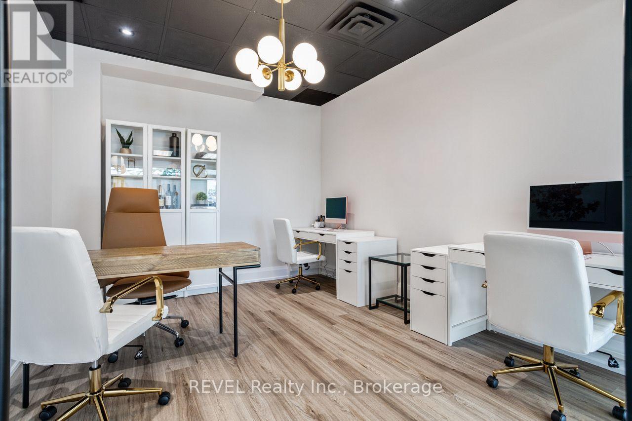 Prime exposure on Fairview Street! This fully renovated unit boasts modern upgrades, including new flooring, electrical, fresh paint, sleek cabinets, stylish glass walls, and a contemporary bathroom. Enjoy excellent signage visibility in a high-traffic area an outstanding investment opportunity in Burlington.The unit includes two reserved parking spots for added convenience. Monthly condo fees - $537.73 + HST ($607.63). Tenant willing to stay or vacate. (id:51158)
