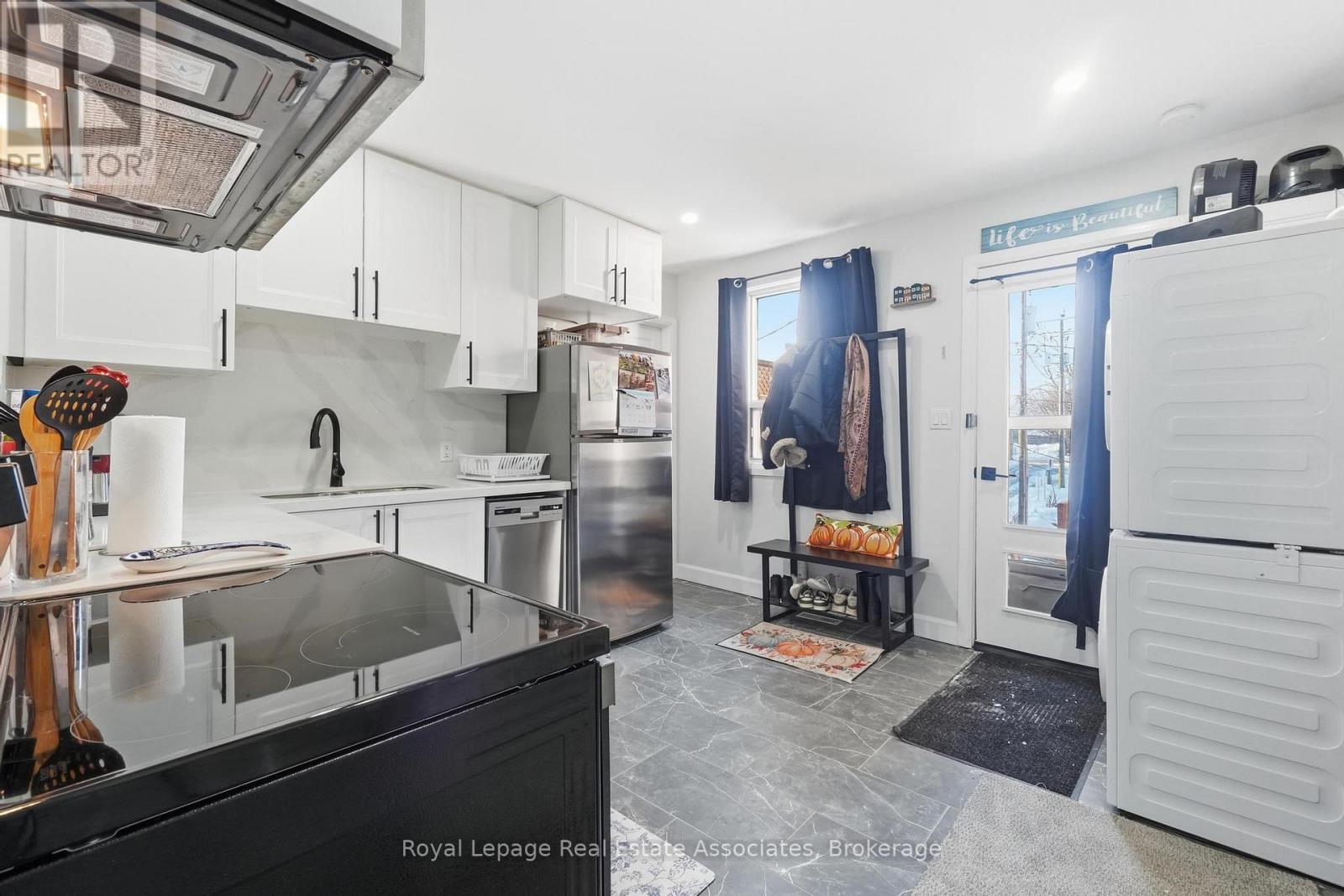 This tastefully renovated 1-bedroom apartment has been updated top to bottom and is ideally located in the vibrant Downtown Georgetown core. Enjoy unbeatable walkability to local shops, restaurants, parks, and lots of public parking nearby. The unit features a modern, updated kitchen with newer appliances, convenient in-unit laundry, and thoughtfully refreshed finishes throughout. Bright, well-proportioned living spaces make this home both comfortable and functional. One exclusive parking spot is included for the tenant's convenience. Perfect for a professional or couple seeking a stylish unit in a prime, central location. (id:51158)