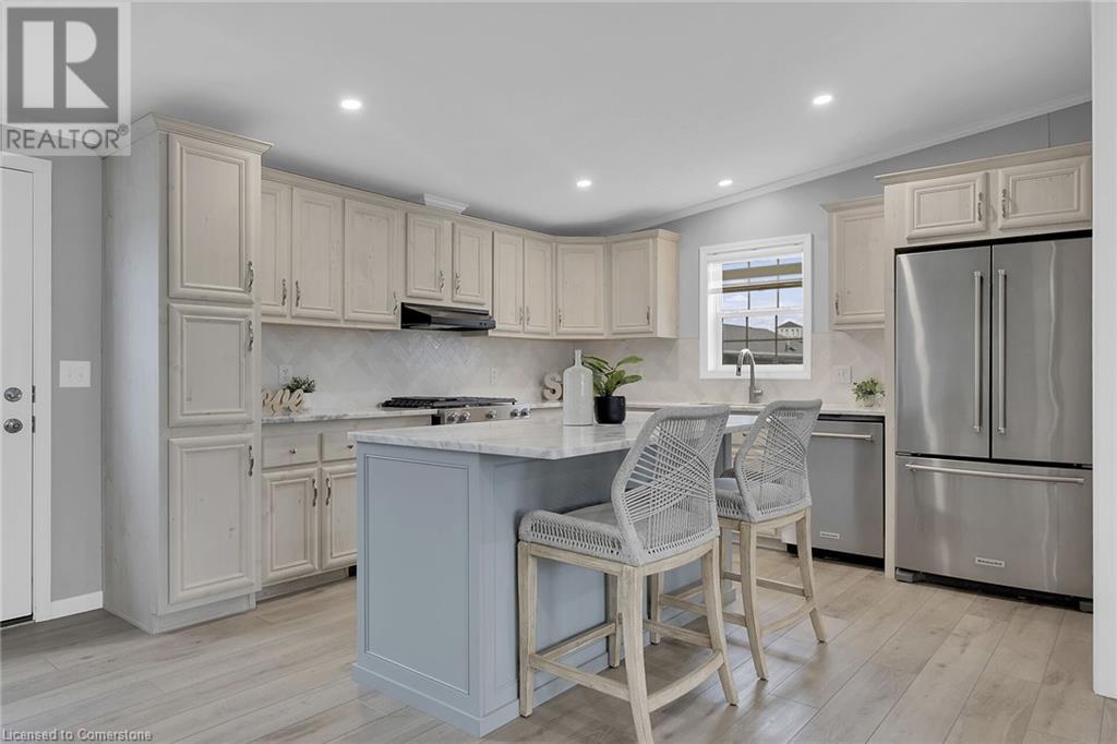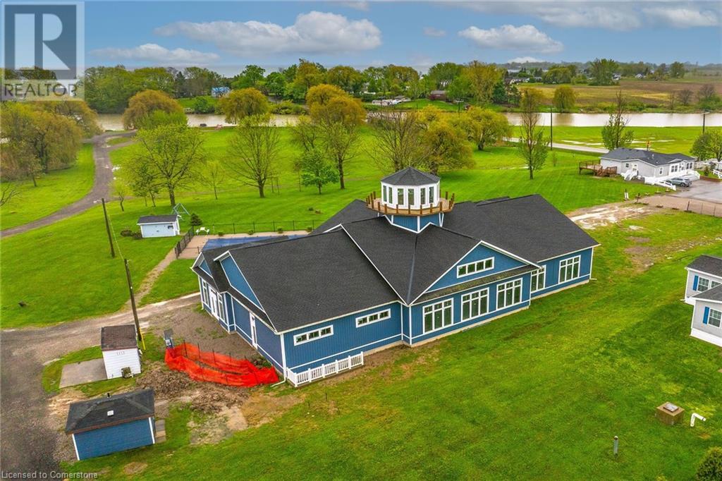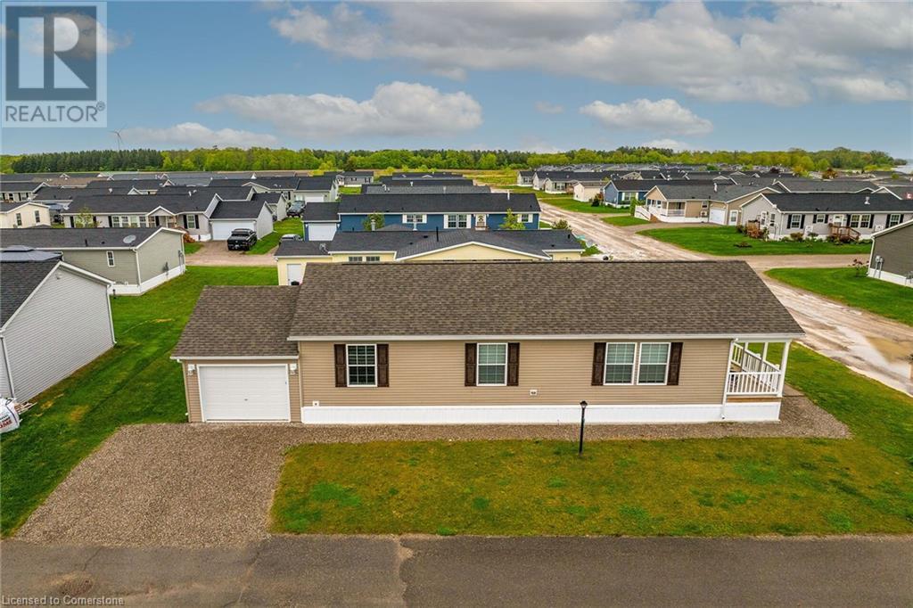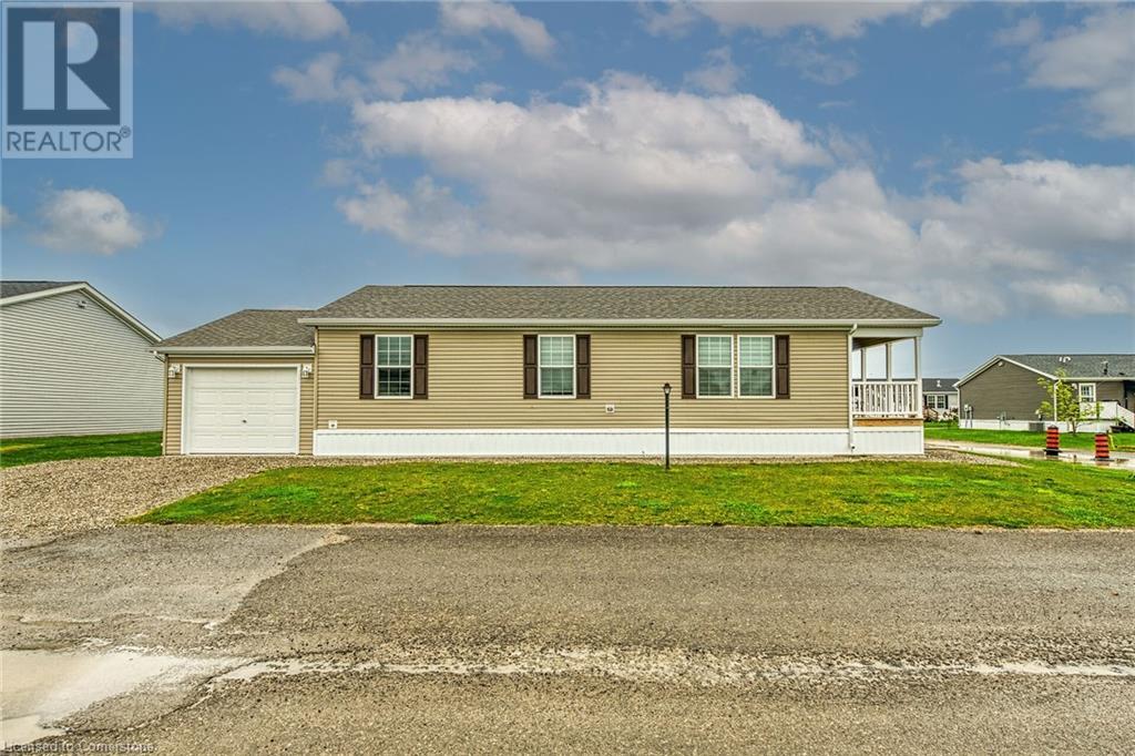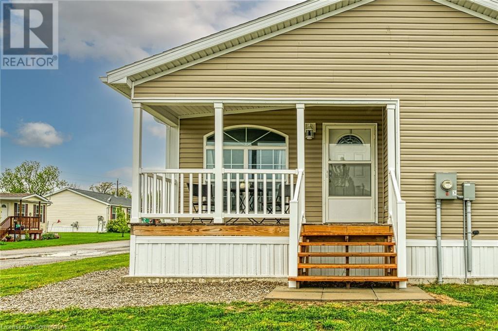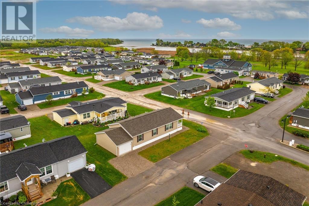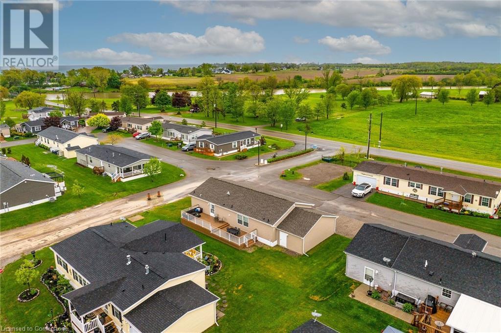 Envision a secure, relaxed Lake Erie life-style at Selkirk’s Shelter Cove Community (under new ownership - Sandusk Creek Properties Inc) bordering the banks of Erie’s Golden South Coast - 45-55 minute commute to Hamilton, Brantford & Hwy 403 - 20 mins east of Port Dover’s popular amenities that inc live theatre & renowned beach front- minutes to Selkirk. Definitely not your average home - this beautiful 2022 “Edgewater” model boasts 1,333sf of beautifully appointed living area highlighted w/premium luxury vinyl flooring thru-out, dramatic cathedral ceilings & stunning hi-end, hard wired electric fireplace complimented w/chic white shiplap feature mantel wall. Positioned proudly on manicured corner lot enjoying pastoral westerly views of fields & Sandusk Creek incs inviting covered front porch providing entry to gorgeous, nautical inspired, open concept living room/dining room segueing to The Kitchen making the most discerning Chef salivate - sporting stylish white cabinetry, contrast light blue island, quartzite countertops, detailed back-splash, full array of hi-end stainless steel appliances & adjacent dinette features sliding door walk-out to impressive, recently built 34x10 tiered composite deck system-2024 enhanced w/zero maintenance railings - completed w/convenient access to large main floor laundry room & furnace (w/AC) room. Continue down roomy corridor past modern 4pc bath, sizeable guest bedroom - onto elegant primary bedroom enjoying lavish personal 3pc en-suite & amazing sized walk-in closet complete with custom organizers. Private north-wing 3rd bedroom includes direct access to insulated, drywalled, pristine attached garage ftrs pull down latter to attic storage + insulated garage door w/auto-opener. Reasonable monthly land lease fees inc property tax, exterior maintenance, lawn cutting, snow removal, use of club house/pool & boat dockage (requires slip application for extra fee). IT'S HERE - Worry-Free, Affordable, One-Level Life-Style has ARRIVED! (id:51158)