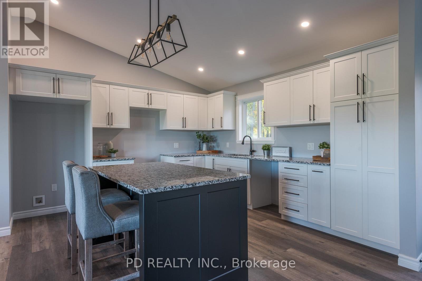 Stunning 3+2 Bed, 3 Bath Bungalow On A Beautiful Treed 1-Acre Lot! Built In 2023, This Modern Home Offers Open-Concept Living With Vaulted Ceilings, Pot Lights, And Walkout To An Expansive Deck That Is Perfect For Entertaining. Main Floor Features A Spacious Living/Dining Area, Kitchen With Granite Counters, Island With Seating, 3 Bedrooms Including Primary With 3-Piece Ensuite, And A 4-Piece Bath. Fully Finished Walkout Basement With Separate Entrance And Driveway Offers 2 Bedrooms, 4-Piece Bath With Laundry, Kitchen, And Cozy Living Room With Gas Fireplace Ideal For Extended Family Or Guests. Fully Insulated And Finished Garage With Direct Entry Into The Home, Plus Walkout Access To The Large Deck. Extras Include Natural Gas Heat, Central Air, On-Demand Hot Water, Soffit Lighting, Water Filtration System, And Large Windows In The Lower Level For Abundant Natural Light. Located Just Minutes To Hwy 407 And Approximately 1 Hour To The GTA. A Perfect Balance Of Luxury, Space, And Functionality! (id:51158)
