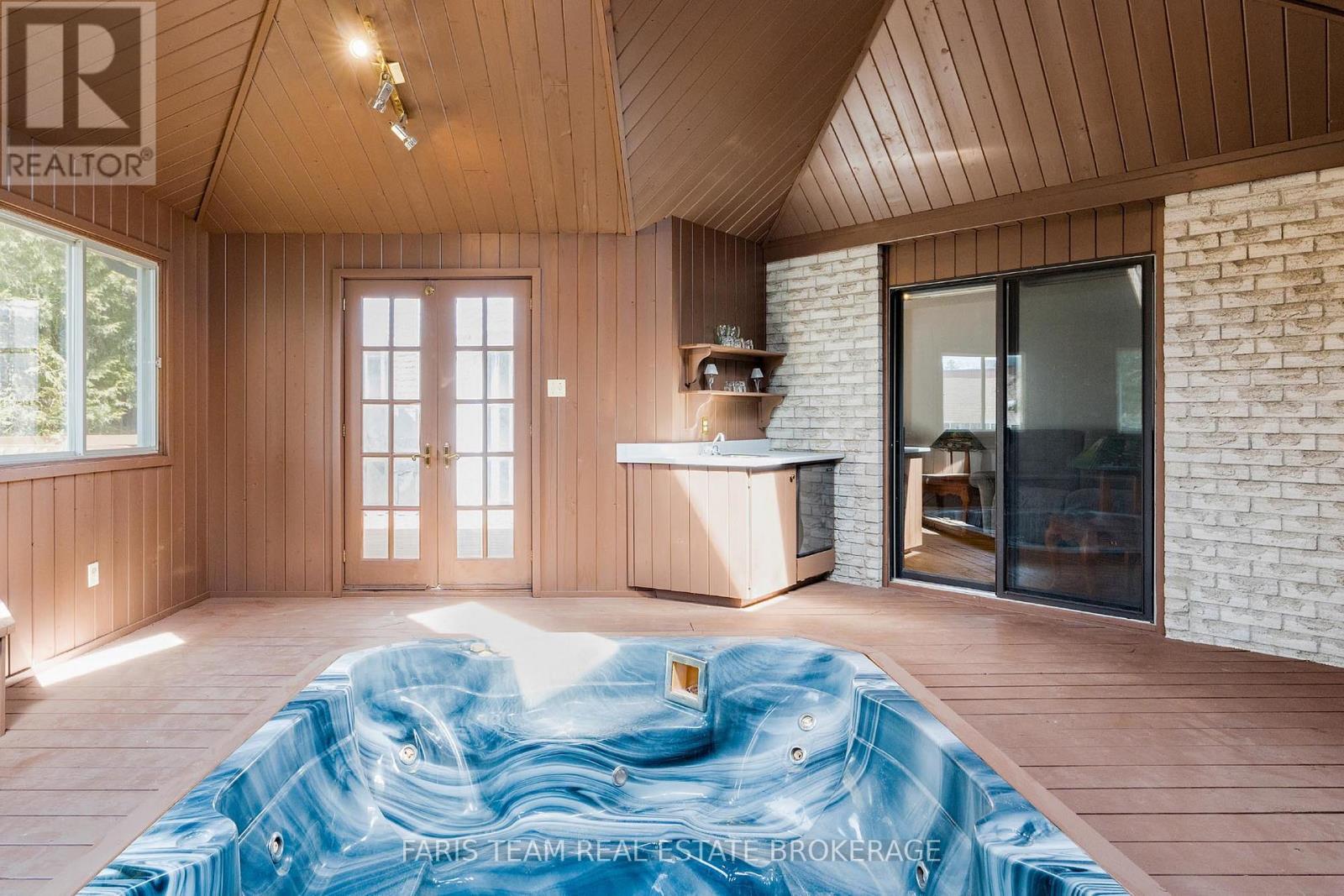 Top 5 Reasons You Will Love This Home: 1) Delightful 2-storey home boasting a brick and vinyl siding exterior with a covered front porch that sets the tone for warm welcomes and quiet morning coffees 2) Inside, enjoy a spacious kitchen, dedicated dining area, and a large living room that flows seamlessly into the hot tub room, complemented by a convenient front office and bathroom ideal for remote work or hosting guests 3) Upper level presents four generously sized bedrooms, including a private primary suite with its own walk-in closet and ensuite, creating a perfect retreat for rest and relaxation 4) Step into the fully fenced backyard, complete with a large deck for al fresco dining, direct access to the sauna, and ample greenspace surrounded by mature trees 5) Perfectly located in a friendly community with easy access to schools, parks, shopping, dining, and major highways, while vibrant local events like the Steam Show, Music Festival, and WingDing bring small-town charm to everyday living. 2,447 square feet plus an unfinished basement. Age36. (id:51158)