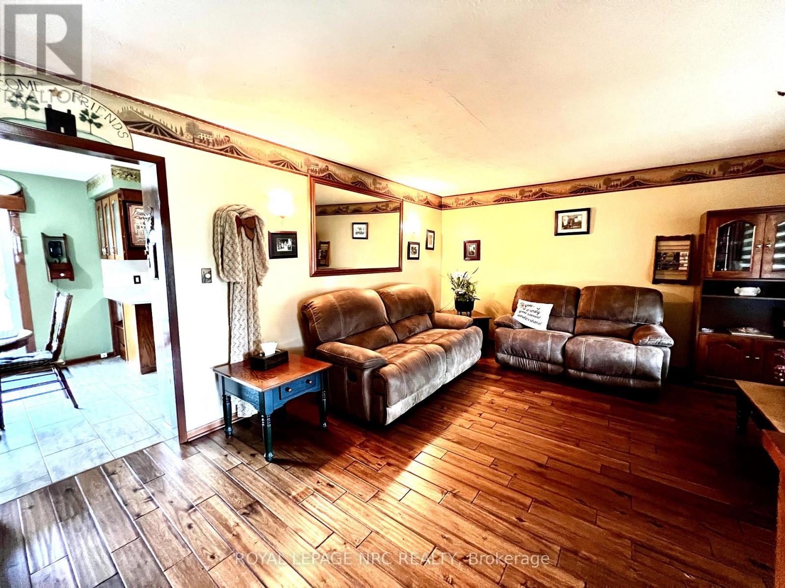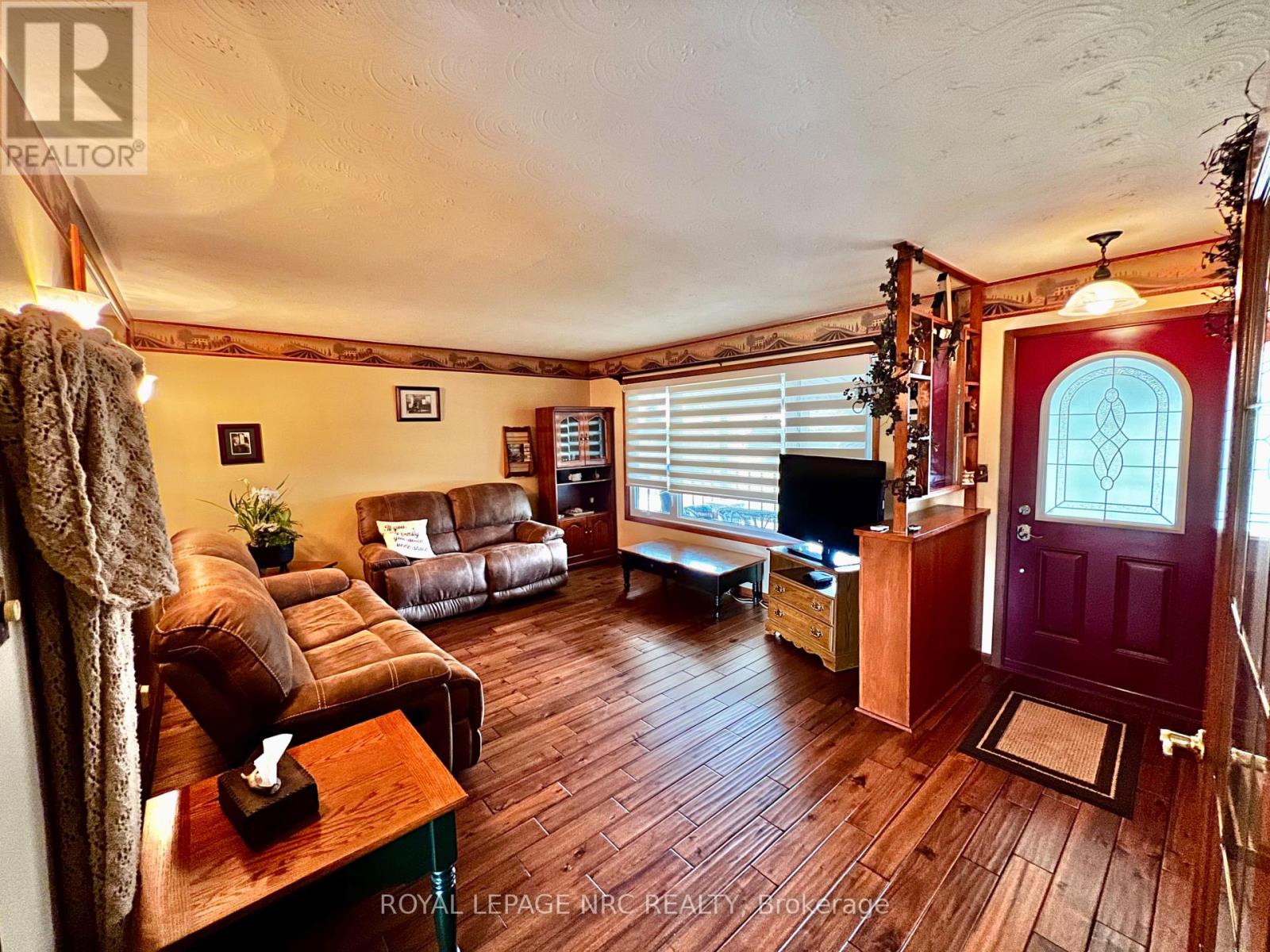 Welcome to 2 Pioneer Village Crescent in Thorold South. This 3 bedroom 2 bath 1039 sq foot bungalow has been loved & cared for by the same family since 1980 & is ready for a new family to take over. A great opportunity for a young family wanting to plant roots in a great family neighbourhood with walking distance to public primary school or those downsizing from a larger home or rental/income potential - options galore! Located on a quiet crescent, yet close to hwy 58 /Davis Road access. This home is set on a 60 x 159 foot lot with plenty of cedars in the rear yard for privacy. The covered front deck is nice front entrance and great spot to enjoy the outdoors. The18 X 39 detached heated garage/workshop is great for all year enjoyment, work or play! Plenty of parking in the long driveway. The side entrance leads to the lower level & up to the eat in kitchen. Enjoy south facing patio doors in the dining area that overlook the rear deck and park like yard. The front living room has plenty of natural light from the large bay window & front entrance complete with a remote control blind for style & convenience. Three bedrooms & a 4 piece bath with an air jet bath tub complete the main level. french door and newer laminate flooring in the living room and hallway, ceramic tile in the kitchen & bath, & carpet in the bedrooms. The lower level is fairly open for many possibilities. The laundry is at the bottom of the stairs (could be returned to utility room)then a wide open 27 x 11 family room, as well as a large workshop/furnace/utility room, a 3 piece bathroom & another possible bedroom or office/play room. Lower level can be converted to another unit with permits & modification. ( zoned R1C zoning (single detached/duplex) Windows replaced in 2024, furnace 2023 roof and a/c approx 12 years young. Located close to highway access, Ontario Public School, churches, bus route. Make arrangements to view for yourself - it could be what just you've been waiting for! (id:51158)