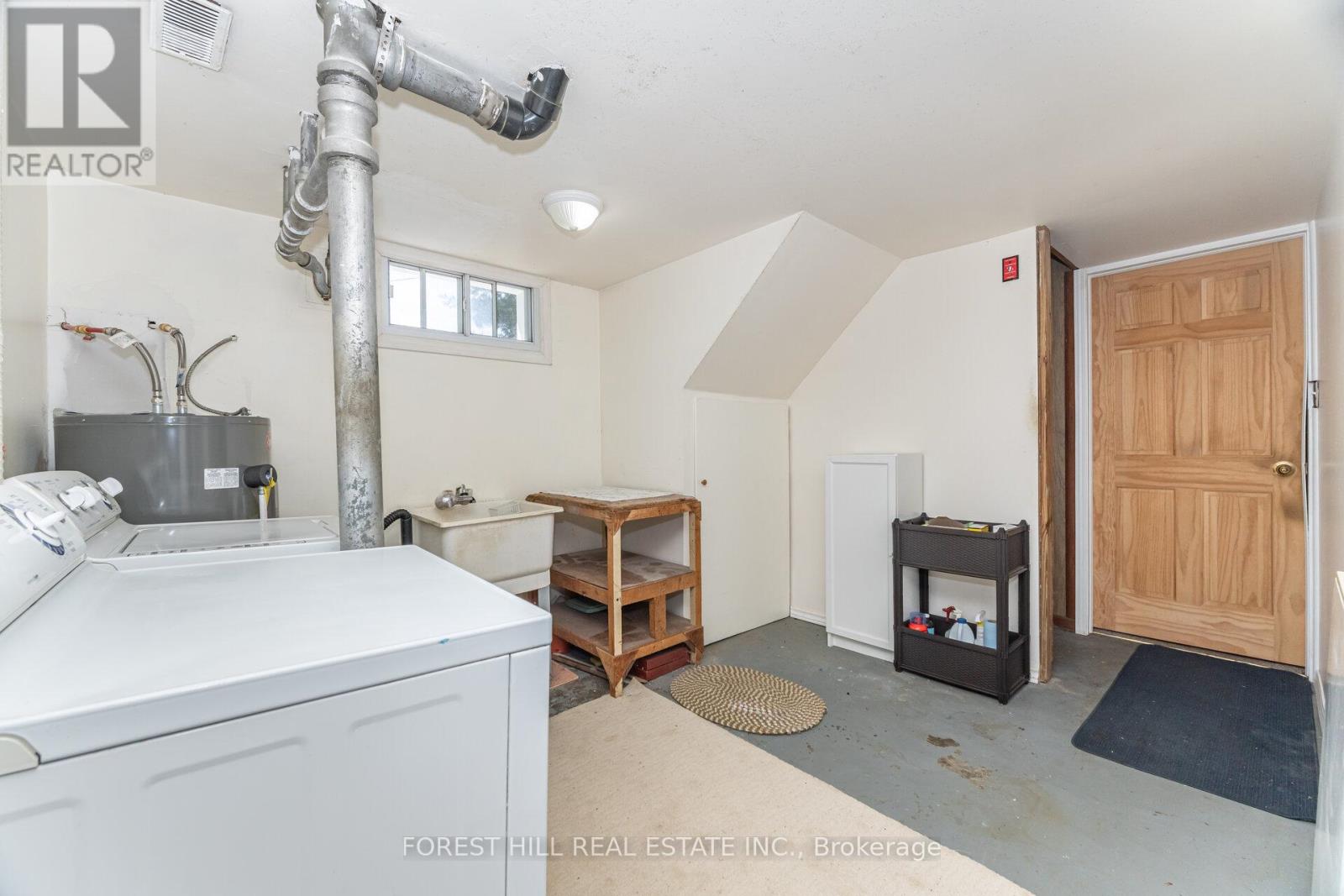 Tucked away at the end of a quiet cul-de-sac and backing directly onto the peaceful greenery of Topham Park, this delightful 1.5-storey home offers the ideal blend of privacy, space, and convenience right in the heart of East York. Set on a generous 5,349 sq. ft. pie-shaped lot, the property enjoys rare park-side access and a deep connection to nature, all while being moments from city amenities. Inside, the home features a spacious and sun-filled living and dining area, perfect for both entertaining and everyday living. With three well-sized bedrooms, all with hardwood floors and abundant natural light, there is plenty of room for growing families, guests, or work-from-home needs. The home includes two full bathrooms and a versatile lower-level great room ideal as a home theatre, playroom, or additional living space. A large detached shed offers excellent storage or potential workshop use, while a mutual driveway leads to a private two-car parking area for added convenience. Move in as-is, renovate, or build your dream home the choice is yours in this highly sought-after neighbourhood. Steps from Topham Parks playgrounds, tennis courts, and sports fields, and just minutes to Taylor Creek Park trails, local shops, cafes, top-rated schools, and transit. Quick access to the DVP and downtown makes commuting a breeze. This is a rare opportunity to own a home where nature meets city living welcome to the best of East York. (id:51158)