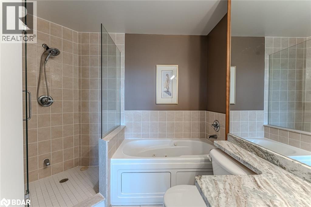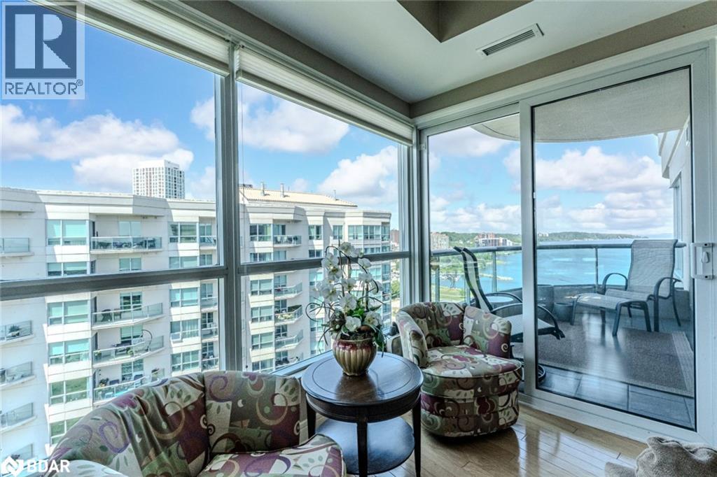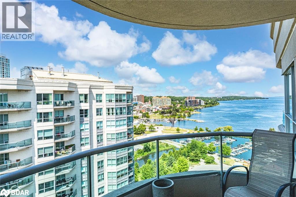SUNLIT CORNER UNIT PENTHOUSE WITH PANORAMIC KEMPENFELT BAY VIEWS & ACCESS TO IT ALL! Welcome to elevated waterfront living in the heart of Barrie’s vibrant Lakeshore neighbourhood. This spacious top-floor corner unit in the sought-after Grand Harbour building boasts breathtaking panoramic views of Kempenfelt Bay, the city skyline, and the Barrie Marina just across the street. Step outside and enjoy being just moments from Centennial Beach, scenic boardwalks, parks, and the bustling downtown core filled with restaurants, patios, shops, and entertainment. Inside, the bright open-concept kitchen, dining, and living area impresses with soaring 9-foot ceilings, hardwood floors, and a cozy natural gas fireplace, with a sliding glass walkout to a private balcony perfect for morning coffee or evening sunsets overlooking the water. The layout features two generously sized bedrooms, including a serene primary suite with a walk-in closet and a spa-like 4-piece ensuite complete with a soaker tub and glass-enclosed shower. A second full bathroom, in-suite laundry, and included parking and storage offer everyday ease, while premium building amenities - an indoor pool, fitness facilities, a games room, and guest suites - elevate the lifestyle and complete this exceptional offering. Commuters will love the quick access to Highway 400, the Allandale GO Station, and public transit. Don’t miss this rare opportunity to live just steps from the shoreline in one of Barrie’s most sought-after waterfront destinations - where every day feels like a getaway! (id:51158)