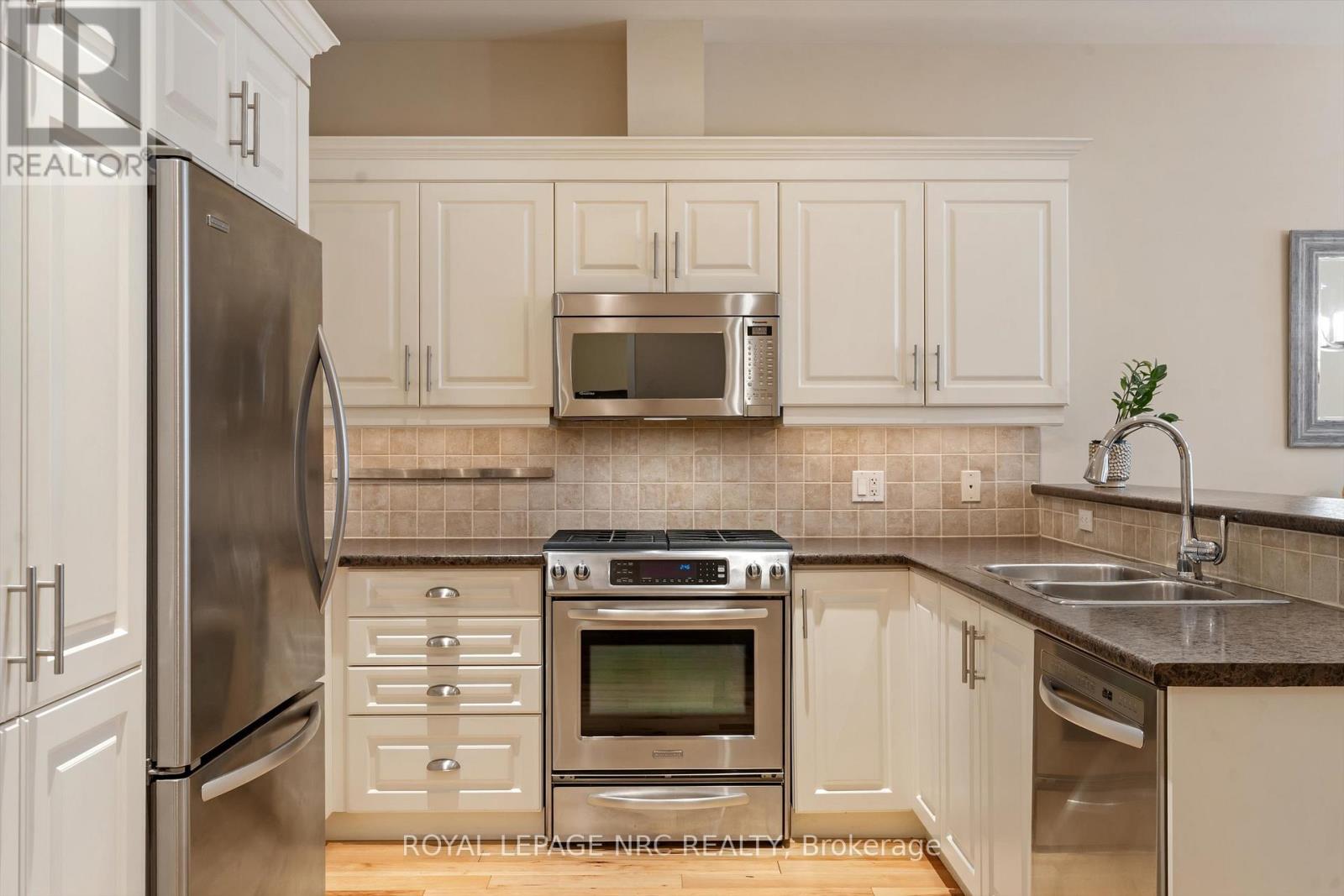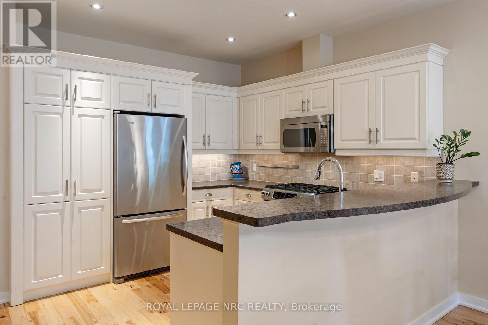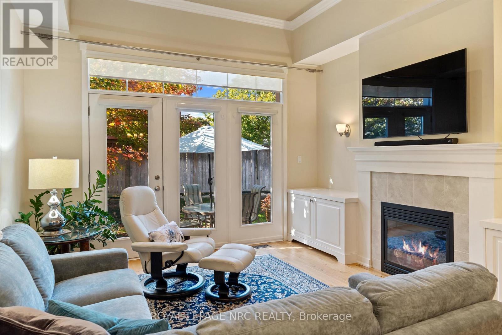 Elegant Adult Living in the Heart of Wine Country! Experience comfort and sophistication in The Residences of Jordan Village, a peaceful, established community built by Phelps Homes in 2010. This meticulously cared for 2+1 bedroom bungalow townhome offers the perfect blend of convenience and low-maintenance living in one of Niagara's most picturesque settings. Featuring rich hickory hardwood floors, the open-concept main level includes a modern kitchen with stainless steel appliances, breakfast bar, and a bright living area with gas fireplace, tray ceiling, and walkout to a private patio. The primary suite includes a walk-in closet and 4-piece ensuite, while a second bedroom, 3-piece bath, and main-floor laundry with garage access add convenience. The lower level extends your living space with a rec room, third bedroom, full bath, and ample storage. With low condo fees of just $230/month covering lawn care, in-ground sprinklers, and snow removal, you can enjoy a truly maintenance-free lifestyle. Located steps from the shops and restaurants of Jordan Village and just minutes to the QEW and Niagara's renowned wineries, this home combines luxury, comfort, and an unbeatable location. (id:51158)