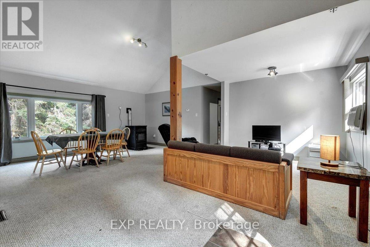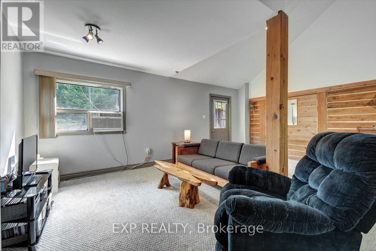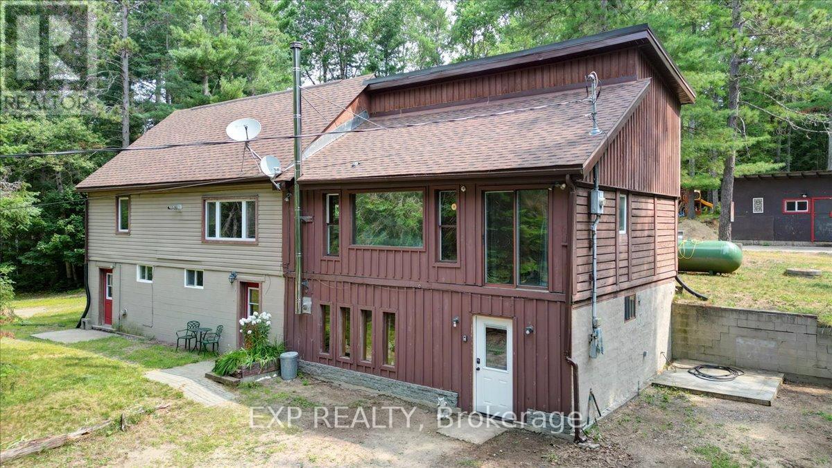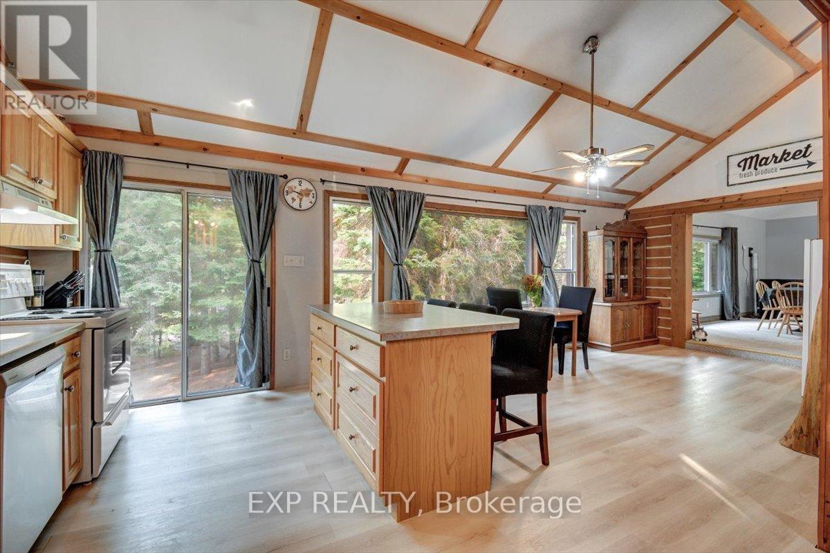 This welcoming country retreat offers the ideal blend of rustic charm and modern flexibility. Set on a generous double lot surrounded by nature, the home is perfect for families seeking extra space, privacy, and potential for income or extended family living.Upstairs boasts an open-concept kitchen with custom ash cabinetry, soaring ceilings in the living room, and distinctive log-and-frame construction that adds warmth and character. Two comfortable bedrooms and a spacious loft perfect for a home office or extra sleeping quarters round out the upper level, along with a full 4-piece bath. Downstairs, a finished walkout level features its own private entrances, two bedrooms, a kitchen, living area, and a 3-piece bath. A wired and insulated workshop sits in the backyard, ready for your tools, hobbies, or future projects.Located near scenic trails, lakes, rivers, and provincial parks, outdoor enthusiasts will love the endless options for hiking, paddling, snowmobiling, atving and exploring. Just 20 minutes from Bancroft, this property combines peaceful living with easy access to town amenities.Originally built in 1993 with a thoughtful expansion in 2007, this is a rare opportunity in a beautiful recreational area. (id:51158)