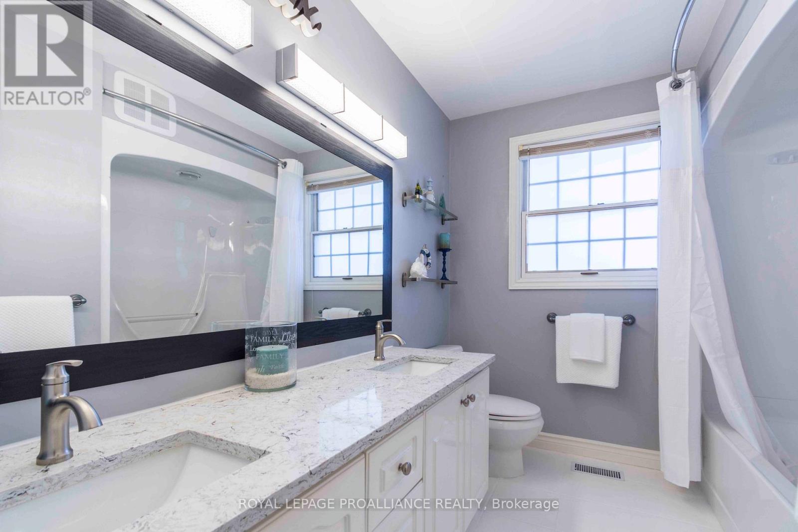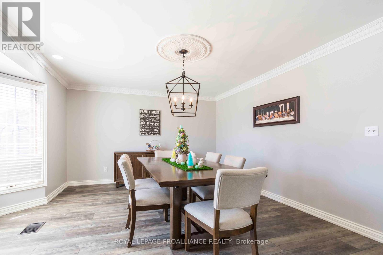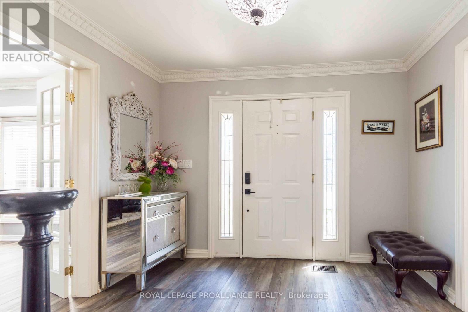 Welcome to the perfect home for a growing or large family! This beautifully maintained 4-bedroom, 4-bathroom residence offers an ideal blend of space, comfort, and functionality. Step into a grand foyer that leads to a spacious main floor featuring a bright living room with a gas fireplace, a sun-soaked sunroom, a formal dining area, and a large kitchen with a breakfast nook overlooking the cozy family room also complete with a gas fireplace. The primary suite is a true retreat, offering a walk-in closet and a luxurious 5-piece ensuite with a soaker tub. The finished basement adds even more living space, with a recreation room, family room with fireplace, home gym or craft room, and a 2-piece bathroom perfect for entertaining or relaxing with the family. Enjoy summers in your private backyard oasis, complete with a kidney-shaped in-ground pool and an in-ground sprinkler system that keeps the fenced, pie-shaped lot green and vibrant. With its private entrance, dedicated sink, and full bathroom, the space is perfectly suited for a home-based business such as a dog grooming service, nail spa, or even a personal studio. Additional highlights include a newer furnace and central air conditioning (June 2020), newer gas water heater (2020),updated electrical panel (2020), newer pool heater (2021),liner, (2022)pump, (2022) installed high end luxury vinyl flooring with lifetime warranty, (2024). Kitchen completely remodelled with granite counter top, two built in wall ovens and 6 burner gas cook top (2021),epoxy garage floor and garage doors (2024), (2025) A new HRV, heat recovery ventilation system was installed. Too many to list, see feature sheet for more details. A convenient location less than 1 km from elementary and high schools, Mary Ann Sills Park & Track, and just 15 minutes to CFB Trenton. Don't delay see this one today!! (id:51158)