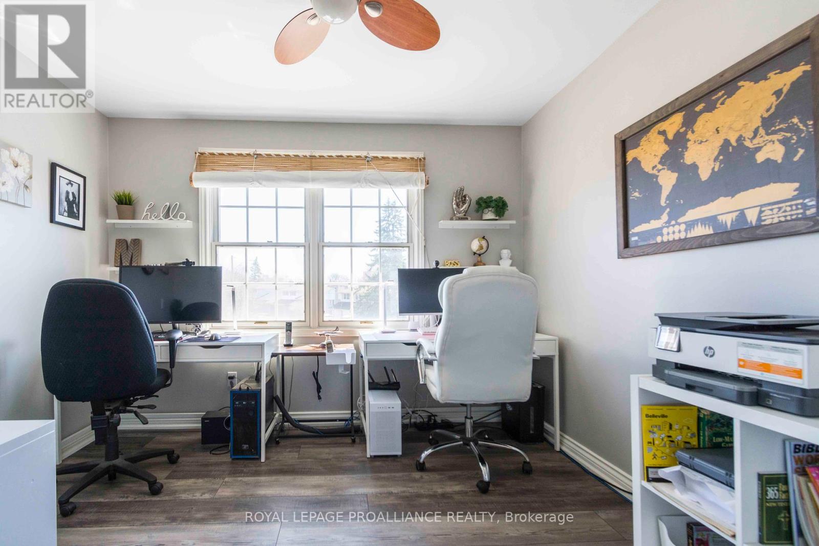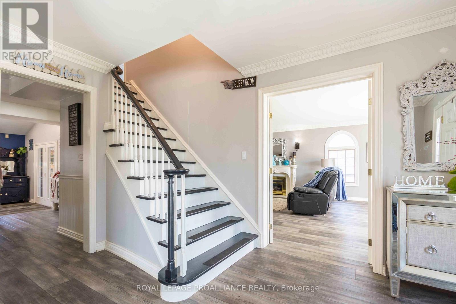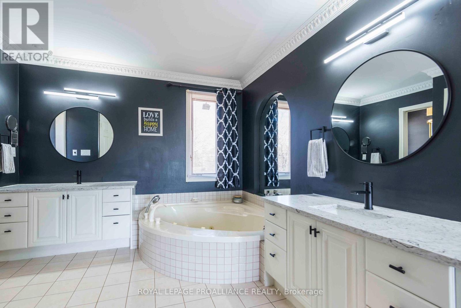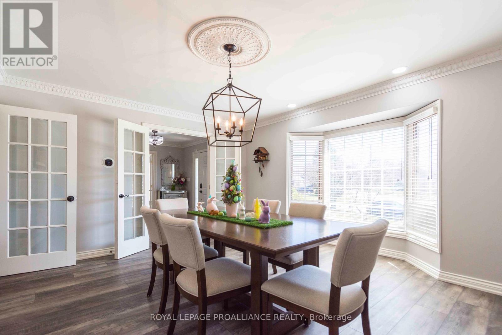 Welcome to the perfect home for a growing or large family! This beautifully maintained 4-bedroom, 4-bathroom residence offers an ideal blend of space, comfort, and functionality. Step into a grand foyer that leads to a spacious main floor featuring a bright living room with a gas fireplace, a sun-soaked sunroom, a formal dining area, and a large kitchen with a breakfast nook overlooking the cozy family room also complete with a gas fireplace. The primary suite is a true retreat, offering a walk-in closet and a luxurious 5-piece ensuite with a soaker tub. The finished basement adds even more living space, with a recreation room, family room with fireplace, home gym or craft room, and a 2-piece bathroom perfect for entertaining or relaxing with the family. Enjoy summers in your private backyard oasis, complete with a kidney-shaped in-ground pool and an in-ground sprinkler system that keeps the fenced, pie-shaped lot green and vibrant. With its private entrance, dedicated sink, and full bathroom, the space is perfectly suited for a home-based business such as a dog grooming service, nail spa, or even a personal studio. Additional highlights include a newer furnace and central air conditioning (June 2020), newer gas water heater (2020),updated electrical panel (2020), newer pool heater (2021),liner, (2022)pump, (2022) installed high end luxury vinyl flooring with lifetime warranty, (2024). Kitchen completely remodelled with granite counter top, two built in wall ovens and 6 burner gas cook top (2021),epoxy garage floor and garage doors (2024), (2025) A new HRV, heat recovery ventilation system was installed. Too many to list, see feature sheet for more details. A convenient location less than 1 km from elementary and high schools, Mary Ann Sills Park & Track, and just 15 minutes to CFB Trenton. Don't delay see this one today!! (id:51158)