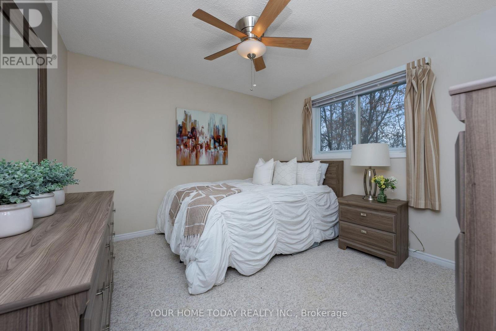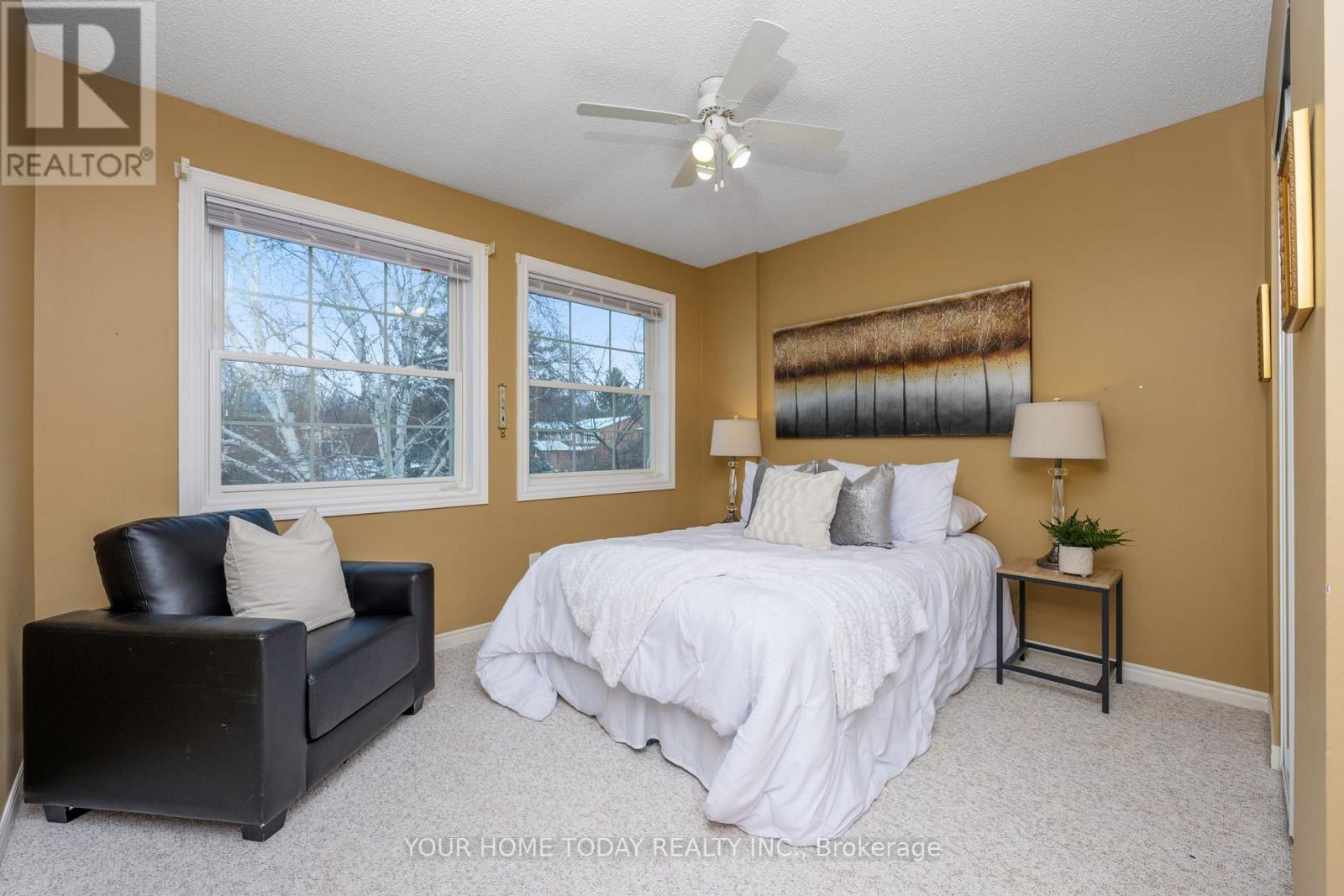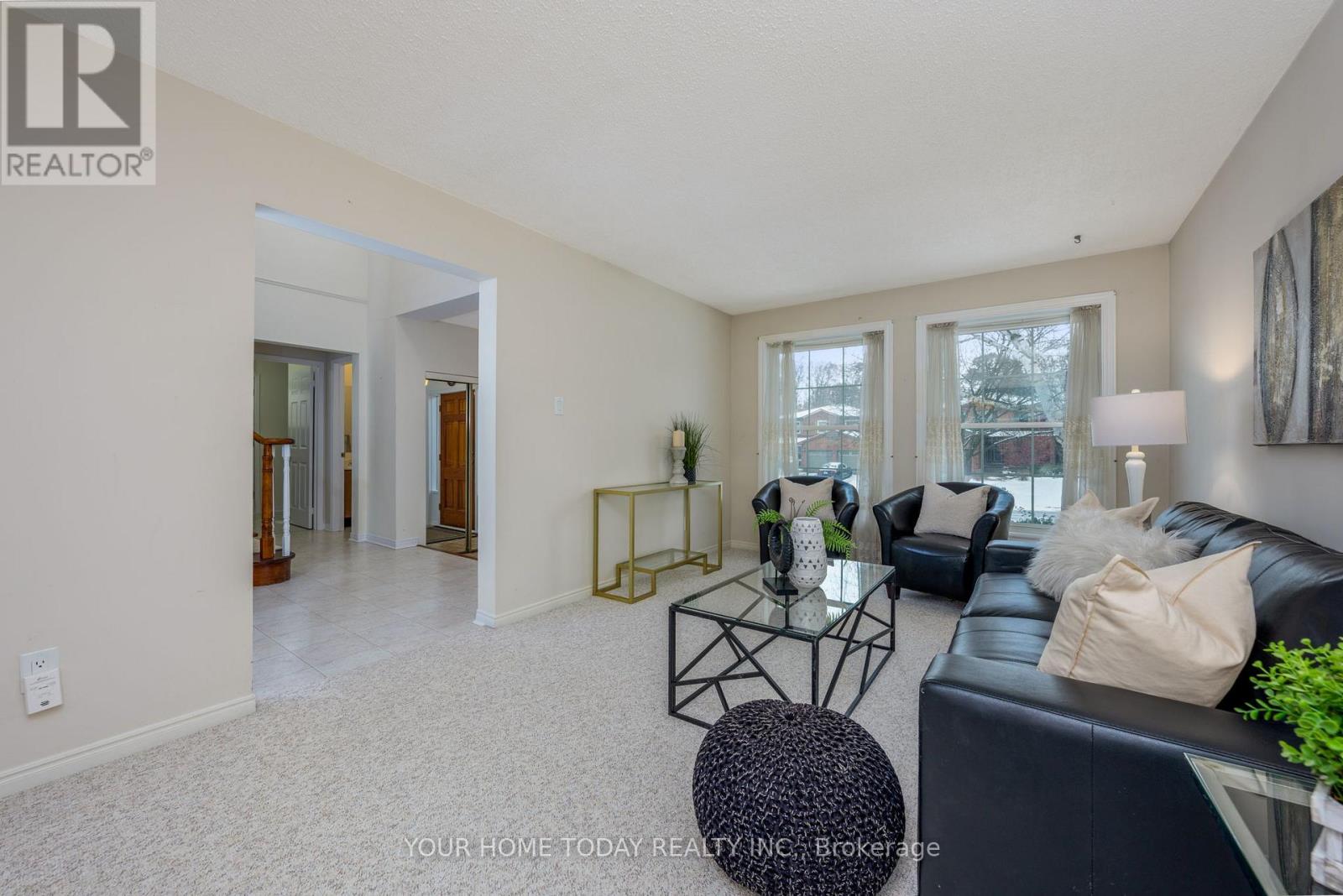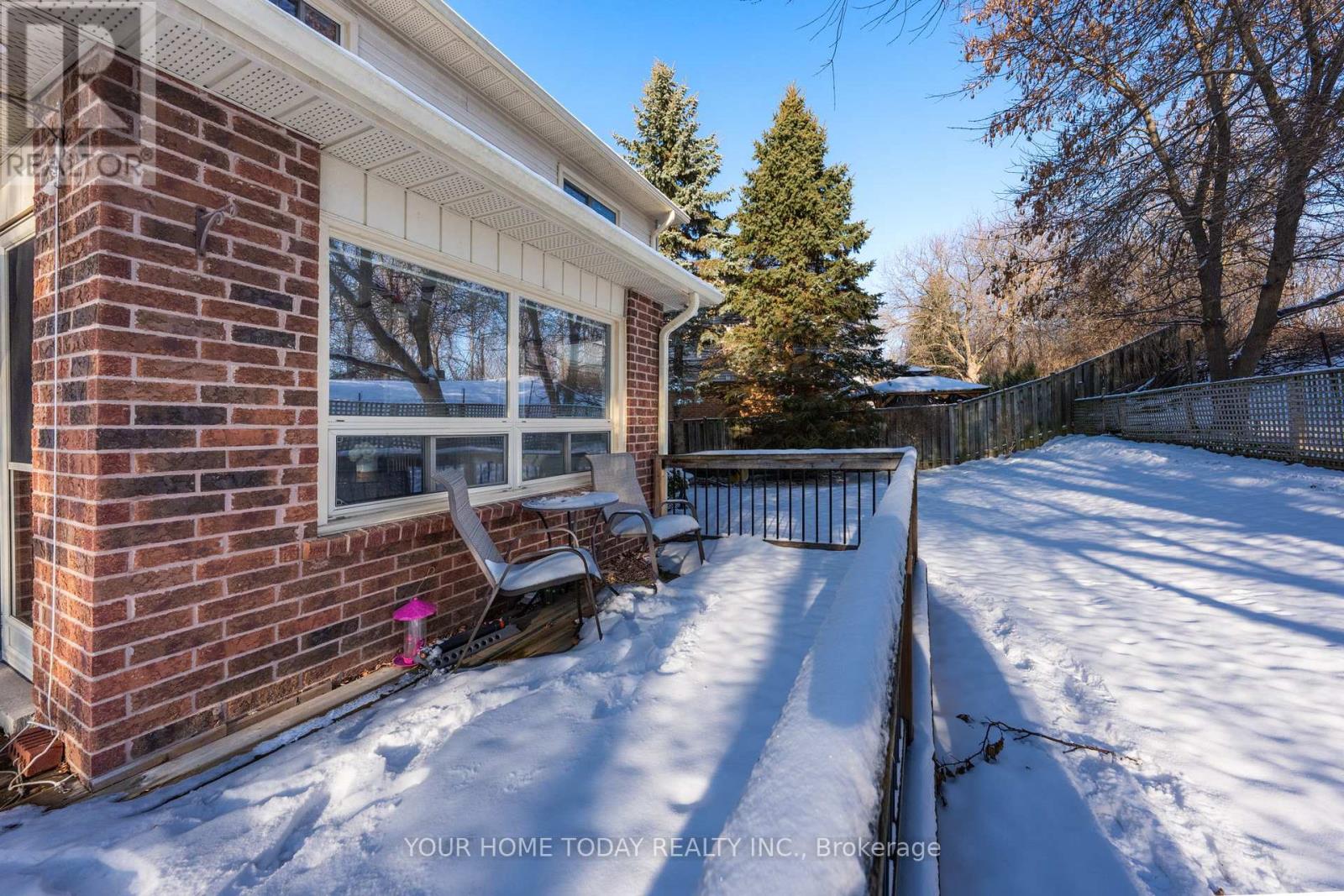 A concrete walkway and lovely landscaping welcome you to this well designed 3-bedroom, 2.5-bathroom home on a quiet, family-friendly street. Step inside the sun-filled foyer and you'll immediately feel at home in the spacious main-level rooms. The combined living and dining areas strike the perfect balance offering an inviting retreat for quiet evenings and a bright open space for laughter-filled gatherings with friends and family. The kitchen with its neutral cabinetry and generous windows overlooking the backyard is the heart of the home and is ideal for casual meals, morning coffee or keeping an eye on kids at play in the large, fenced yard. A French door walkout from the breakfast area to the deck is perfect for barbecuing. The cozy family room, complete with a fireplace and another walkout to the deck is made for movie nights or simply curling up with a good book. Everyday convenience is enhanced with main-level laundry and direct access to the garage. An eye-catching wood staircase leads to the upper level where you'll find 3 spacious bedrooms, the primary with a walk-in closet and 4-piece ensuite. The partially finished basement adds flexibility with a roomy rec room, an additional (almost finished) area and plenty of storage/utility space. Outside, a large, fully fenced pie-shaped lot with large shed, mature trees and no homes behind offers endless space for play, gardening, or peaceful moments in the fresh air. All of this in a truly wonderful location-close to schools, GO, downtown and more. (id:51158)