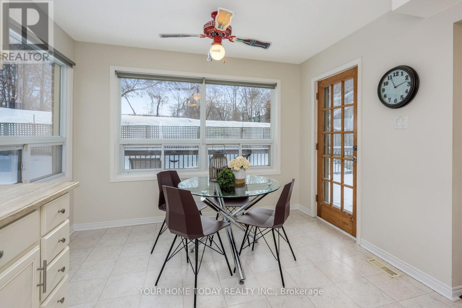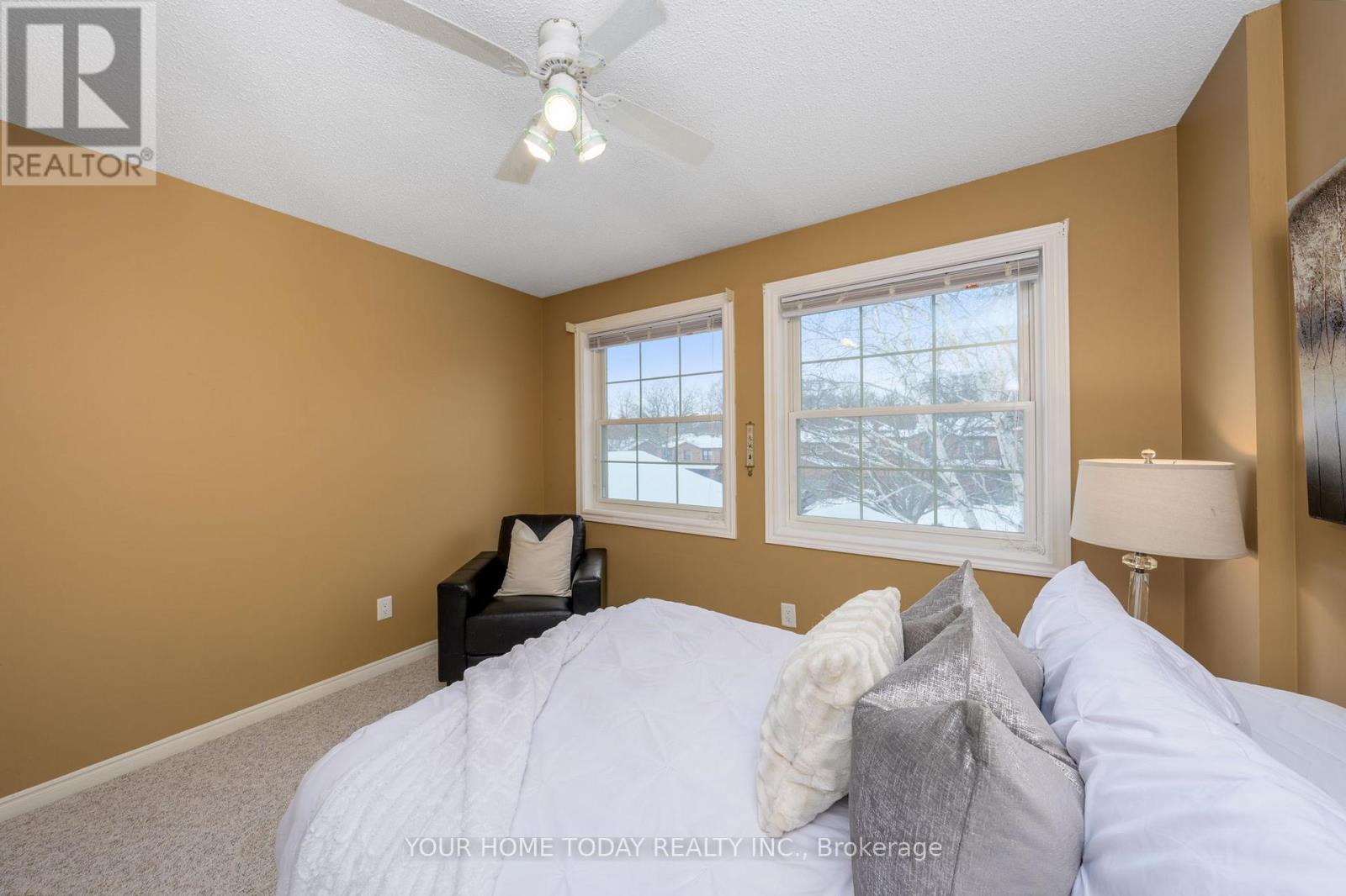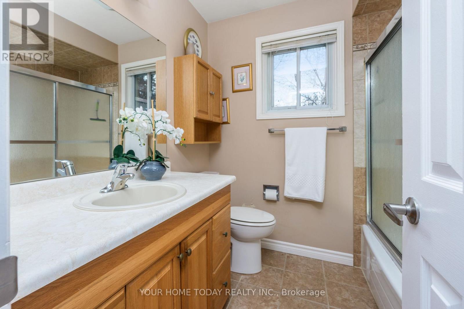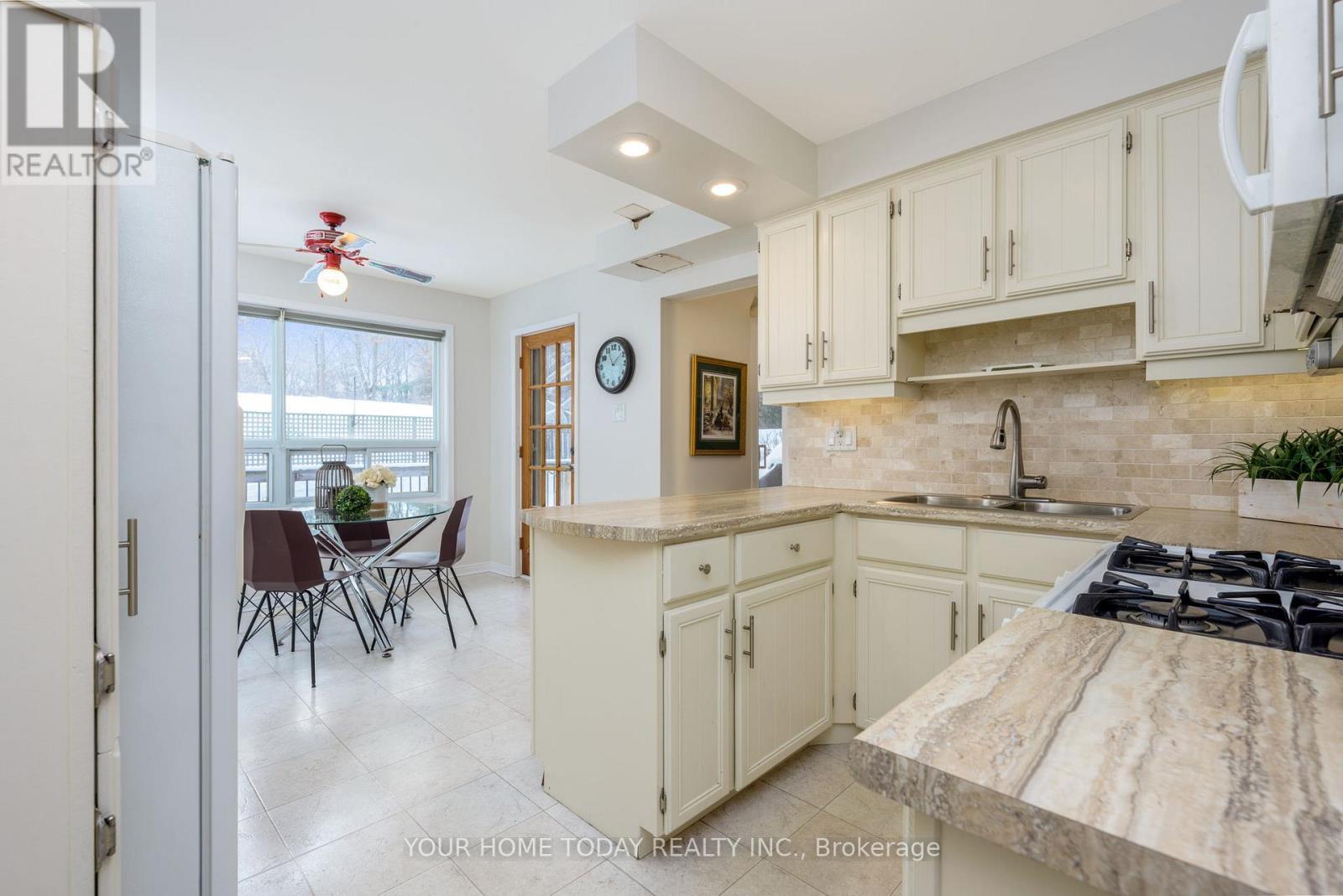 A concrete walkway and lovely landscaping welcome you to this well designed 3-bedroom, 2.5-bathroom home on a quiet, family-friendly street. Step inside the sun-filled foyer and you'll immediately feel at home in the spacious main-level rooms. The combined living and dining areas strike the perfect balance offering an inviting retreat for quiet evenings and a bright open space for laughter-filled gatherings with friends and family. The kitchen with its neutral cabinetry and generous windows overlooking the backyard is the heart of the home and is ideal for casual meals, morning coffee or keeping an eye on kids at play in the large, fenced yard. A French door walkout from the breakfast area to the deck is perfect for barbecuing. The cozy family room, complete with a fireplace and another walkout to the deck is made for movie nights or simply curling up with a good book. Everyday convenience is enhanced with main-level laundry and direct access to the garage. An eye-catching wood staircase leads to the upper level where you'll find 3 spacious bedrooms, the primary with a walk-in closet and 4-piece ensuite. The partially finished basement adds flexibility with a roomy rec room, an additional (almost finished) area and plenty of storage/utility space. Outside, a large, fully fenced pie-shaped lot with large shed, mature trees and no homes behind offers endless space for play, gardening, or peaceful moments in the fresh air. All of this in a truly wonderful location-close to schools, GO, downtown and more. (id:51158)