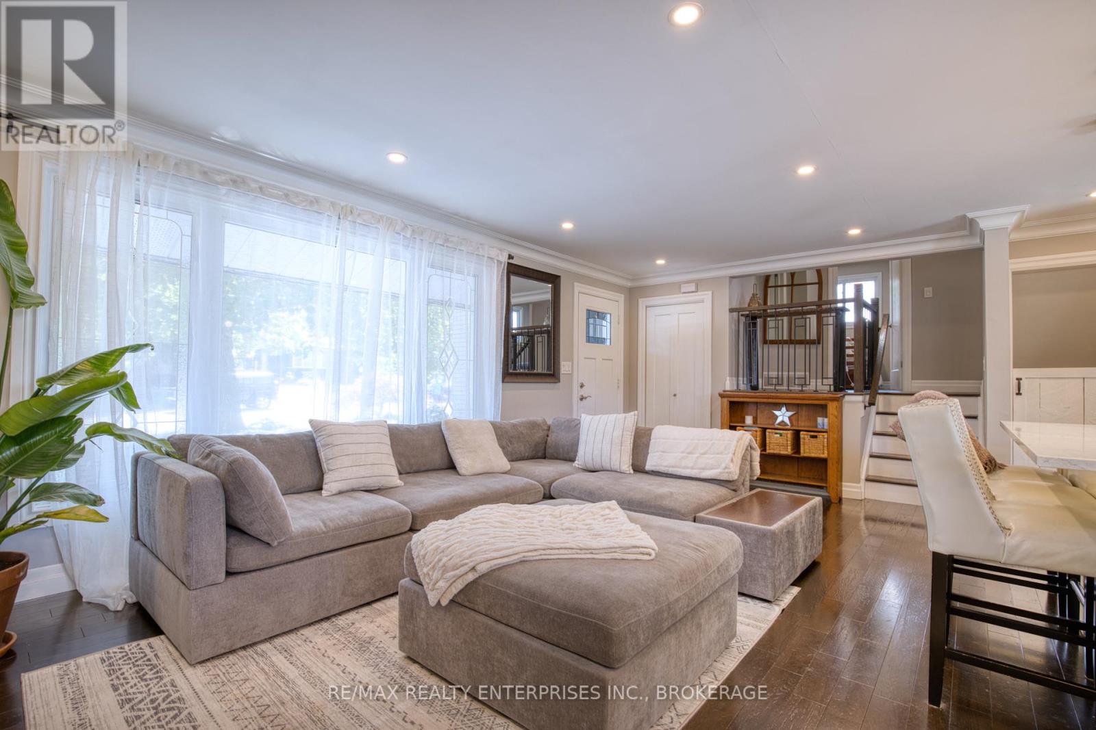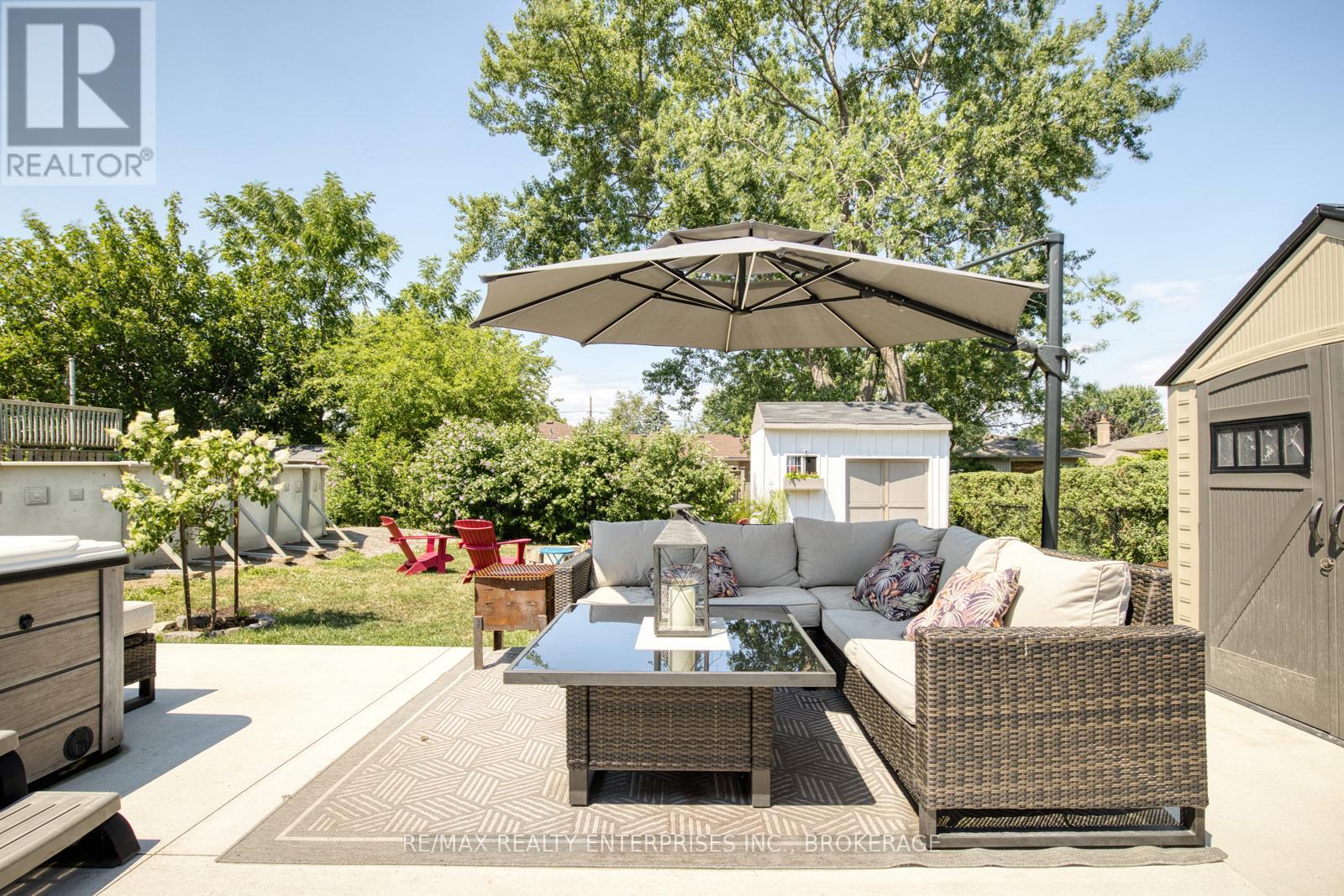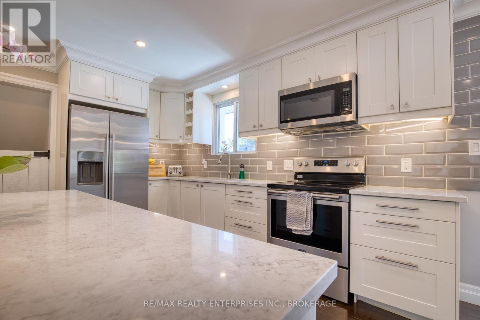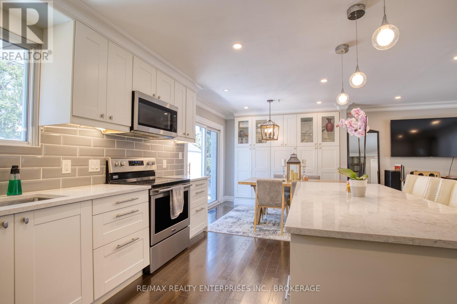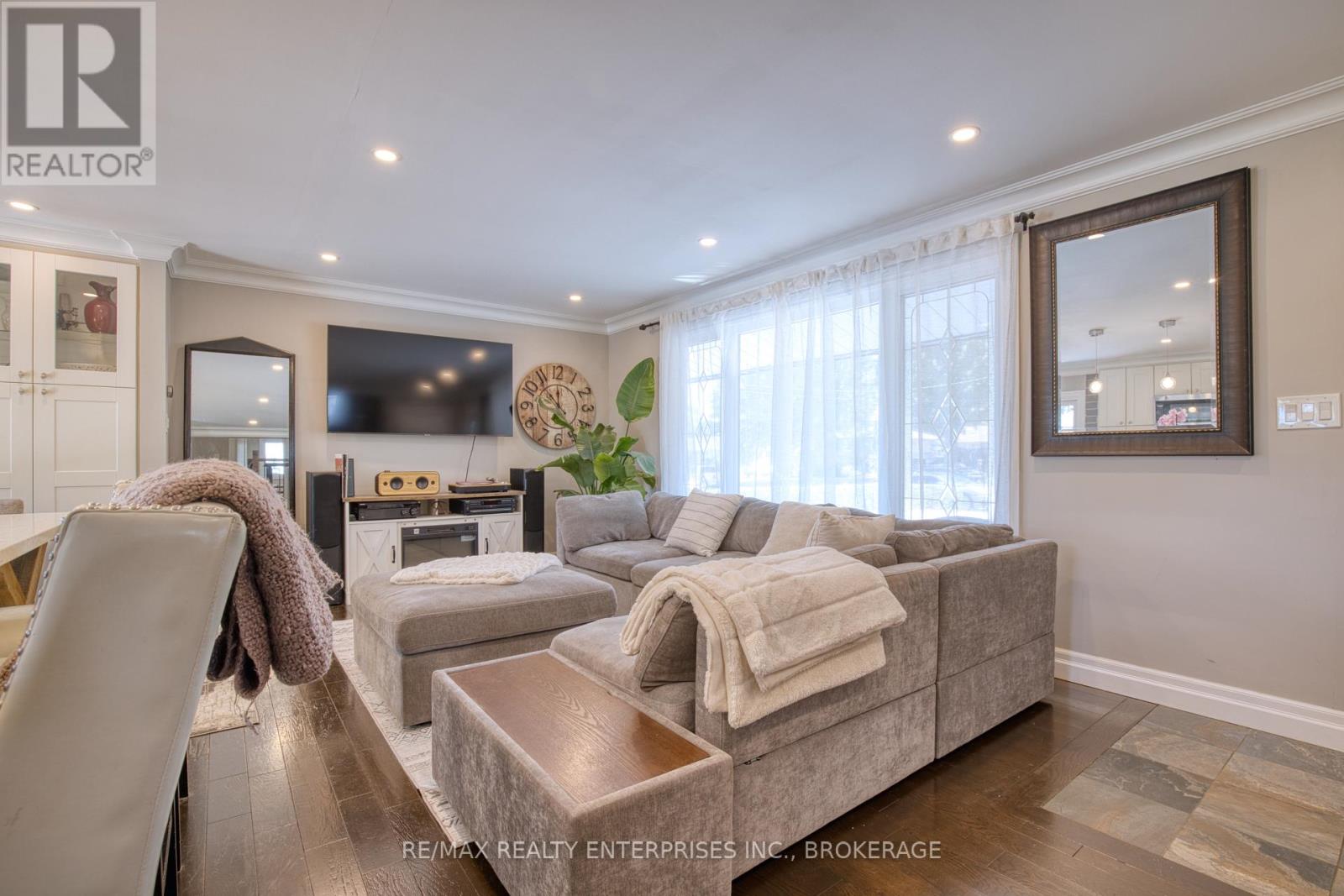 Walking distance to the Lake! This fully finished 3 bedroom, 2 bathroom, 3 level side split has been extensively updated and is move-in ready. Located on a 60 x 112 ft landscaped lot in one of the areas most desirable lakeside neighbourhoods, this home combines modern finishes with family-friendly living.The open concept main floor features a brand new eat-in kitchen with quartz countertops, a centre island with breakfast bar, and custom cabinetry. Garden doors from the dining area open to a private patio, ideal for entertaining. Rich 3/4" oak hardwood flooring flows through the main and upper levels, leading to three spacious bedrooms and a fully upgraded 4-piece bathroom.The lower level includes a cozy family room with wood-burning fireplace, an updated 3-piece bath, rec room, laundry area, and separate side entrance offering additional flexibility. A large crawl space provides ample storage. Outside, enjoy a fully fenced backyard retreat with a hot tub and above ground pool. Recent Updates: concrete driveway & patio (2024), siding, eaves & downspouts (2024), furnace & tankless water heater (2019), dishwasher (2024), hot tub & pool (2020), sand filter (2025), metal roof with transferable lifetime warranty (2005). A rare opportunity to own a turnkey property in an established lakeside community. (id:51158)