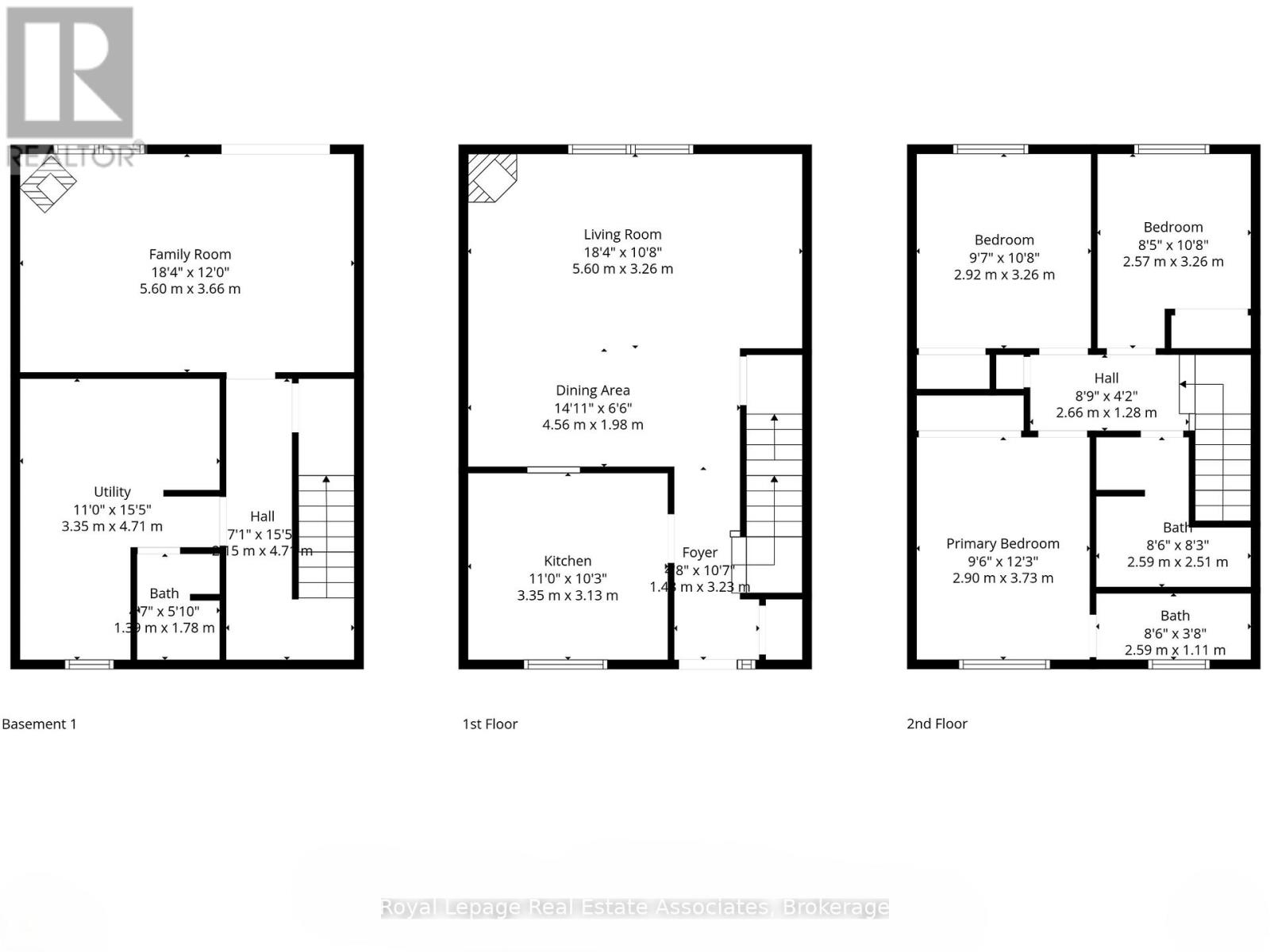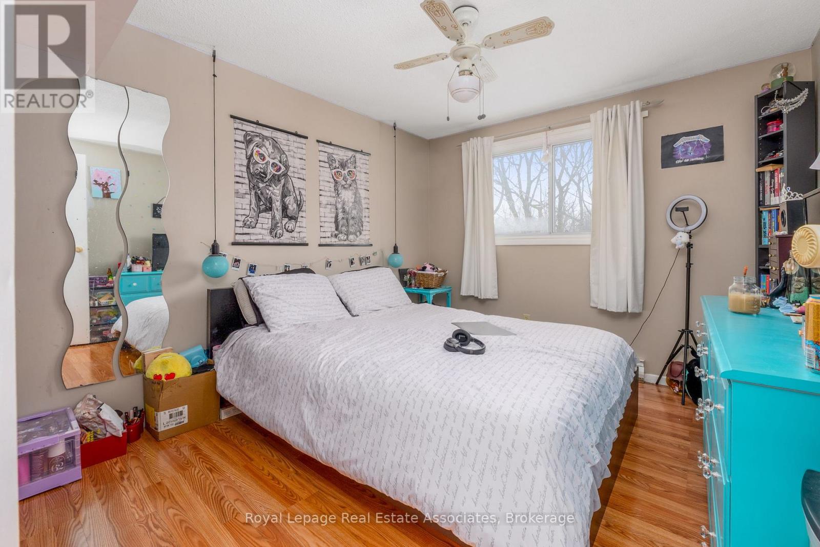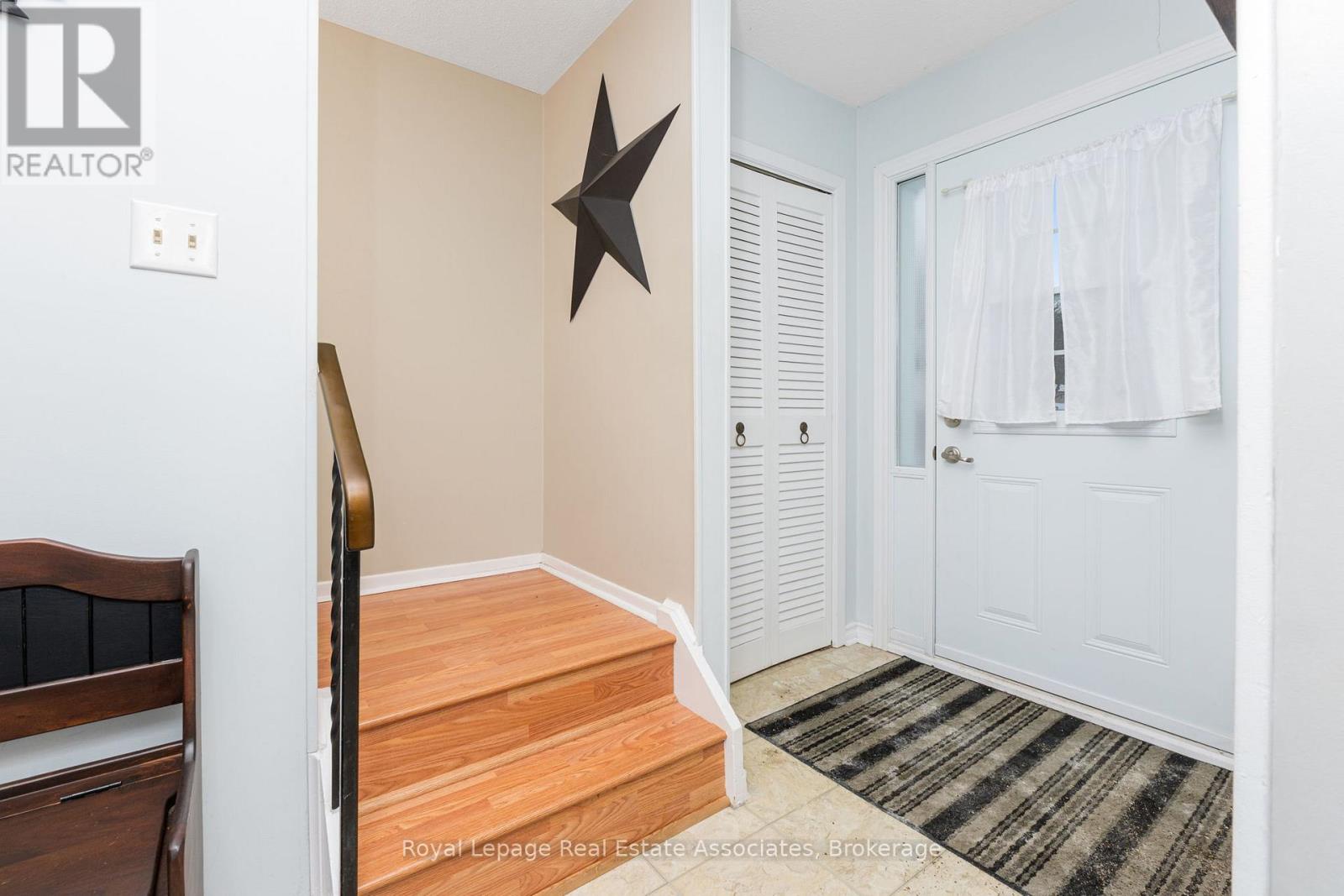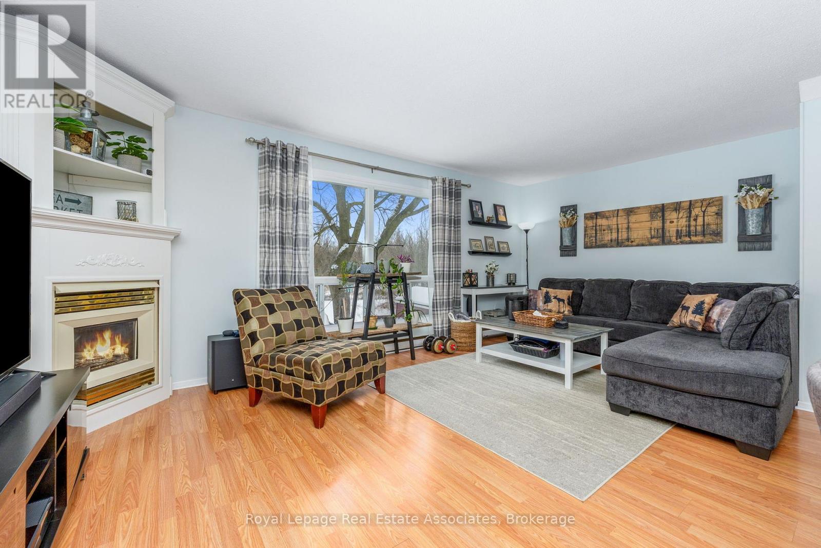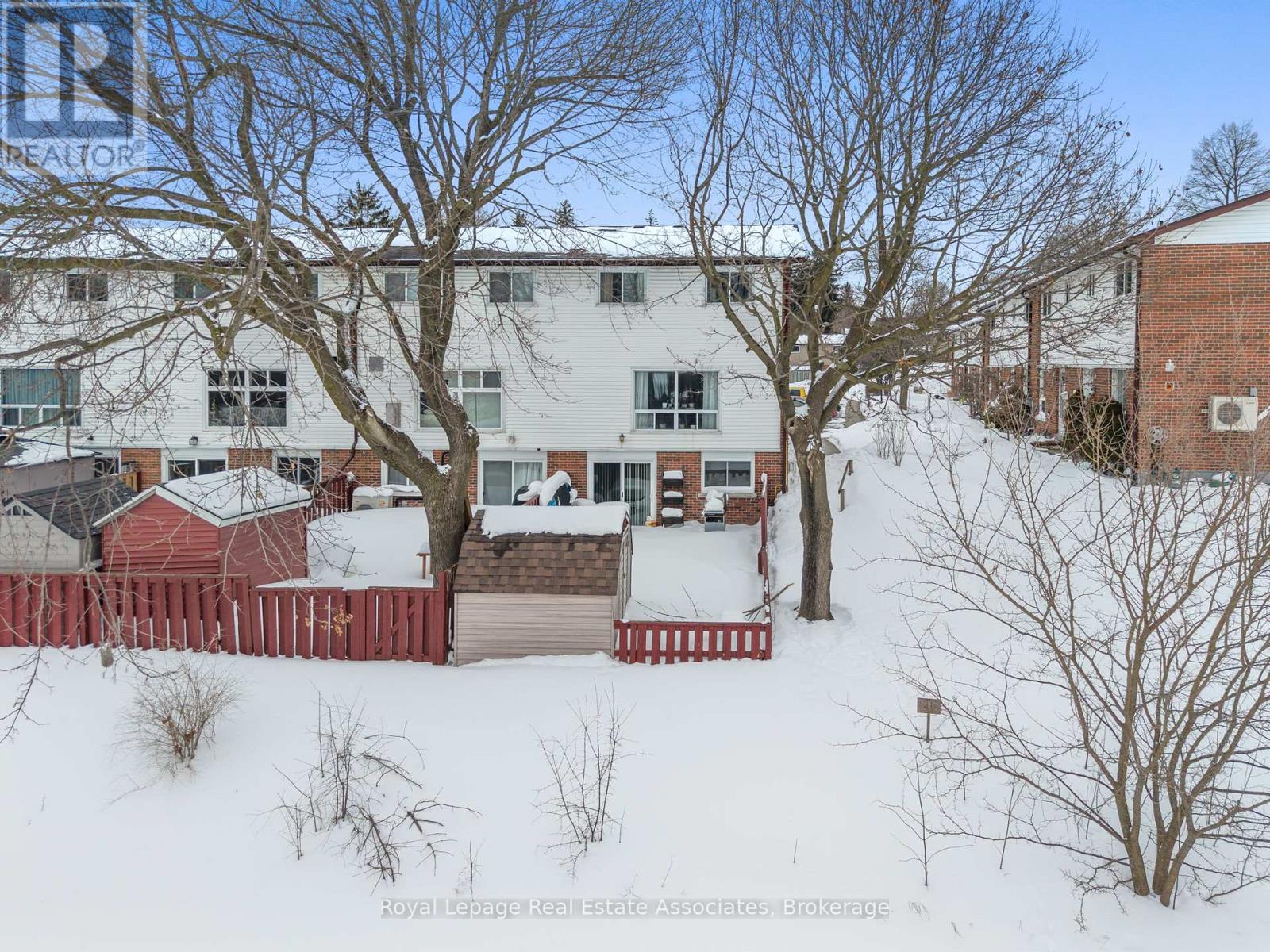 Welcome to this bright and spacious end-unit townhome with no rear neighbours, offering a functional and inviting layout. This carpet-free home features 3 bedrooms, 3 bathrooms, and 1 parking space, with an open-concept living and dining area highlighted by a large window overlooking the backyard and a cozy fireplace. The bright kitchen includes a large window, a double sink, ceramic backsplash, and overlooks the dining space, making it perfect for both daily meals and entertaining. Upstairs, the primary bedroom offers a double closet and a private 2-piece ensuite, while two additional good-sized bedrooms each include their own closets and overlook the backyard, along with a full 4-piece bathroom and a linen closet. The ground floor features a versatile family room with a gas fireplace and a walkout to the fenced backyard, a convenient 2-piece bathroom, and a laundry room with a sink and extra storage. With unobstructed rear views and a great layout, this move-in-ready home is easy to love, and low maintenance fees include snow removal, exterior maintenance, and landscaping. Ideally located just minutes to everyday amenities, schools, parks, the Acton GO Station, the library, and more. (id:51158)