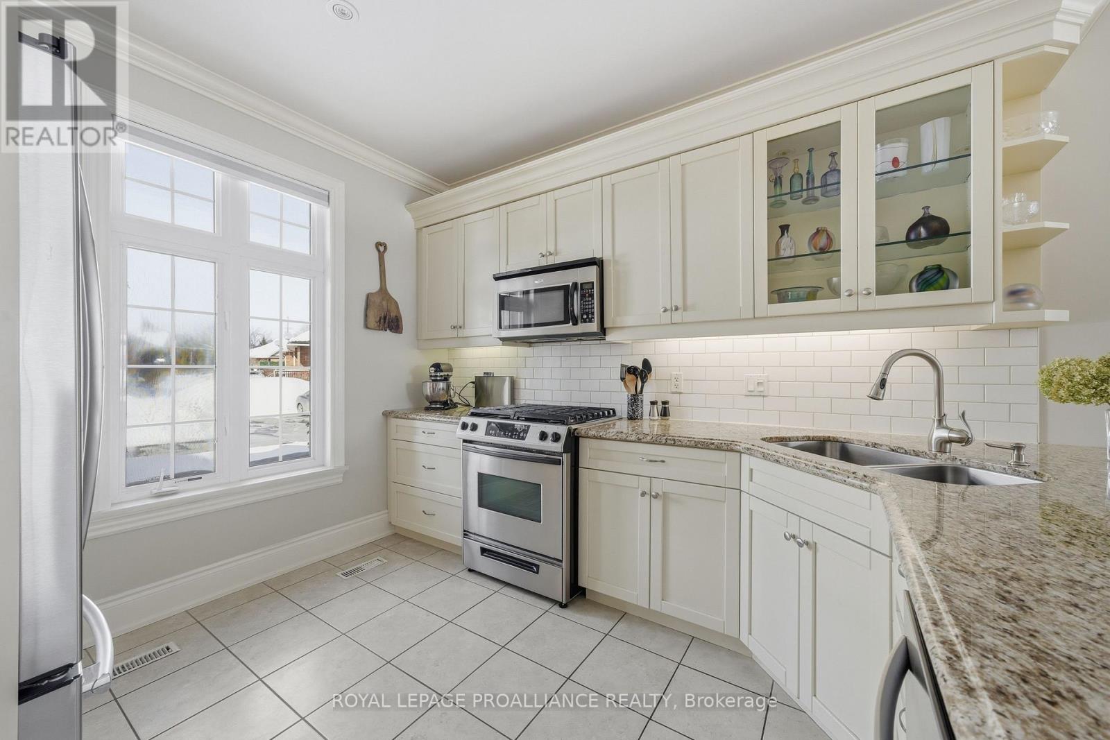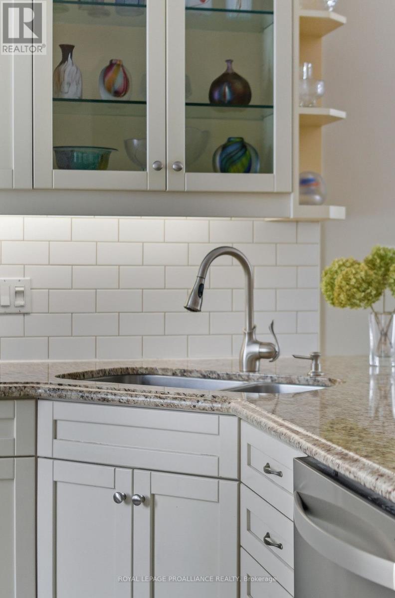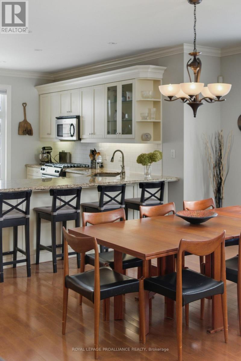 WELCOME TO KINGFISHER COVE! This freehold Executive Townhome development considers all aspects of an active lifestyle and has an incredible and unobstructed water view overlooking the Bay of Quinte. Built by one of the area's most respected builders as a "model townhome" with approximately 3000 square feet of living space, it enjoys many luxury finishes; 9 foot ceilings, transoms, rich hardwood and ceramic flooring, granite counter tops, a smart breakfast bar, cozy gas fireplace, and walkout to a southeast facing spacious deck and garden. The primary bedroom is so spacious and has a wonderful ensuite and walk-through closet, and an additional bedroom and full bath completes the main floor. On the lower level, with R20 insulation and sound proofing, has a spacious family room, 2 additional bedrooms and full bath, make for a quiet escape for guests or extended family. Main floor laundry and fully insulated and drywalled garage provides additional storage. With this end unit backing onto the Millennium Trail, you will enjoy the convenience and access to both walking and biking, and not to mention its close proximity to Prince Edward County and all its wonderful wineries, eateries and beaches. Just minutes to the 401, Trenton, and Belleville, this one is not to be missed. (id:51158)