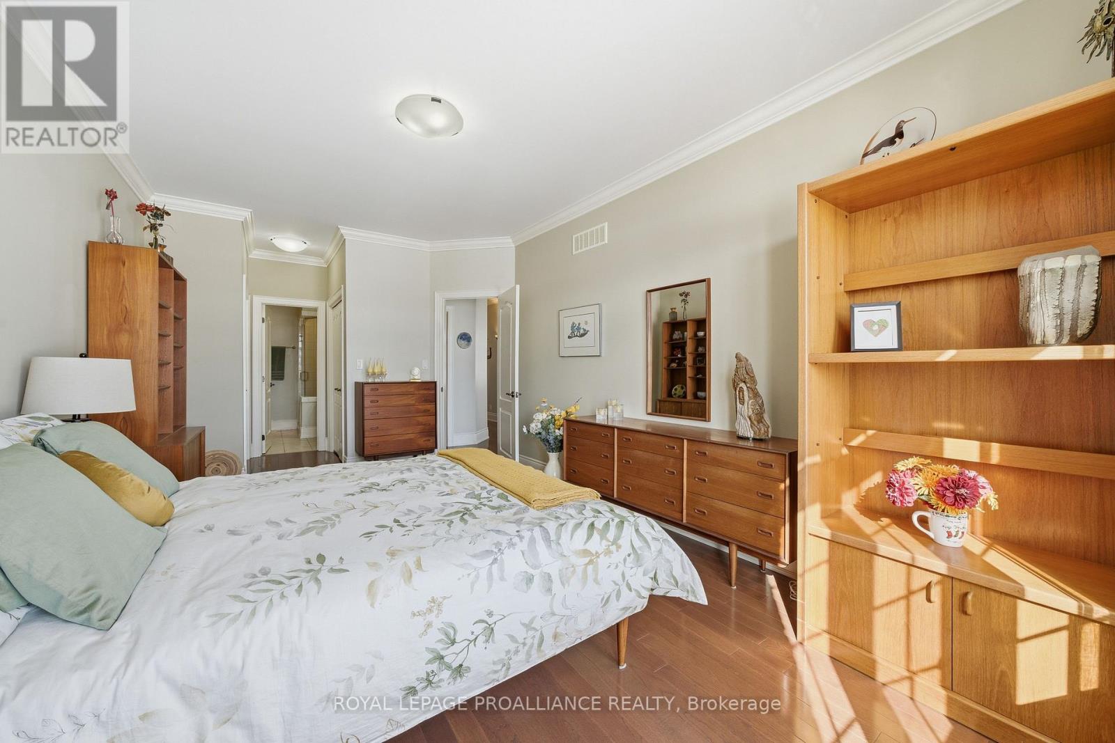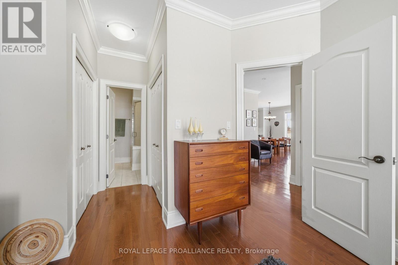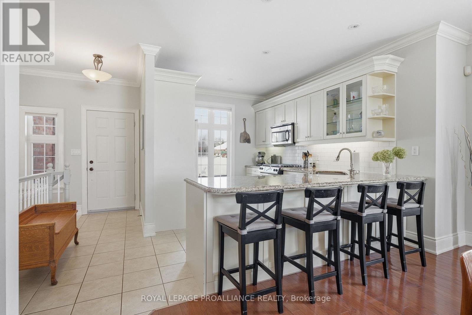 WELCOME TO KINGFISHER COVE! This freehold Executive Townhome development considers all aspects of an active lifestyle and has an incredible and unobstructed water view overlooking the Bay of Quinte. Built by one of the area's most respected builders as a "model townhome" with approximately 3000 square feet of living space, it enjoys many luxury finishes; 9 foot ceilings, transoms, rich hardwood and ceramic flooring, granite counter tops, a smart breakfast bar, cozy gas fireplace, and walkout to a southeast facing spacious deck and garden. The primary bedroom is so spacious and has a wonderful ensuite and walk-through closet, and an additional bedroom and full bath completes the main floor. On the lower level, with R20 insulation and sound proofing, has a spacious family room, 2 additional bedrooms and full bath, make for a quiet escape for guests or extended family. Main floor laundry and fully insulated and drywalled garage provides additional storage. With this end unit backing onto the Millennium Trail, you will enjoy the convenience and access to both walking and biking, and not to mention its close proximity to Prince Edward County and all its wonderful wineries, eateries and beaches. Just minutes to the 401, Trenton, and Belleville, this one is not to be missed. (id:51158)