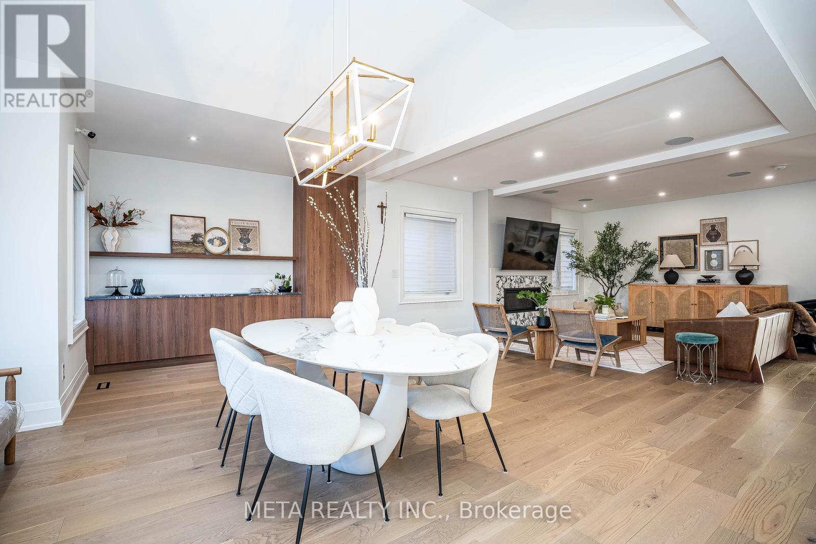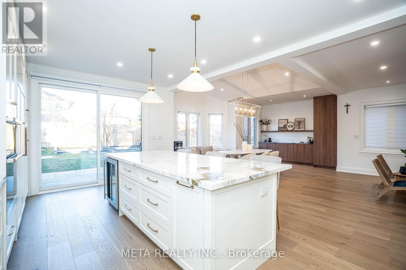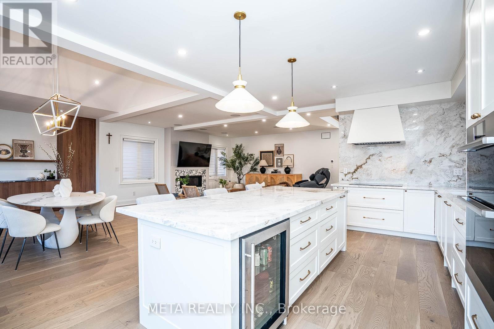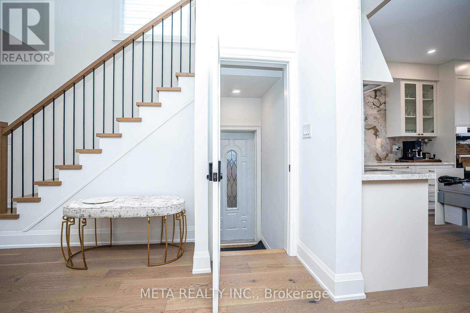 MLS# W12208031 – FOR SALE : 20 Shaver Avenue N Islington-city Centre West Toronto – 5 Beds, 4 Baths Detached House ** This stunning, fully renovated home combines modern luxury with functional design. The gourmet kitchen is equipped with top-of-the-line built-in appliances, including a Jenn-Air panel fridge & dishwasher, DACOR induction cooktop & wall oven , and a Marvel wine fridge. The oversized island serves as the perfect hub for entertaining, with plenty of space for family and friends to gather. A dry bar in the dining area adds an extra touch of convenience and storage. The main floor boasts 9-6 ceilings, offering an airy and open feel. The living spaces are enhanced with built-in speakers and wired Wi-Fi extenders, providing the perfect setting for entertainment and connectivity. A large patio door invites natural light, while the 8-foot front door creates an impressive first impression. Throughout the home, beautiful white oak engineered floors add warmth and sophistication, creating a seamless flow from room to room. The master bedroom is spacious with soaring cathedral ceilings, large windows, and a calm, airy atmosphere. A king-size bed sits in the center, surrounded by soft, neutral tones. The built-in closet offers ample storage, blending seamlessly into the design. There’s a spa-like ensuite with a freestanding soaking tub, a walk-in shower, heated floors and elegant, calming finishes, creating a perfect, serene retreat. The garage includes a hoist for additional car storage, perfect for auto enthusiasts or those in need of extra space. The basement unit offers a separate entrance and full kitchen, making it ideal for in-laws, guests, or as a potential rental unit. The exterior of the home has been updated with new concrete and modern wood siding, offering a sleek and contemporary look that is sure to impress. Located in a great neighborhood and close to all amenities, this home is the perfect blend of luxury and convenience. Don’t miss the opportu ** 20 Shaver Avenue N Islington-city Centre West Toronto **