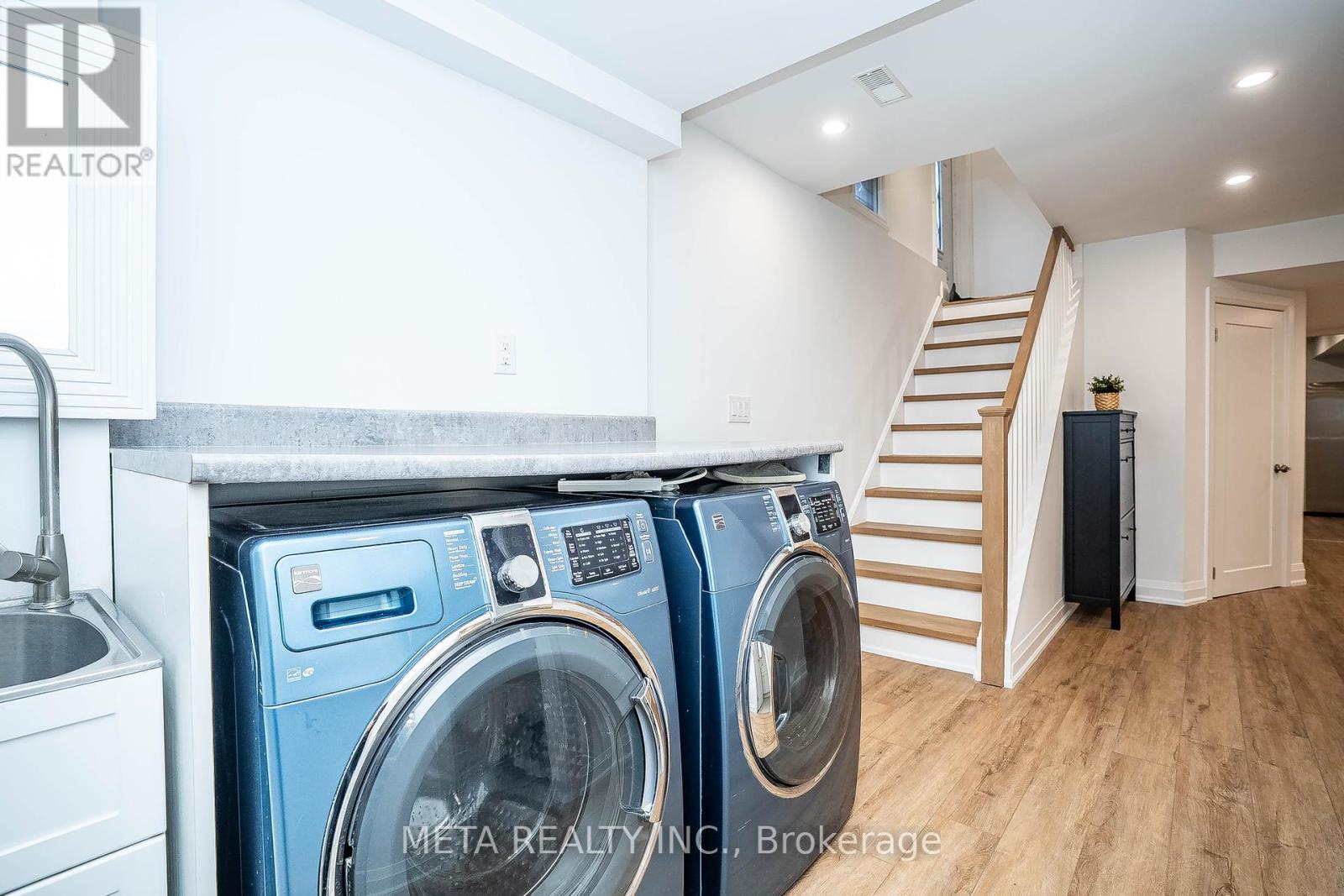 This stunning, fully renovated home combines modern luxury with functional design. The gourmet kitchen is equipped with top-of-the-line built-in appliances, including a Jenn-Air panel fridge & dishwasher, DACOR induction cooktop & wall oven , and a Marvel wine fridge. The oversized island serves as the perfect hub for entertaining, with plenty of space for family and friends to gather. A dry bar in the dining area adds an extra touch of convenience and storage. The main floor boasts 9-6 ceilings, offering an airy and open feel. The living spaces are enhanced with built-in speakers and wired Wi-Fi extenders, providing the perfect setting for entertainment and connectivity. A large patio door invites natural light, while the 8-foot front door creates an impressive first impression. Throughout the home, beautiful white oak engineered floors add warmth and sophistication, creating a seamless flow from room to room. The master bedroom is spacious with soaring cathedral ceilings, large windows, and a calm, airy atmosphere. A king-size bed sits in the center, surrounded by soft, neutral tones. The built-in closet offers ample storage, blending seamlessly into the design. There's a spa-like ensuite with a freestanding soaking tub, a walk-in shower, heated floors and elegant, calming finishes, creating a perfect, serene retreat. The garage includes a hoist for additional car storage, perfect for auto enthusiasts or those in need of extra space. The basement unit offers a separate entrance and full kitchen, making it ideal for in-laws, guests, or as a potential rental unit. The exterior of the home has been updated with new concrete and modern wood siding, offering a sleek and contemporary look that is sure to impress. Located in a great neighborhood and close to all amenities, this home is the perfect blend of luxury and convenience. Don't miss the opportunity to own this exceptional property schedule a showing today!Brokerage (id:51158)